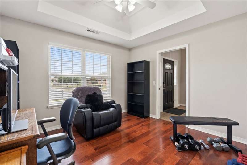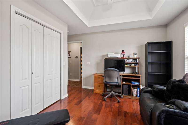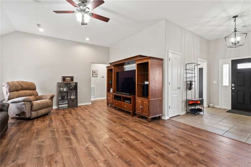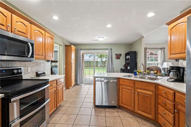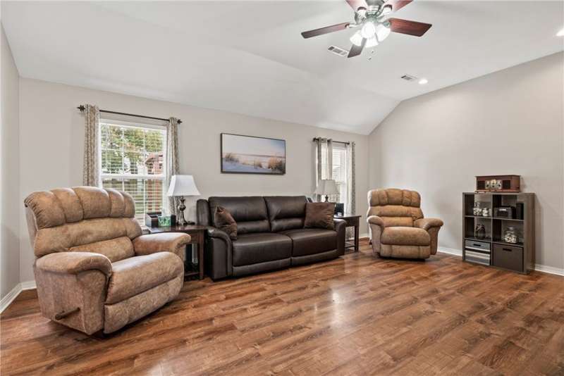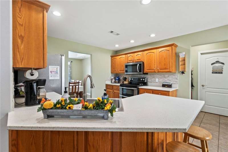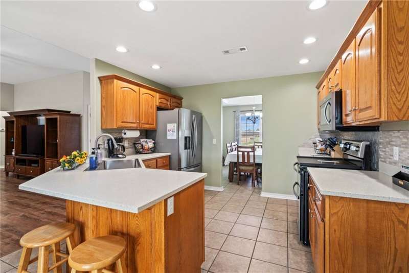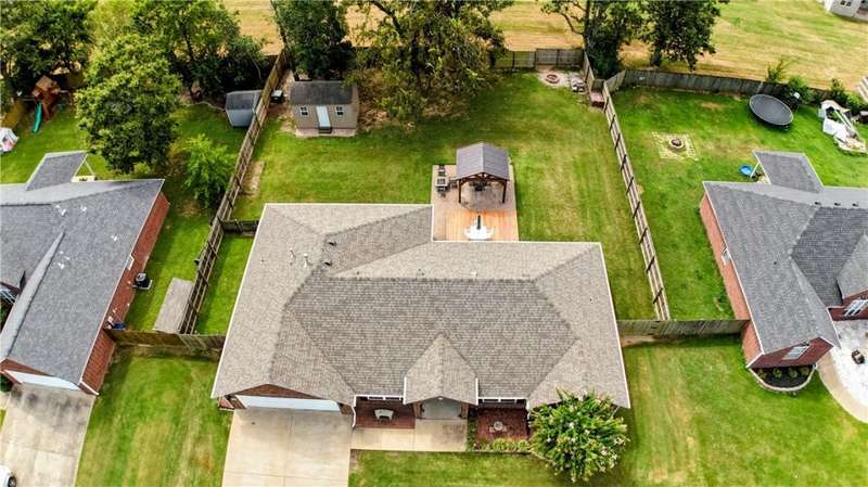 Welcome to this beautifully updated 4BD, 2BA, 1918SF home. The oversized 2-car garage provides plenty of room for vehicles, storage, or hobbies. Semi-open floor plan. Updated kitchen features SS appliances, double oven, breakfast nook, Corian countertops, SS farmhouse sink. Formal DR & breakfast nook. The spacious primary suite features a walk-in shower, a relaxing jacuzzi tub & ample closet space. A flex room offers versatility as a home office, guest room, or 4th bedroom with a closet. Flooring includes LVP in LR, wood laminate in the flex room, carpet in the bedrooms & tile in entryway/dining/wet areas. Step outside to enjoy your own backyard oasis! A huge, privacy-fenced backyard with a NEW 16x16 deck, covered pergola, paver patio, & storage building provides endless space for entertaining, gardening, or relaxing. Curtains/Portable plastic stg bldg on side-do not convey. Upgrade/amenities list attached to MLS! HVAC-8/2024 w/ transferrable warranty; Roof-12/2019