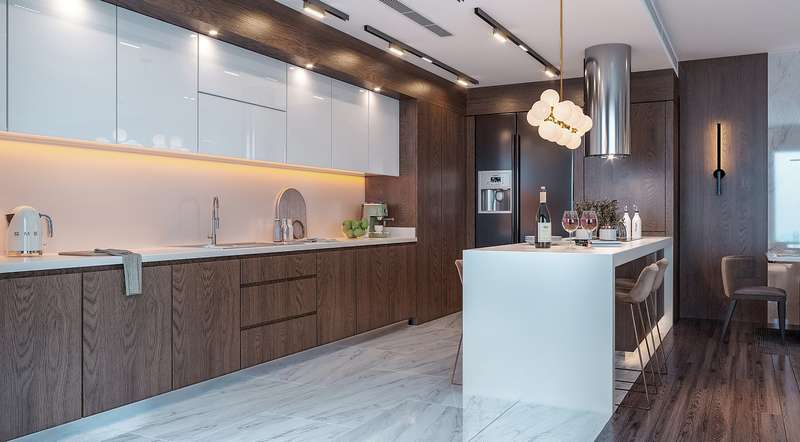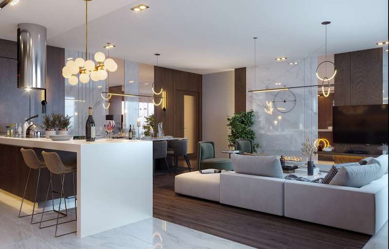 The apartments consist of bedrooms, living room, open kitchen, entrance hall, separate bathroom and dressing room in the bedrooms, laundry room and common bathroom areas. The apartments are equipped with quality kitchen cabinets, garderobe, quality bathroom and kitchen fixtures, laminate and ceramic floor coverings, steel door, aluminum heat glazed window systems, shower cabin.