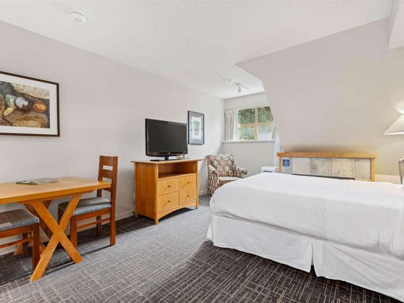 Located just steps from the gondolas, restaurants, and shopping, this deluxe studio suite at Whistler Peak Lodge offers the perfect mountain getaway in the heart of Whistler Village. Comfortably sleeping four, it features a queen bed and a double Murphy bed, plus a cozy gas fireplace for winter and air conditioning for summer. The full kitchen is equipped with everything you need, and the dining area makes mealtime easy. Relax in the jetted bathtub after a day on the mountain, and enjoy the convenience of an in-suite washer/dryer. Amenities include a fitness centre, ski/bike storage, and a 24-hour front desk. Phase 2 zoning allows owners to enjoy up to 56 days per year while earning rental revenue for the remainder of the time.