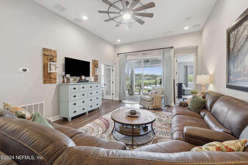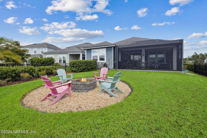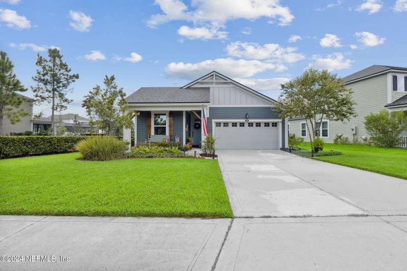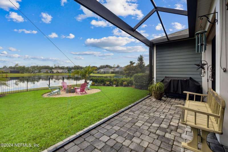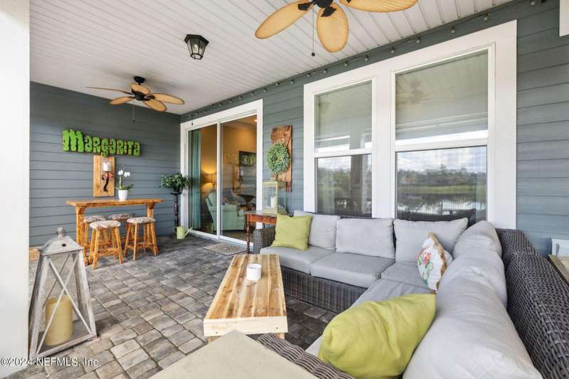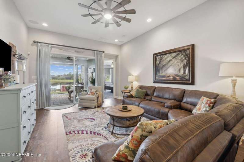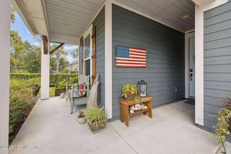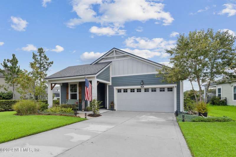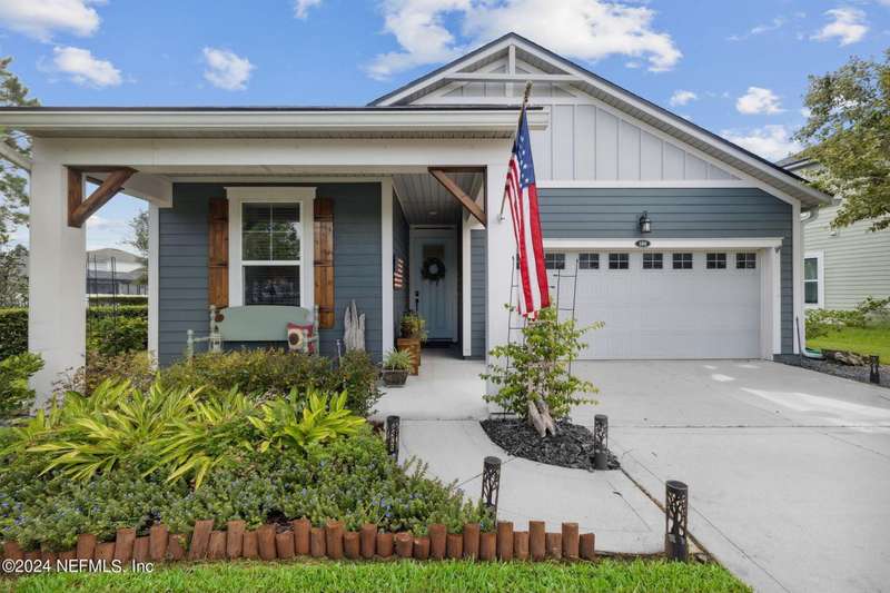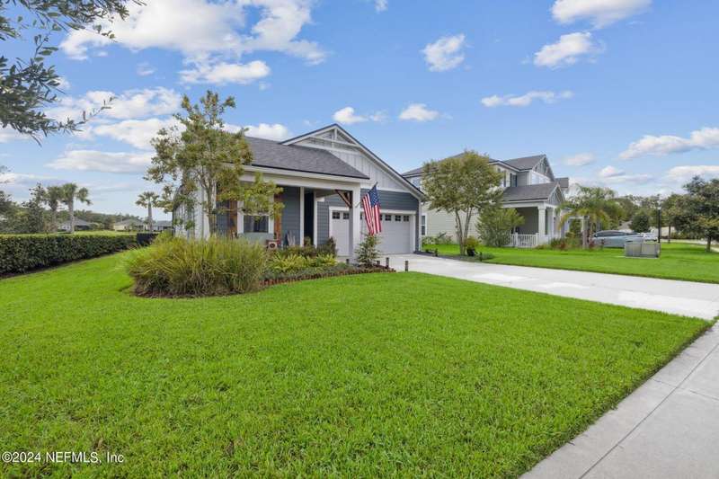 BUYERS CONTINGENCY FELL THROUGH! Motivated Seller. You will love this charming 3 Bed, 2 Bath with an inviting front porch perfect for chatting with neighbors. The expansive kitchen features stainless steel appliances including a whisper quiet dishwasher, gas range, exquisite quartz countertops, 42'' cabinets, undermount lighting, crown moulding, beautiful tile backsplash, Bubble Glass Pendant lights. Enjoy pantry and broom closets with wood shelving, an art niche, and garage access. The dining room has an amazing custom Classic American Flat Panel style wall. The living room features 12-foot ceilings and opens to an oversized screened and paved lanai with gas bib and a 220-amp outlet to accommodate a future spa. An additional flex room with French doors for use as an office, playroom, gym or den. Enjoy breathtaking sunsets and water views by the firepit with family and friends. The sunbathed Owner's suite has a large bath with quartz counters, dual vanity and large walk-in closet. Second and third bedrooms share a large hall/guest bath. This amazing home features a whole house Generac generator, water softener system, gutters and fenced back yard. Walk to the River Club & enjoy events, the River Cafe and St. Johns River sunsets by the pool.