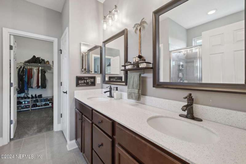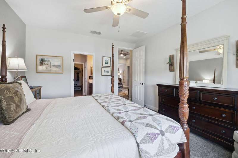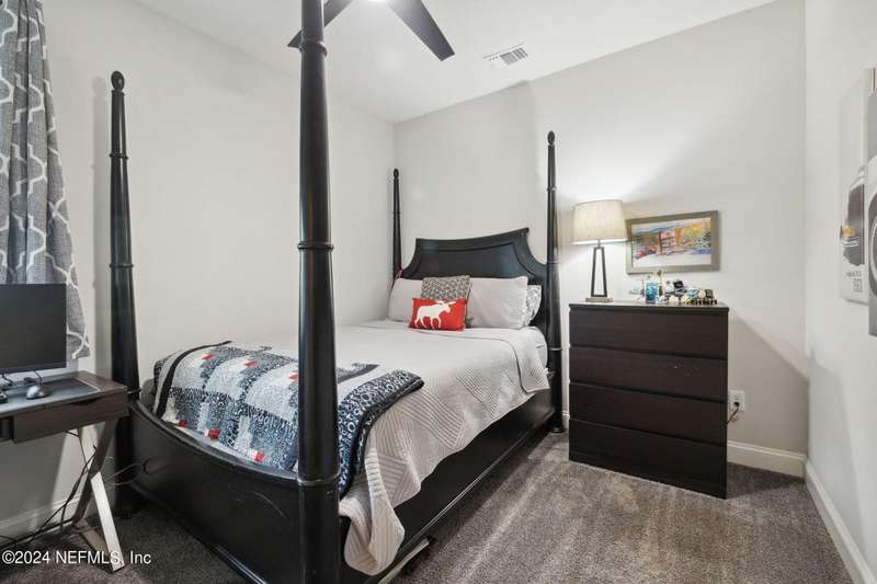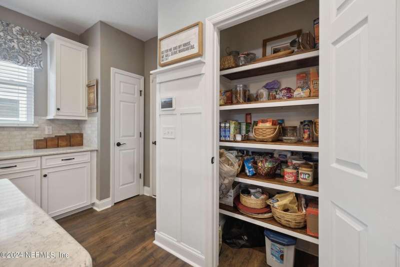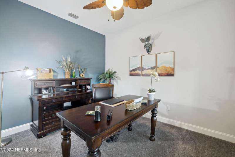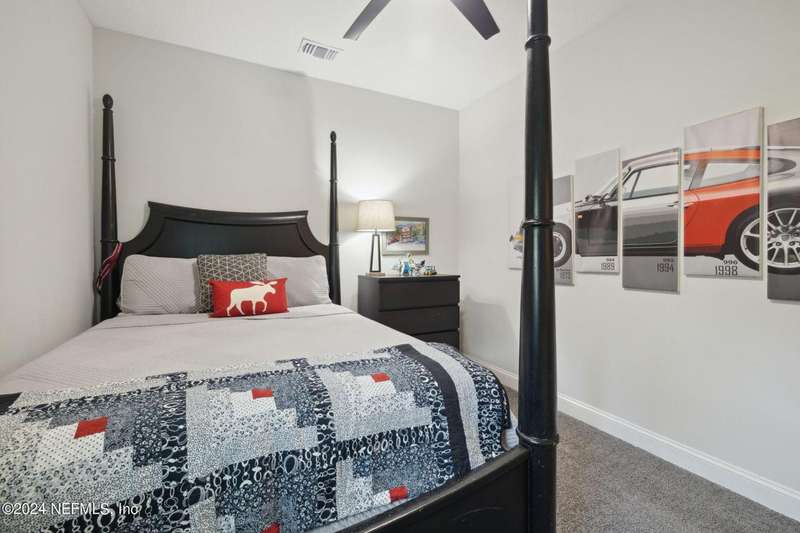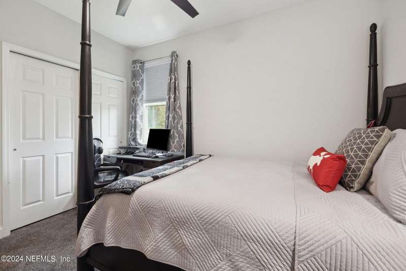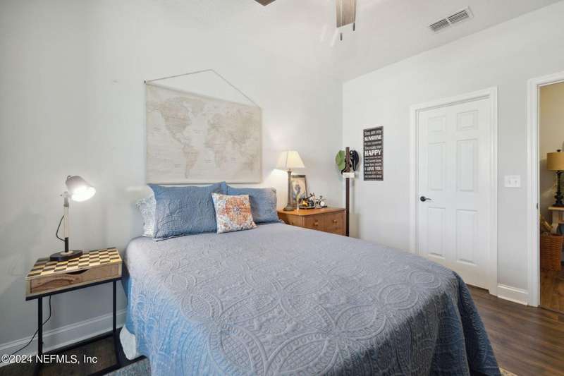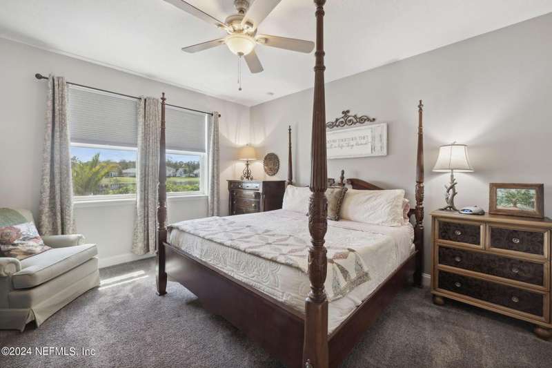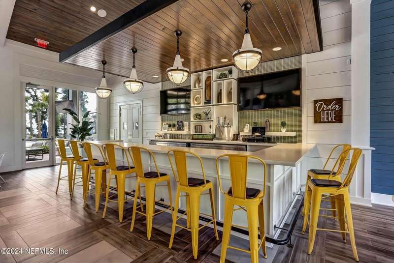 BUYERS CONTINGENCY FELL THROUGH! Motivated Seller. You will love this charming 3 Bed, 2 Bath with an inviting front porch perfect for chatting with neighbors. The expansive kitchen features stainless steel appliances including a whisper quiet dishwasher, gas range, exquisite quartz countertops, 42'' cabinets, undermount lighting, crown moulding, beautiful tile backsplash, Bubble Glass Pendant lights. Enjoy pantry and broom closets with wood shelving, an art niche, and garage access. The dining room has an amazing custom Classic American Flat Panel style wall. The living room features 12-foot ceilings and opens to an oversized screened and paved lanai with gas bib and a 220-amp outlet to accommodate a future spa. An additional flex room with French doors for use as an office, playroom, gym or den. Enjoy breathtaking sunsets and water views by the firepit with family and friends. The sunbathed Owner's suite has a large bath with quartz counters, dual vanity and large walk-in closet. Second and third bedrooms share a large hall/guest bath. This amazing home features a whole house Generac generator, water softener system, gutters and fenced back yard. Walk to the River Club & enjoy events, the River Cafe and St. Johns River sunsets by the pool.