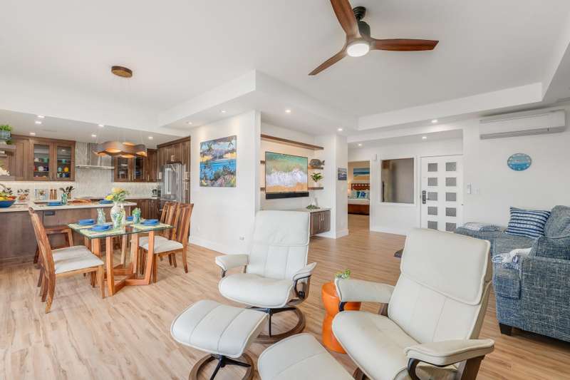 Ultra-Modern Remodel | Ocean & Moloka‘i Views | Turnkey Luxury at Kapalua Resort. Experience elevated island living in this stunning 1-bedroom, 2-bathroom ground floor residence at the prestigious Kapalua Ridge Villas, located within the world-renowned Kapalua Resort on Maui’s upper West Side. Beautifully remodeled throughout with ultra-modern design inspiration, this frontline, west-facing unit enjoys commanding panoramic views of the Pacific Ocean and neighboring Moloka‘i island. Positioned to capture unforgettable sunsets and cool ocean breezes, this is island living at its most refined. Boasting 1,229 square feet, this generously sized condo features an open-concept floor plan that lives and feels like a private retreat. The interiors are curated with island-inspired furnishings, designer fixtures, and thoughtful touches of modern luxury, including custom lighting, living room wall murphy bed and contemporary finishes. Enjoy the privacy and serenity of Kapalua Ridge, all while being minutes from world-class beaches, championship golf courses, fine dining, hiking trails, and the celebrated Kapalua Coastal Trail. Resort amenities include pools, tennis and access to Kapalua's exceptional natural beauty. Whether you're seeking a personal escape or a luxury vacation rental, Kapalua Ridge Villa offers an exceptional opportunity to own a front-row seat to Maui’s best views and lifestyle.