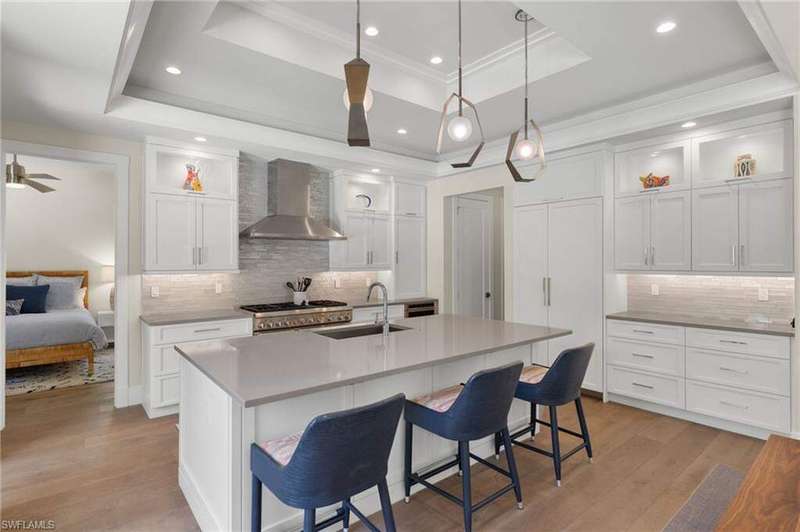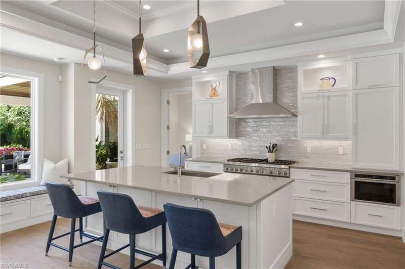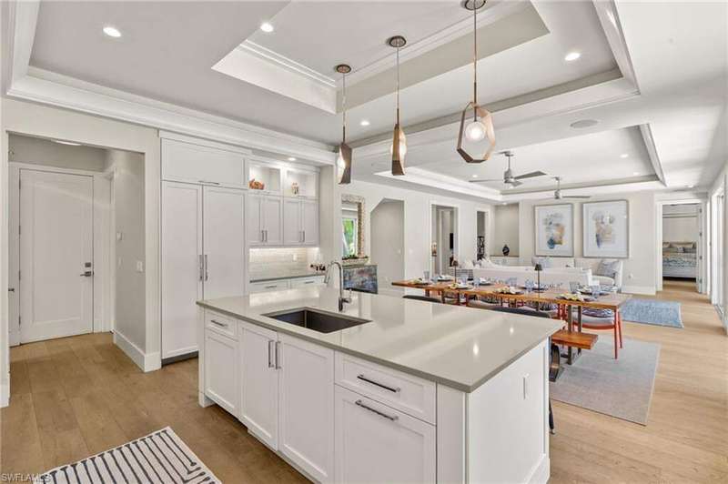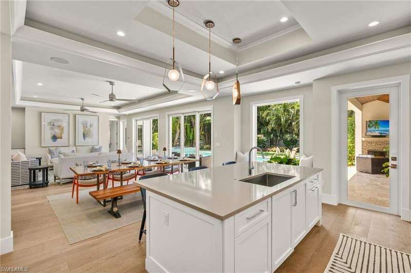Welcome to 655 7th Avenue North in desirable Olde Naples location just a short walk to the beach and downtown. Enter this 4 Bedroom plus den/4.5 Bathroom newer construction house into a welcoming foyer opening to an expansive open-concept living floor. Spacious living room with wall of glass opening out to private rear yard seamlessly blending indoor/outdoor living. Lovely dining room complete with wet bar is ideal for entertaining. True chef's eat-in kitchen replete with Thermador appliances including 6-burner gas range, white shaker cabinetry and oversized quartz island. Master suite oasis overlooks private back yard, dual walk-in closets with custom built-ins and a spa-like bath with oversized walk-in shower, freestanding soaking tub, separate vanities and separate water closet. Guest suite with en-suite bathroom plus access to outdoor living space. Convenient first floor office ideal for today's work from home lifestyle plus full-sized laundry room and powder room. Ascend to the second floor to a light and airy loft-like sitting room with beverage center ideal for visiting guests. Two additional guest suites each with en-suite bath and walk-in closets complete this floor. Outdoor living space is truly a private sanctuary with a gorgeous pool and spa, sundeck, covered screened-in living/dining room with custom built-in outdoor kitchen ideal for year-round entertaining. Grassy area perfect for dog lovers and play. 3-car attached garage with epoxy floor. Easy walk to the gorgeous beach at the end of block and an easy walk, bike or golf cart ride to downtown Naples' 5th Avenue South and 3rd Street South renowned worldwide for its fine dining and shopping. Easy access to Naples and Fort Myers airport. Come enjoy the Naples lifestyle at this lovely in-town home.