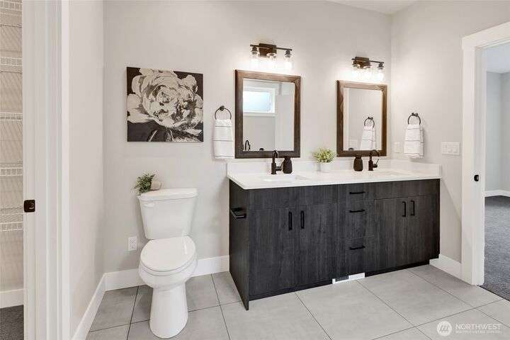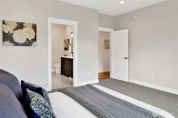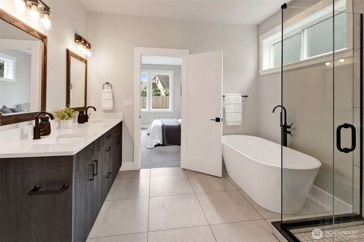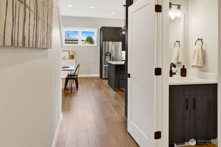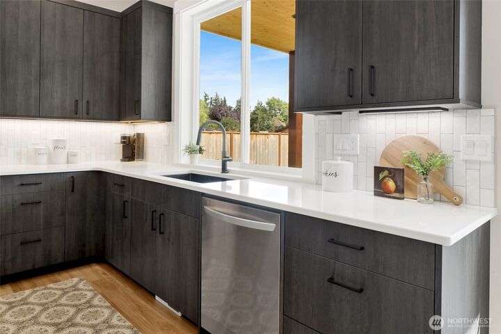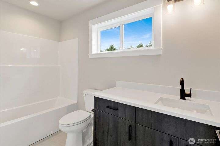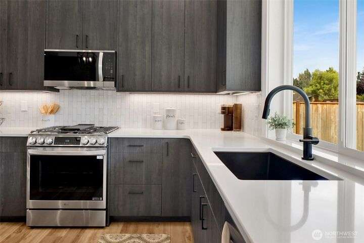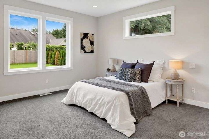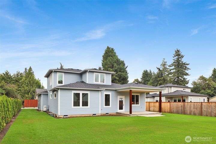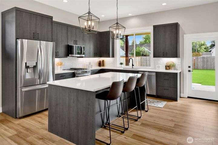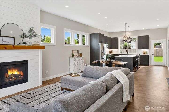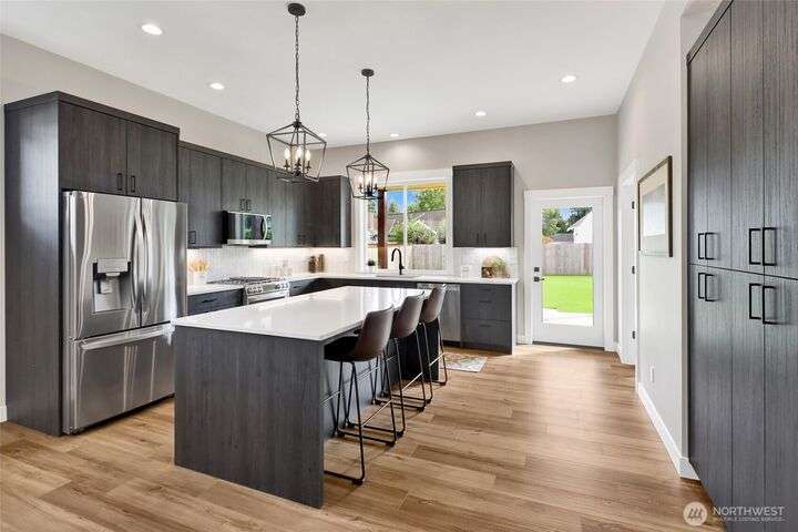 Sleek, stylish, & sophisticated... Finding a new home in the coveted west side of Lynden is rare and this home has it all! Quality crafted by Corban Construction, this 3 bed + office stunner features energy-efficient design, 10' ceilings, and a Kozy Heat gas fireplace with shiplap surround. The stylish kitchen delivers Pental Quartz counters, soft-close cabinets, upgraded appliances, & extra storage. Primary bath suite showcases large format tile, soaker tub, + a frameless walk-in shower. Enjoy peace & quiet with sound walls & an insulated garage. Stay comfortable year-round with forced air gas heat, A/C, & a heat pump water heater. Large south facing covered patio, in-ground irrigation, situated on a 10,019 sq ft lot complete the package!