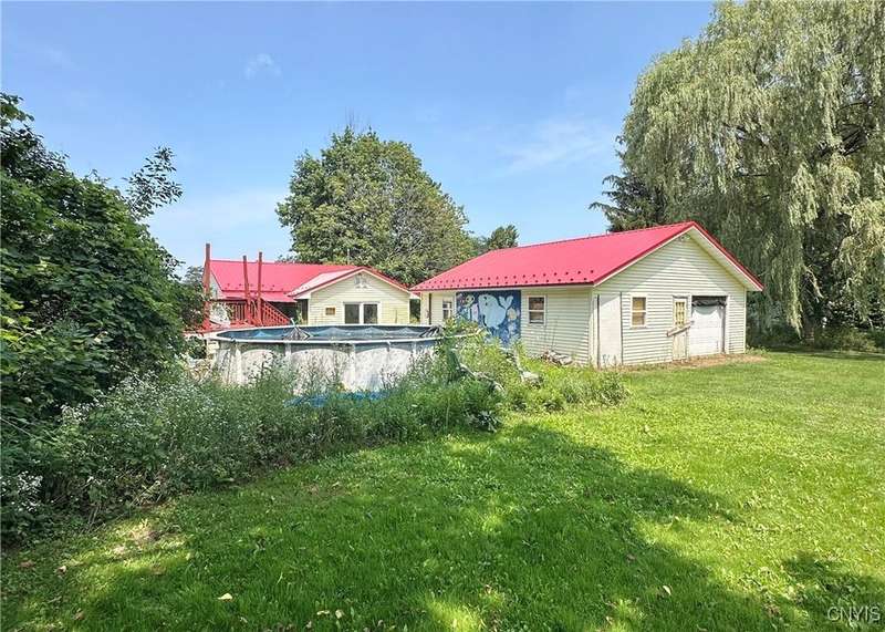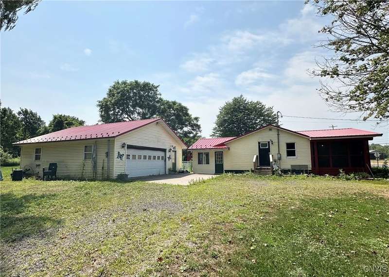 Great opportunity for a buyer looking for an affordable housing option!! This ranch home has some nice updates and includes an oversized 2 car garage and close to 1 1/2 acres. There are 2 bedrooms, living room, nice size kitchen, and updated full bathroom with walk in shower and jacuzzi tub. Newer laminate flooring throughout the living area. Relax in the spacious screened-in front porch. An additional unfinished back room with slider offers loads of options. This home has a very nice metal roof that will last you decades. The oversized 2 car garage offers fantastic storage. About an acre of the property is cleared, so it offers a great space for entertaining, have a garden, etc. You can also enjoy the above ground pool on those hot days. This home offers a great option that is cheaper than rent! Call your favorite agent today to schedule an appointment.
