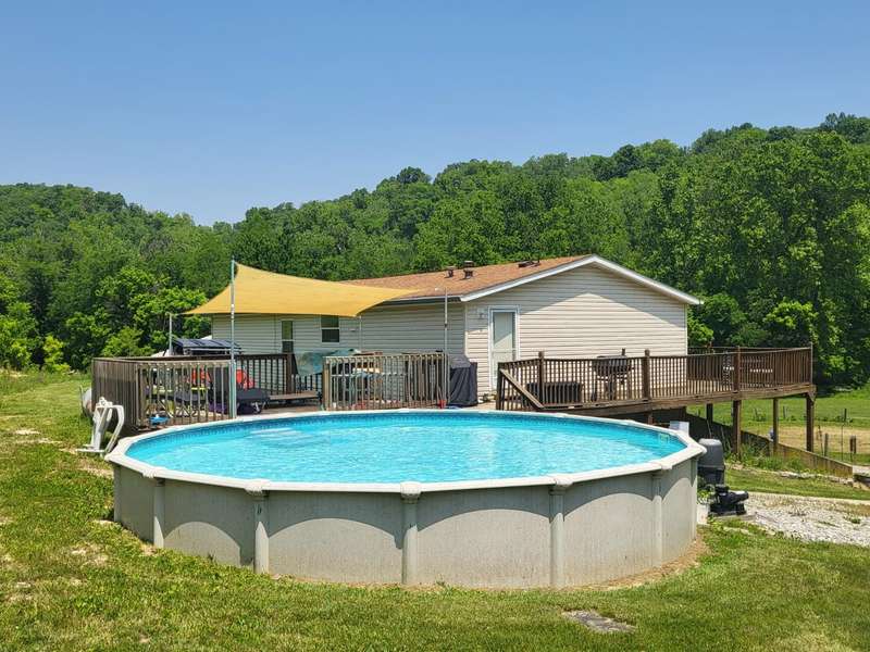 If you're craving privacy & space, this might be it. Tucked away on over 128 acres of gorgeous countryside, 4bd/3Ba retreat.Surrounded by 2 creeks, feels like your own private nature preserve. 1,352 sqft of 1-Lvl living, the home has natural light, open layout, & a cozy, inviting feel. New laminate flrs in the bdrms, updated countertops, & refreshed lighting. Outside the real magic begins! Horse lovers will love the barn featuring six well-appointed stalls, plenty of room for boarding & training. The expansive acreage offers open pastures & wooded trails, ideal for long rides & exploring on horseback. This land & gives you room to breathe & ride. There's also an above-ground pool & miles of side-by-side UTV trails perfect for both beginners & seasoned riders-offering fun riding levels. it's a lifestyle property for those who want to slow down, stretch out & connect with the land. Bring your horses, your sense of adventure, & make this countryside escape your own.