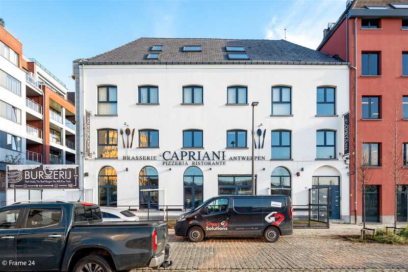ANTWERPEN - Eilandje - Bataviastraat: Beautiful office building with commercial ground floor in exclusive location with easy parking at walking distance from the MAS. ; DESCRIPTION: ; Ground Floor: Commercial space with basement, leased to a restaurant at €3,177/month. Leased to well-known and solvent brewer until 2041 ; 1° Floor: Large office space with separate, glazed office area. Sanitary space with 2 toilets. Kitchenette and storage room. ; 2° Floor: Spacious corridor with small desk. Four rooms. Shower room with washbasin. ; 3° Floor: Large, bright, high-ceilinged office space (approx. 160m²) under the roof truss (can possibly be subdivided into several offices) Sanitary space with 2 toilets. Kitchenette Storage room in the mezzanine. ; DETAILS: ; - Prime location on het Eilandje with lively catering establishments, within walking distance of the MAS - Parking in front of the door - Leased to a well-known and solvent brewer until 2041 - Listed in the real estate estate inventory: https://inventaris.onroerenderfgoed.be/erfgoedobjecten/6479 ; ;