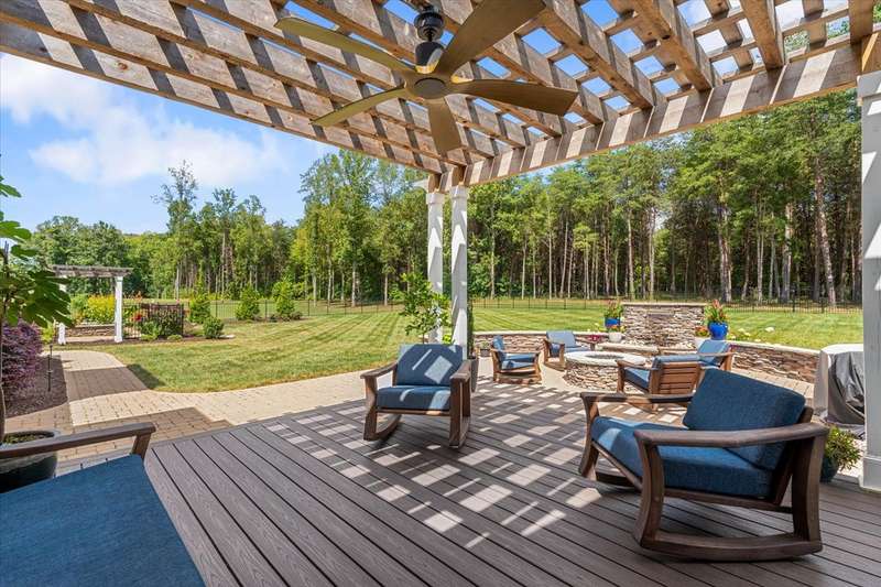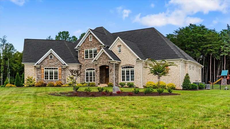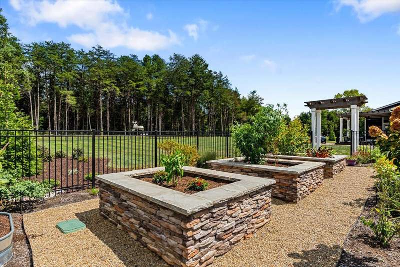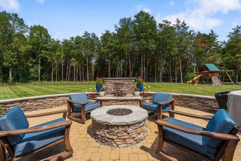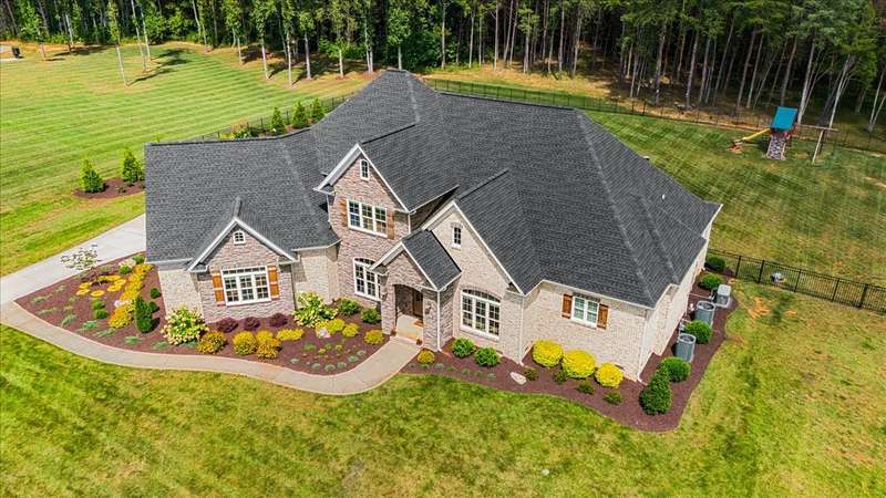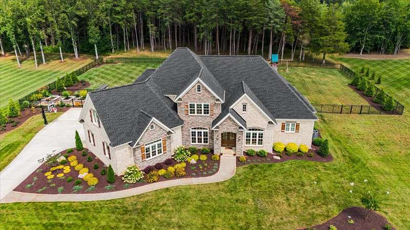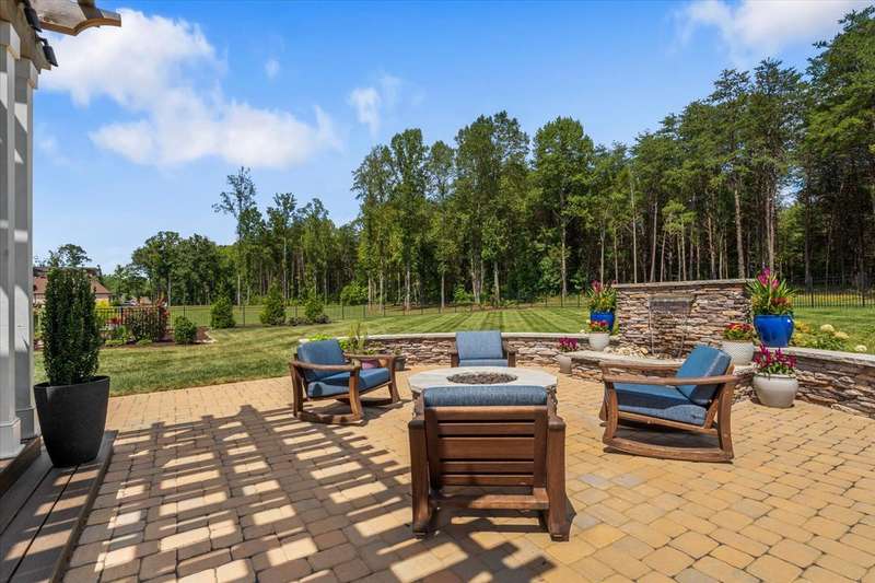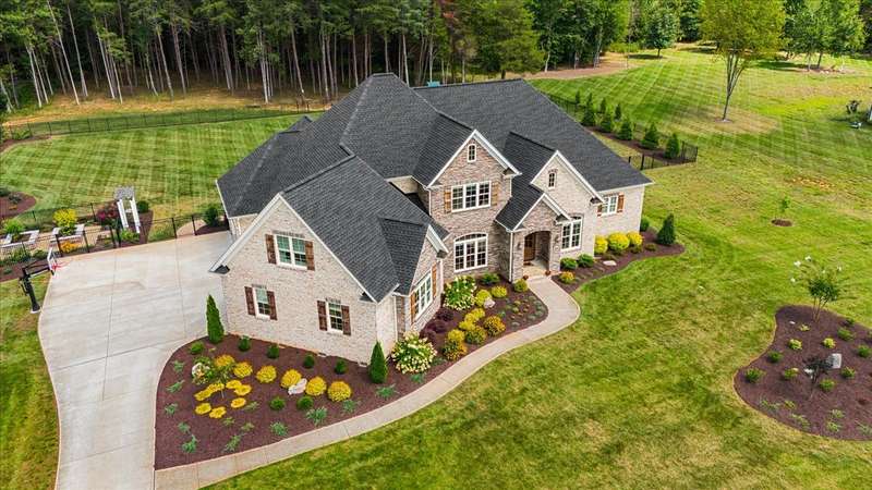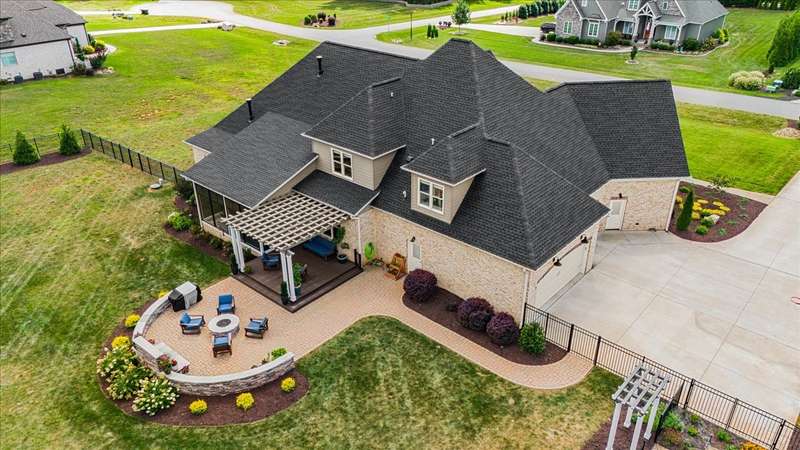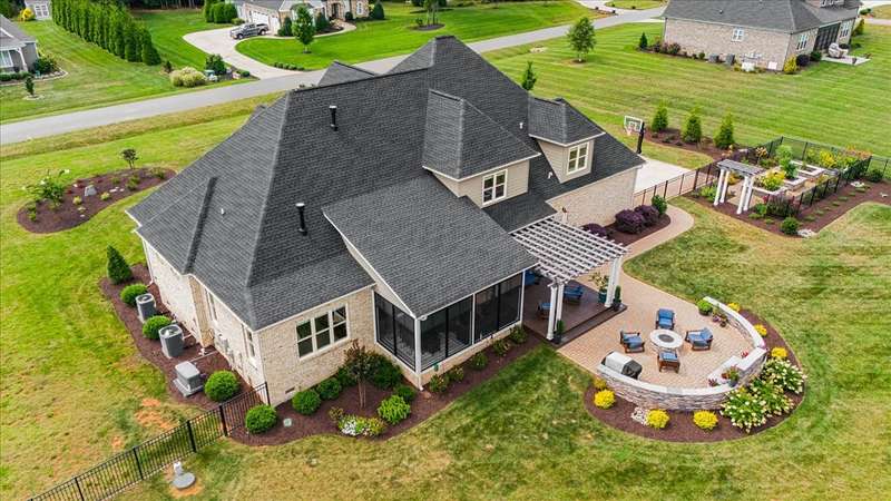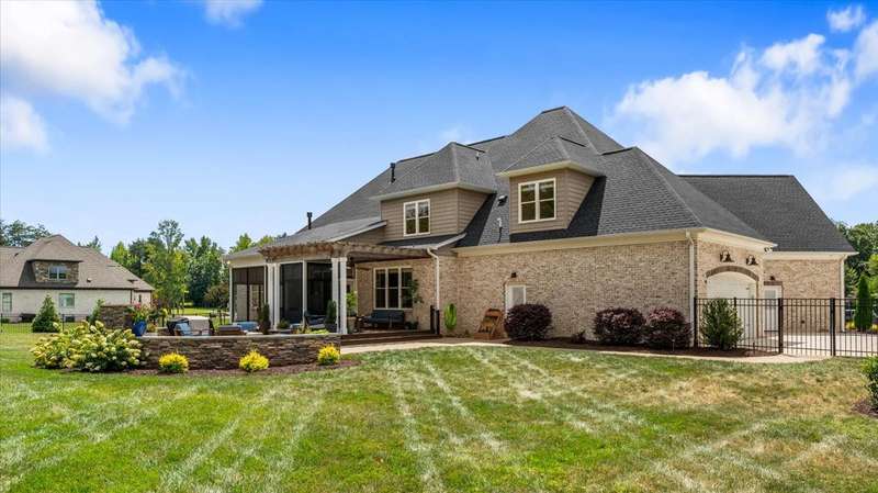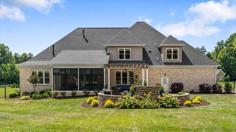 A rare blend of sophistication and comfort awaits on 2.3 flat acres. Nearly new and crafted with exceptional detail, this 5-bedroom residence offers refined living inside and out. The main-level primary suite is a true retreat with a spa-inspired bath and heated floors, complemented by an additional bedroom with en suite for versatile living. Upstairs, discover three bedrooms and two generous flex spaces designed for wellness, or leisure.Outdoor living is elevated with a large screened porch, custom patio featuring a water feature and gas fire pit, and a professionally designed garden with drip irrigation and lighting. A spacious 3.5-car garage completes this distinguished property that balances elegance, function, and modern design.
