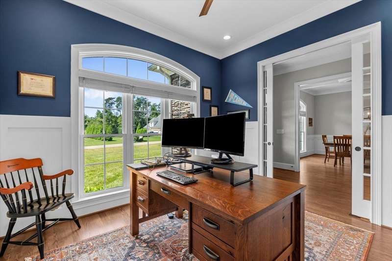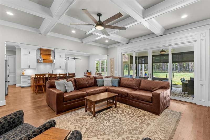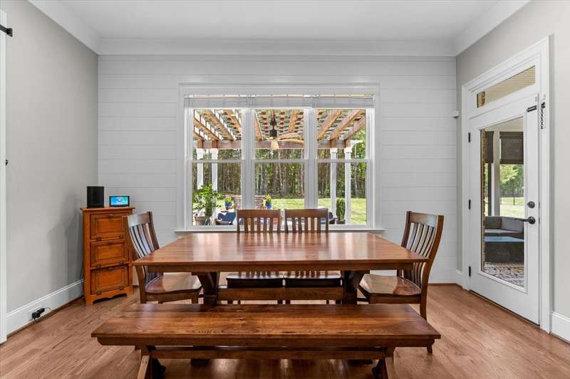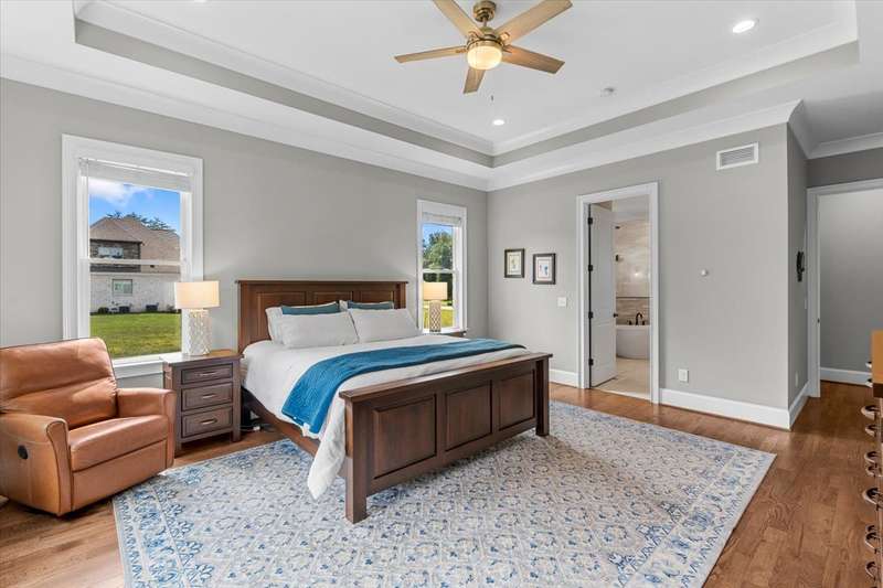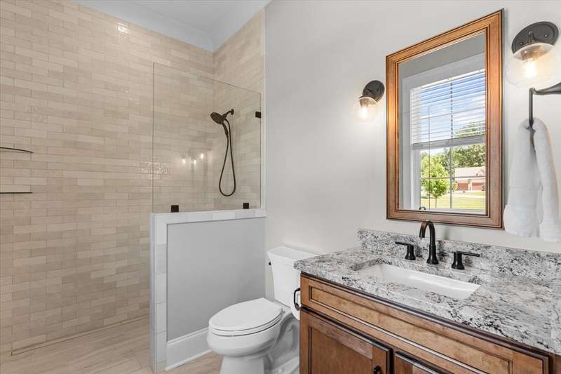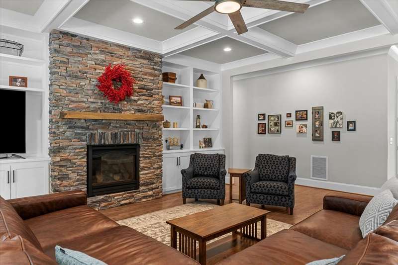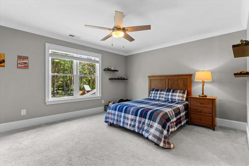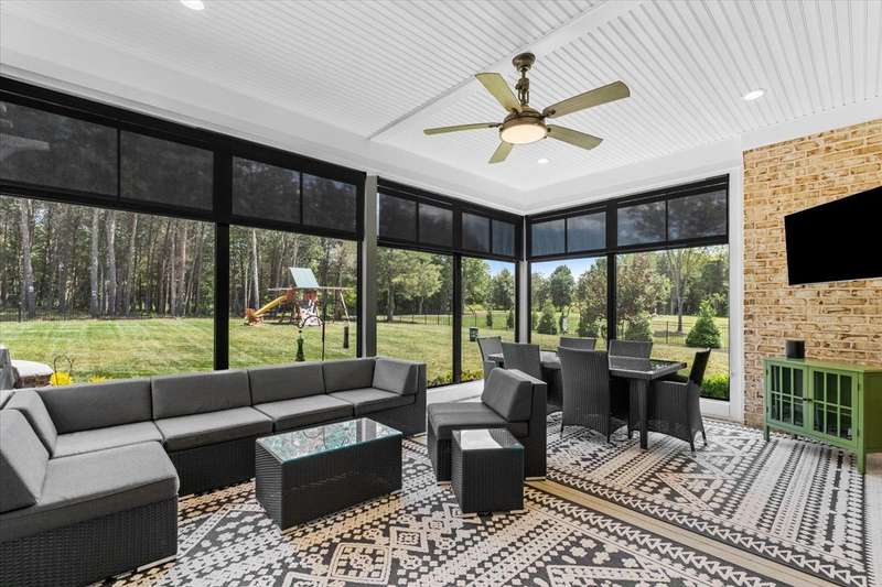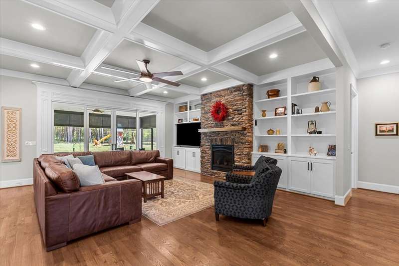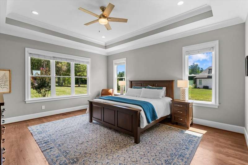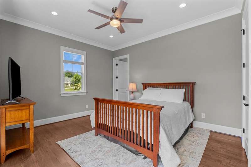 A rare blend of sophistication and comfort awaits on 2.3 flat acres. Nearly new and crafted with exceptional detail, this 5-bedroom residence offers refined living inside and out. The main-level primary suite is a true retreat with a spa-inspired bath and heated floors, complemented by an additional bedroom with en suite for versatile living. Upstairs, discover three bedrooms and two generous flex spaces designed for wellness, or leisure.Outdoor living is elevated with a large screened porch, custom patio featuring a water feature and gas fire pit, and a professionally designed garden with drip irrigation and lighting. A spacious 3.5-car garage completes this distinguished property that balances elegance, function, and modern design.