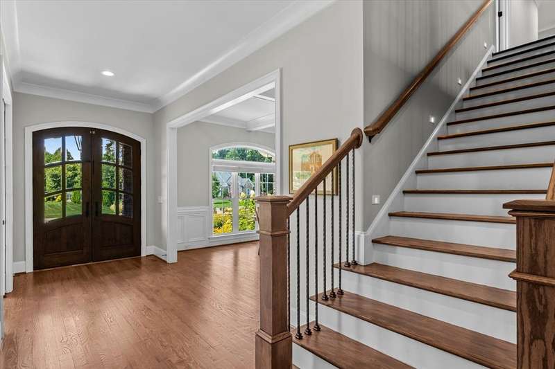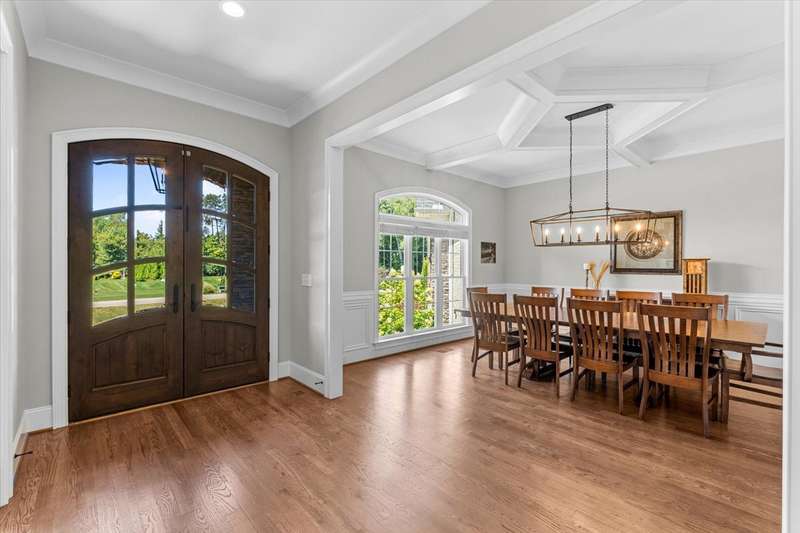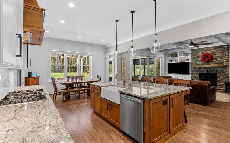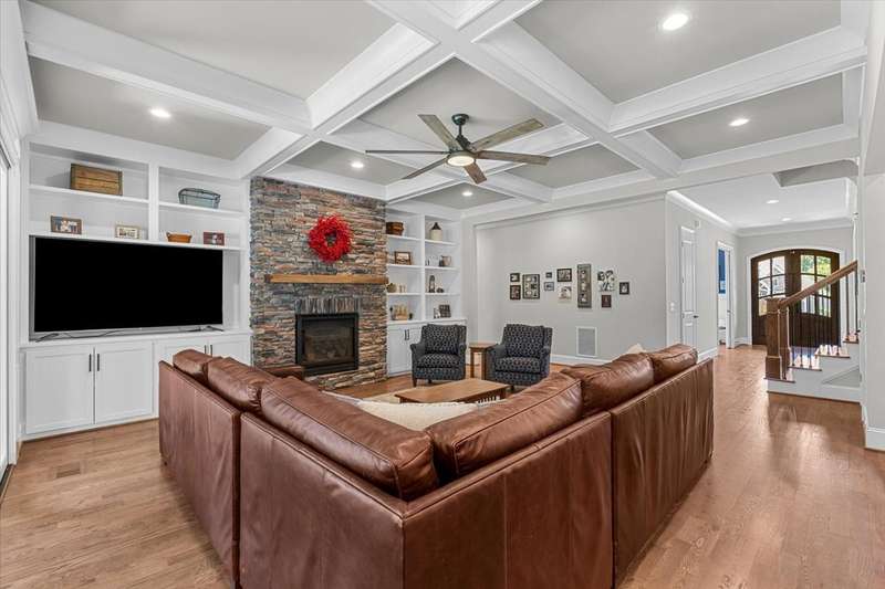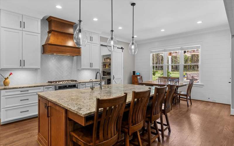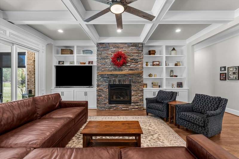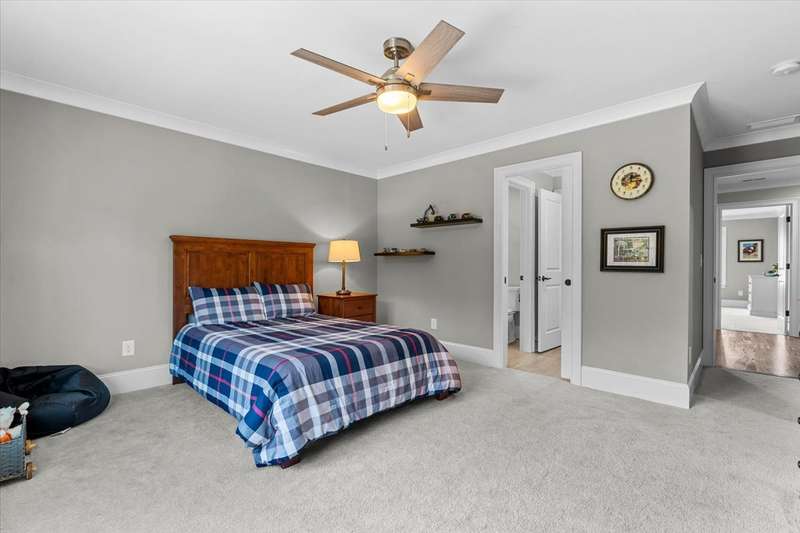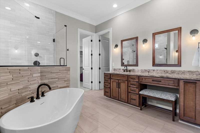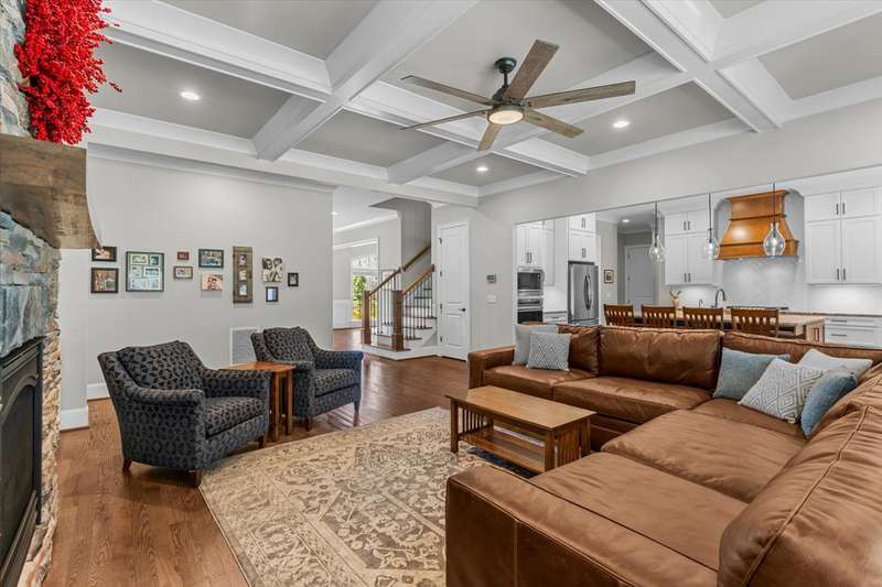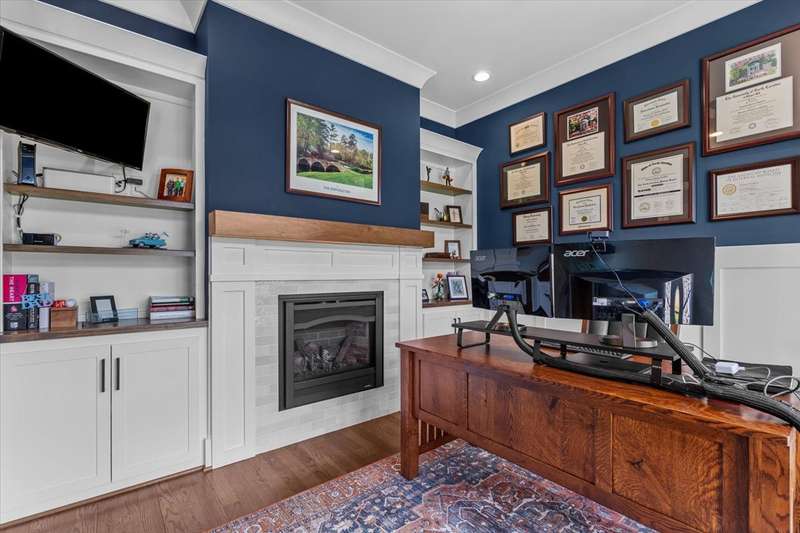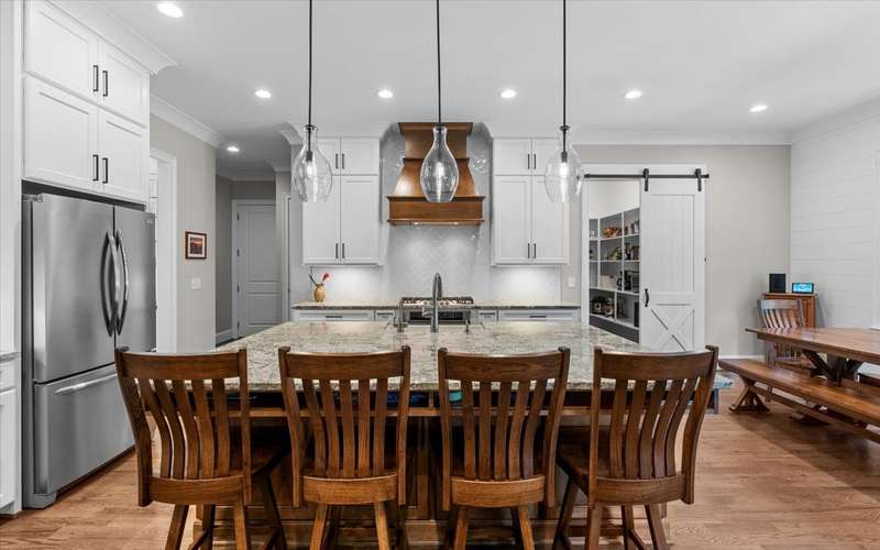 A rare blend of sophistication and comfort awaits on 2.3 flat acres. Nearly new and crafted with exceptional detail, this 5-bedroom residence offers refined living inside and out. The main-level primary suite is a true retreat with a spa-inspired bath and heated floors, complemented by an additional bedroom with en suite for versatile living. Upstairs, discover three bedrooms and two generous flex spaces designed for wellness, or leisure.Outdoor living is elevated with a large screened porch, custom patio featuring a water feature and gas fire pit, and a professionally designed garden with drip irrigation and lighting. A spacious 3.5-car garage completes this distinguished property that balances elegance, function, and modern design.