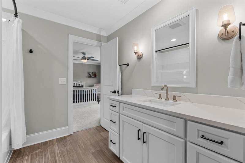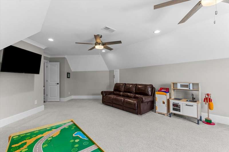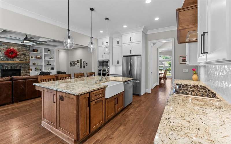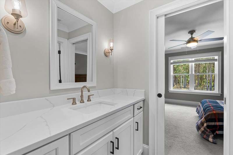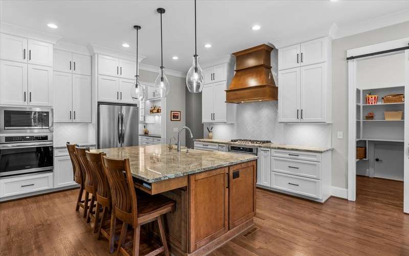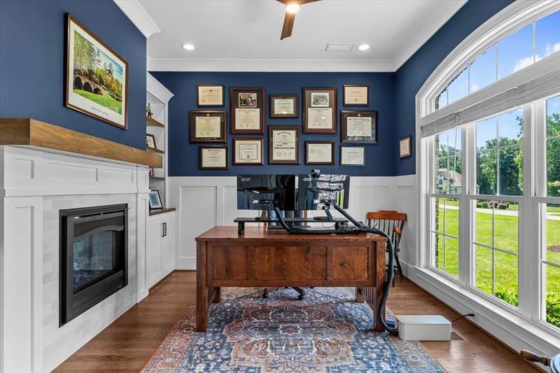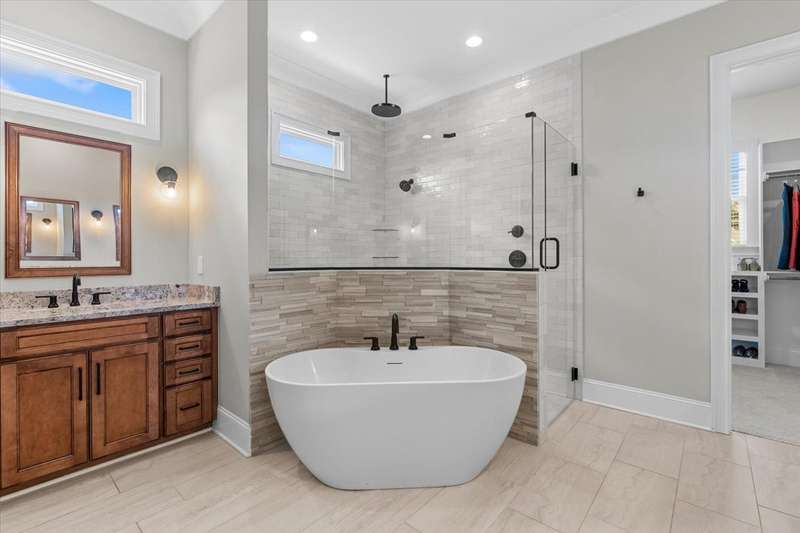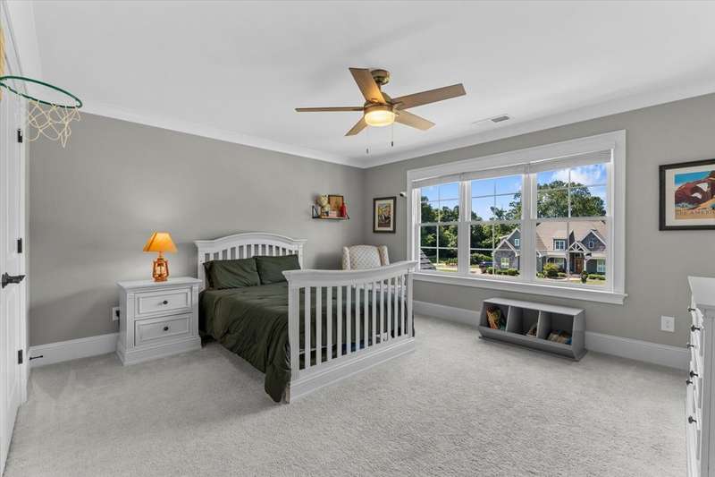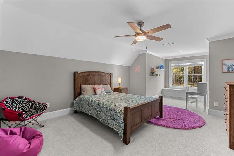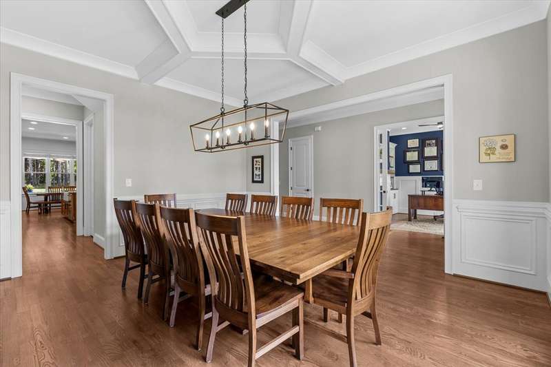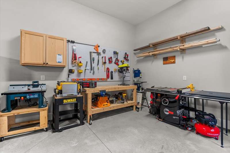 A rare blend of sophistication and comfort awaits on 2.3 flat acres. Nearly new and crafted with exceptional detail, this 5-bedroom residence offers refined living inside and out. The main-level primary suite is a true retreat with a spa-inspired bath and heated floors, complemented by an additional bedroom with en suite for versatile living. Upstairs, discover three bedrooms and two generous flex spaces designed for wellness, or leisure.Outdoor living is elevated with a large screened porch, custom patio featuring a water feature and gas fire pit, and a professionally designed garden with drip irrigation and lighting. A spacious 3.5-car garage completes this distinguished property that balances elegance, function, and modern design.