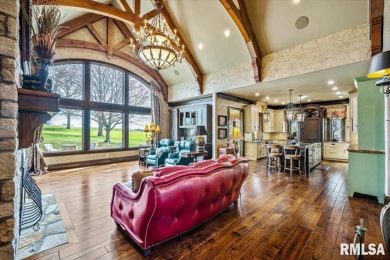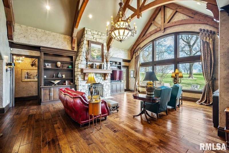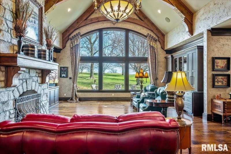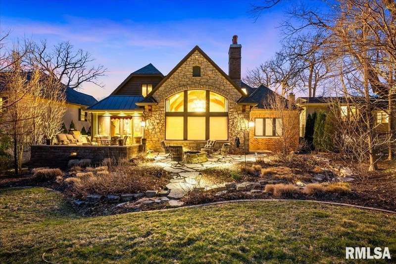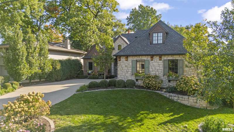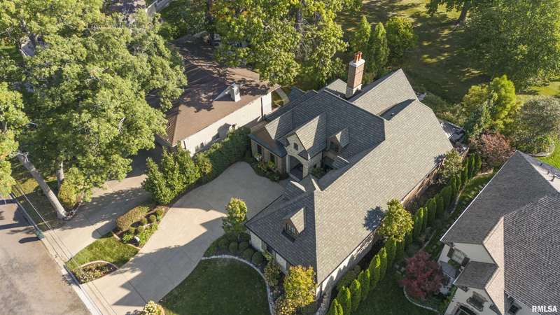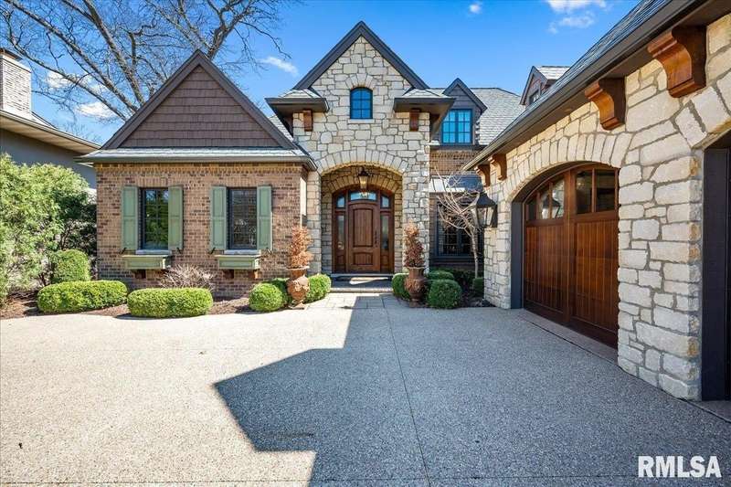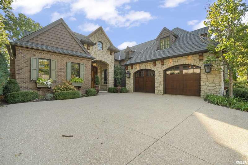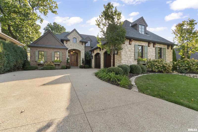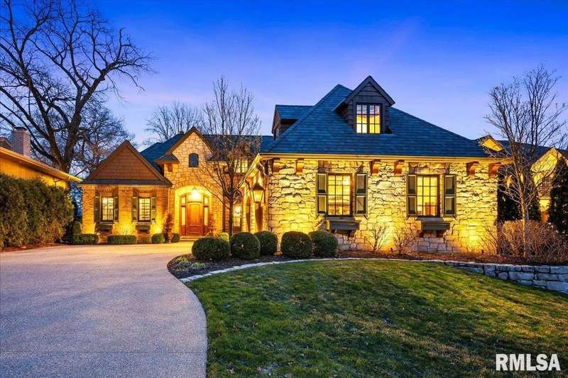 Once-in-a-lifetime opportunity to own one of the finest properties in Central Illinois! Nestled on the prestigious Country Club of Peoria golf course, this stunning 4-bedroom, 4.5-bathroom home offers over 6,200 square feet of luxurious living space. Built in 2017, it boasts incredible curb appeal and sophisticated design. The sellers went to great lengths to source the highest quality materials available, most of which are custom and handmade specifically for this home. The great room features soaring 22-foot cathedral ceilings with striking wooden trusses and double-height Wisconsin stone fireplace, creating an inviting and grand atmosphere. The chef's kitchen is as functional as it is beautiful, with Roecker cabinetry, custom granite counters, high-end appliances, and hand-hammered copper sinks. The main floor primary wing offers a spacious bedroom with golf course views, lavish bathroom, dressing areas, and laundry. Upstairs, you'll find a private ensuite bedroom, along with two additional large bedrooms and guest bathroom. The finished basement has a large family room with stone fireplace, workout room, full bathroom, and potential theater. All levels have heated floors and zoned HVAC, allowing for comfortable temperatures throughout the home. Conveniently located just off the desirable Grandview Drive, this property is close to all your favorite shopping, dining, views, and amenities. Seize your opportunity to own a true Peoria Heights masterpiece of design and luxury.