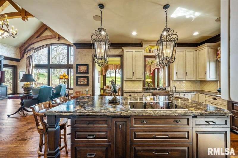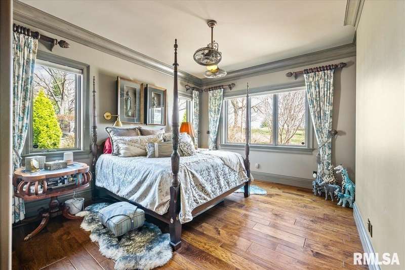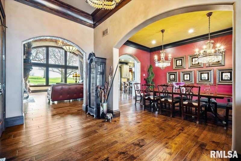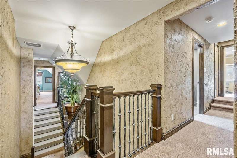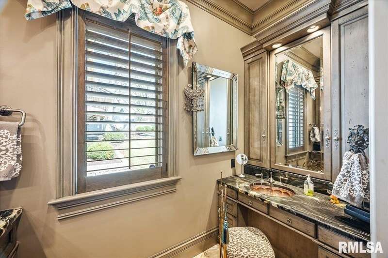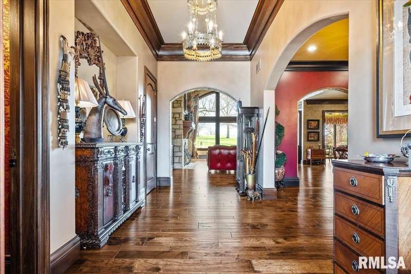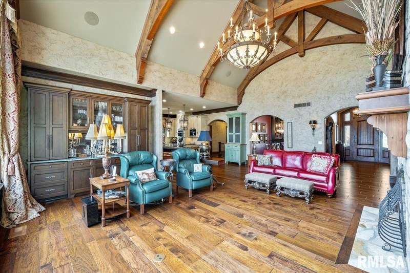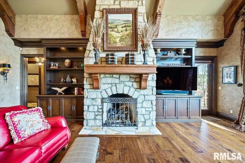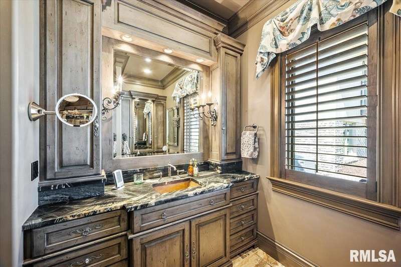Once-in-a-lifetime opportunity to own one of the finest properties in Central Illinois! Nestled on the prestigious Country Club of Peoria golf course, this stunning 4-bedroom, 4.5-bathroom home offers over 6,200 square feet of luxurious living space. Built in 2017, it boasts incredible curb appeal and sophisticated design. The sellers went to great lengths to source the highest quality materials available, most of which are custom and handmade specifically for this home. The great room features soaring 22-foot cathedral ceilings with striking wooden trusses and double-height Wisconsin stone fireplace, creating an inviting and grand atmosphere. The chef's kitchen is as functional as it is beautiful, with Roecker cabinetry, custom granite counters, high-end appliances, and hand-hammered copper sinks. The main floor primary wing offers a spacious bedroom with golf course views, lavish bathroom, dressing areas, and laundry. Upstairs, you'll find a private ensuite bedroom, along with two additional large bedrooms and guest bathroom. The finished basement has a large family room with stone fireplace, workout room, full bathroom, and potential theater. All levels have heated floors and zoned HVAC, allowing for comfortable temperatures throughout the home. Conveniently located just off the desirable Grandview Drive, this property is close to all your favorite shopping, dining, views, and amenities. Seize your opportunity to own a true Peoria Heights masterpiece of design and luxury.