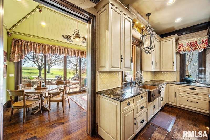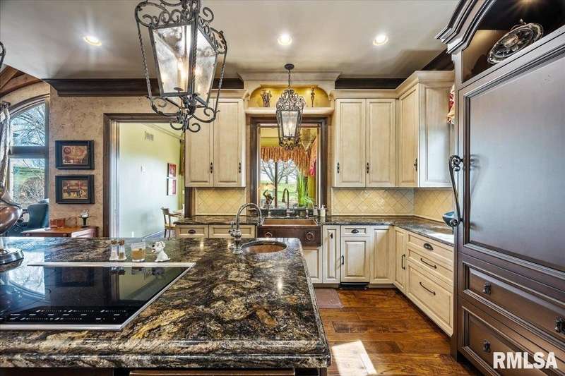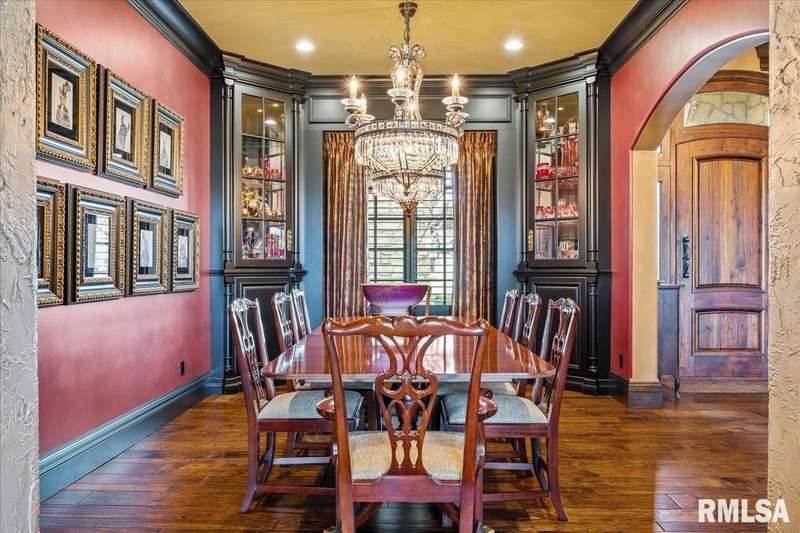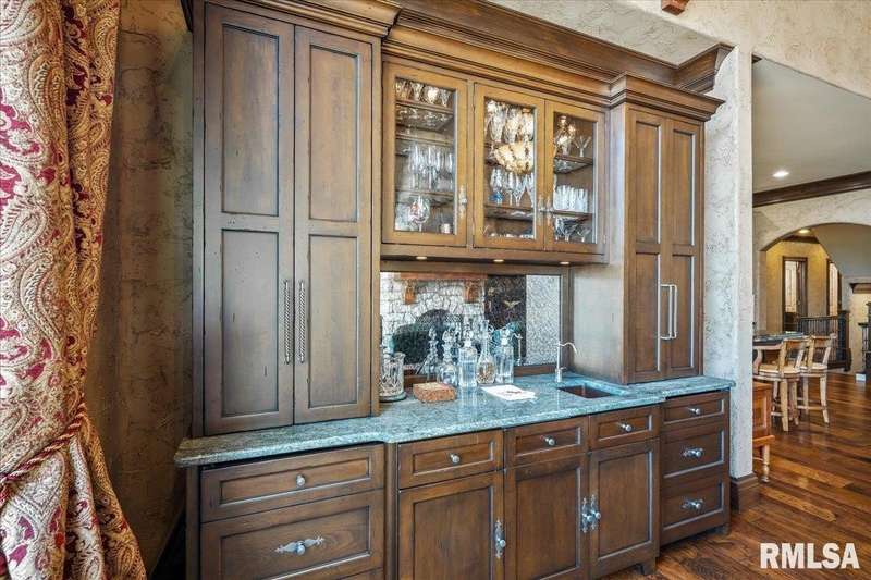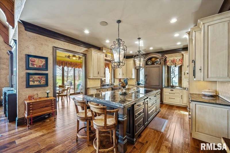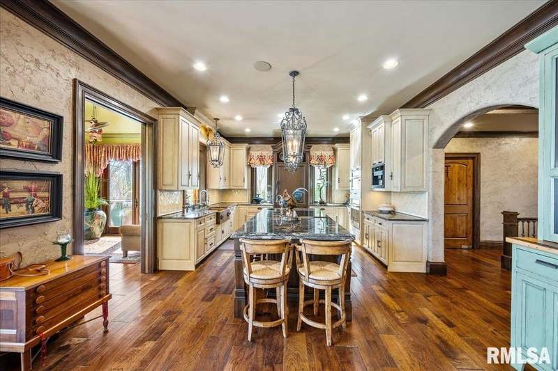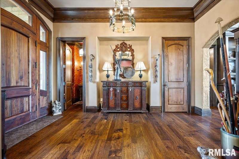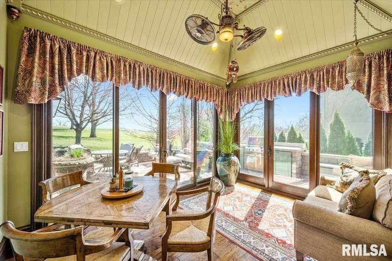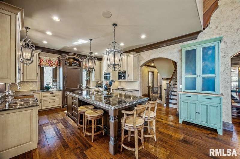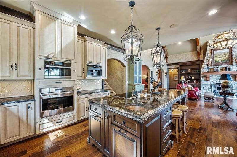 Once-in-a-lifetime opportunity to own one of the finest properties in Central Illinois! Nestled on the prestigious Country Club of Peoria golf course, this stunning 4-bedroom, 4.5-bathroom home offers over 6,200 square feet of luxurious living space. Built in 2017, it boasts incredible curb appeal and sophisticated design. The sellers went to great lengths to source the highest quality materials available, most of which are custom and handmade specifically for this home. The great room features soaring 22-foot cathedral ceilings with striking wooden trusses and double-height Wisconsin stone fireplace, creating an inviting and grand atmosphere. The chef's kitchen is as functional as it is beautiful, with Roecker cabinetry, custom granite counters, high-end appliances, and hand-hammered copper sinks. The main floor primary wing offers a spacious bedroom with golf course views, lavish bathroom, dressing areas, and laundry. Upstairs, you'll find a private ensuite bedroom, along with two additional large bedrooms and guest bathroom. The finished basement has a large family room with stone fireplace, workout room, full bathroom, and potential theater. All levels have heated floors and zoned HVAC, allowing for comfortable temperatures throughout the home. Conveniently located just off the desirable Grandview Drive, this property is close to all your favorite shopping, dining, views, and amenities. Seize your opportunity to own a true Peoria Heights masterpiece of design and luxury.