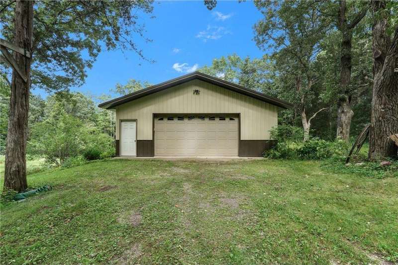 Welcome to this beautifully maintained 4-bedroom, 2-bath home tucked away on a quiet dead-end road. Situated on 2.5 acres, this property is truly a nature lover's and gardener’s dream, complete with apple, apricot, and plum trees, grapevines, perennial gardens and trails that meander through the woods and take you to Clitty Lake. Need garage space? You'll have a spacious 38x24 fully insulated attached garage, a 30x40 pole shed with concrete floor and power, plus an additional 12x20 shed also with concrete floor and power — perfect for hobbies, storage, or projects. Additional highlights are hardwood floors, a cozy gas fireplace, a great 3-season porch to relax in and watch the wildlife in the backyard, and a two-tier, maintenance-free deck for outdoor entertaining. Updates include new Anderson windows, roof, siding, and a new concrete driveway with salt sealant. Additional amenities include an irrigation system and a new septic system scheduled for installation this fall. This lovingly cared-for property combines comfort, functionality, and natural beauty—ready for its next owner to enjoy!