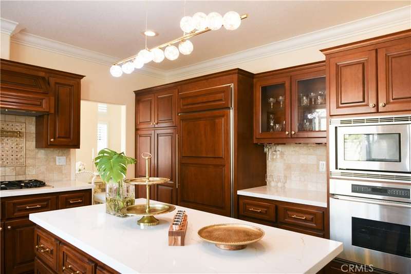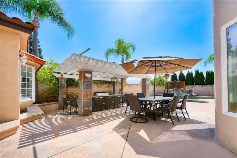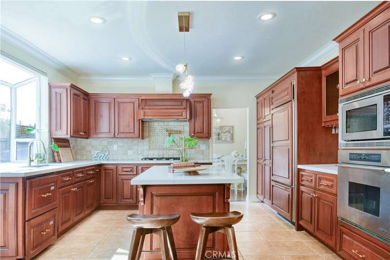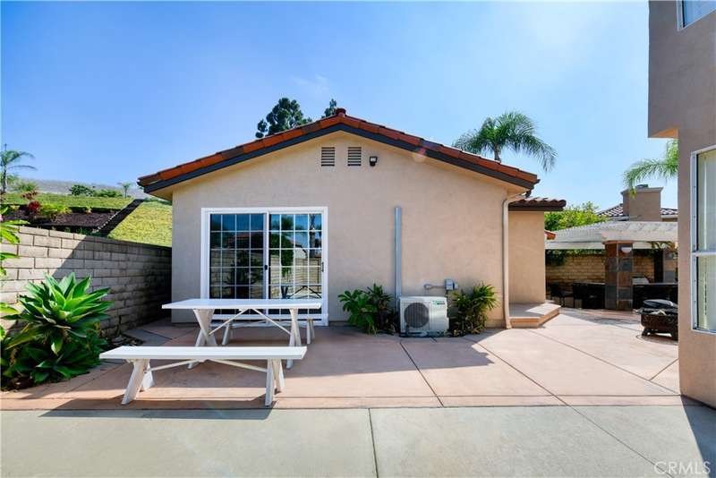 Welcome to this exquisite 2-story view home nestled in the prestigious Yorba Linda Hills, offering a perfect blend of luxury, comfort, and functionality on an expansive 11,000 sq. ft. lot. The main residence spans 2,465 sq. ft. and showcases 3 spacious bedrooms and 2.5 beautifully updated bathrooms, complemented by a detached 500+ sq. ft. casita with its own full bath--ideal as a private in-law suite, guest retreat, home office, or entertainment space. Upon entry, the grand foyer with soaring cathedral ceilings and abundant natural light leads into an elegant living and dining room enhanced by custom wood shutters and timeless tile flooring throughout. The gourmet kitchen is a chef's dream, featuring high-end quartz countertops, a full suite of luxury appliances including Sub-Zero built-in refrigerator, Dacor convection oven and microwave, Fisher & Paykel DishDrawer, Kohler pot filler, custom tile backsplash, and extensive cabinetry for maximum storage. The kitchen seamlessly opens to the oversized family room with a cozy fireplace and wall of windows overlooking the resort-style backyard with sparkling pool, spa, and built-in BBQ under a covered patio--perfect for year-round entertaining. Upstairs, the luxurious primary suite boasts vaulted ceilings, dual walk-in closets, and a spa-inspired bathroom with dual quartz vanities, frameless glass shower, and Whirlpool Hydrotherapy tub, while two additional large bedrooms with dual-paned windows and a full bath with quartz counters complete the upper level. Additional highlights include convenient inside laundry, a spacious 3-car garage, RV parking, and a flat usable lot with endless potential. With no HOA fees, no Mello Roos, and zoned for top-rated Bryant Ranch Elementary, Travis Ranch Middle, and Yorba Linda High School, this property represents the ultimate opportunity to experience upscale California living in one of Yorba Linda's most desirable neighborhoods.