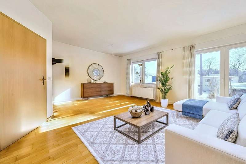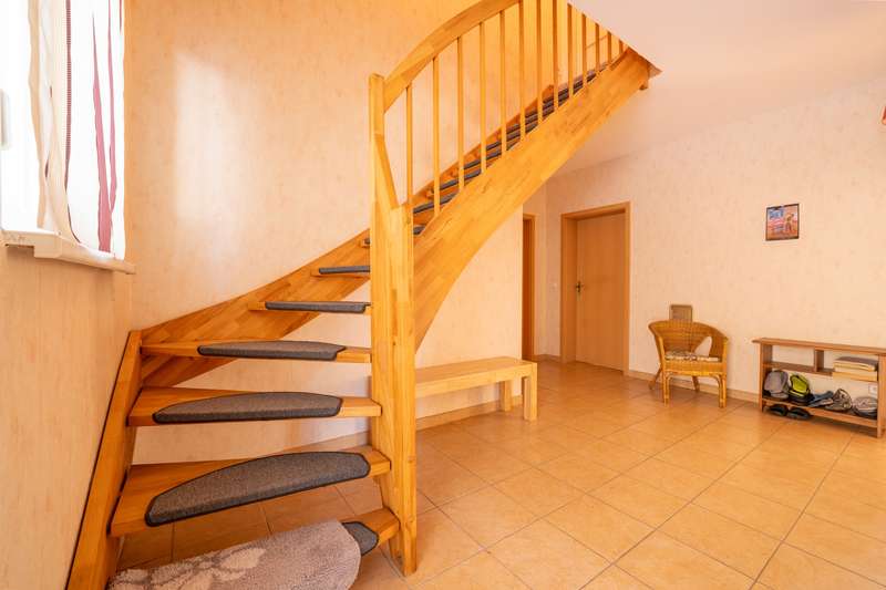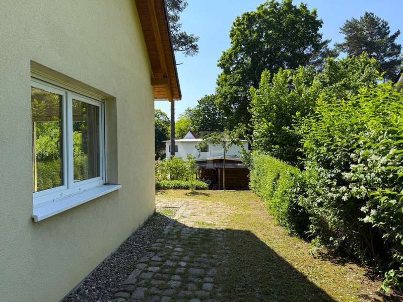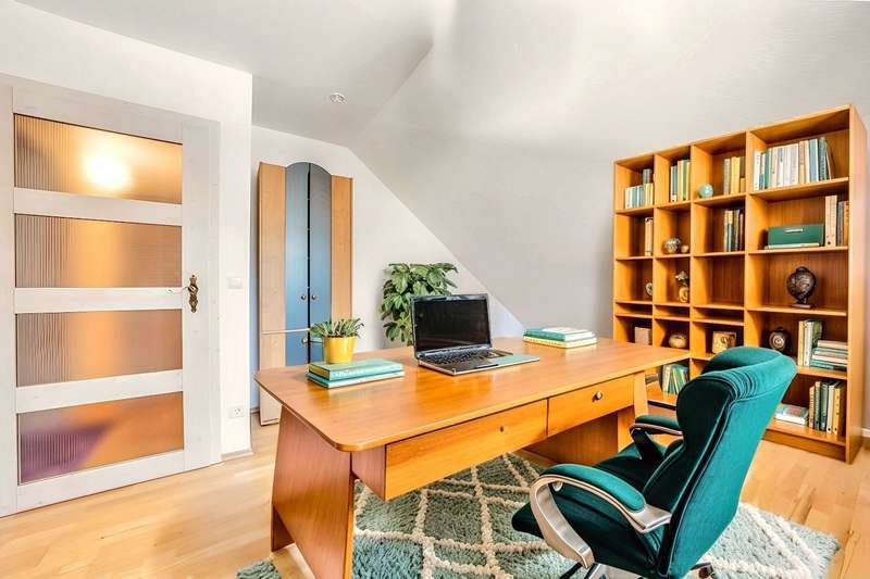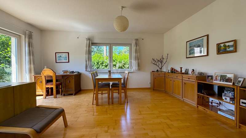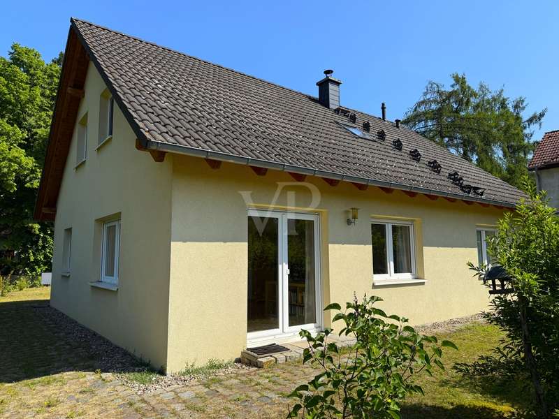 A well-kept detached house is for sale, which is characterized by its spacious, light-flooded living area with fireplace and its large, south-facing garden. The solid house was completed in 2002 and impresses with its well thought-out room layout and fantastic location with approx. 139m² of living space. The property extends over one floor plus a converted attic, which can be used as a granny apartment. This additional apartment offers both comfort and privacy and is ideal for guests or as a separate living area for adult family members. The central heat supply is provided by an efficient central heating system, which ensures a comfortable living climate. On the first floor is the spacious living and dining area, which radiates a warm atmosphere thanks to the parquet flooring and fireplace. The central wooden staircase leading to the top floor blends harmoniously into the overall picture. The daylight kitchen with its solid fitted kitchen offers plenty of space for cooking and enjoying meals as well as an extra seating area for communal meals. Particularly noteworthy is the bathroom with natural light, which is equipped with both a shower and a bathtub. This offers flexibility and comfort in daily use. The house comprises a total of three bedrooms, which impress with their variable usage options, be it as a children's room, office or guest room. The second daylight bathroom, including a shower, is located on the upper level. An extension with a bathtub is possible and prepared on the connection side. The large garden is one of the main advantages of this property. Not only does it offer plenty of space for outdoor leisure activities, it also has a practical shed for storing garden utensils or other requirements. The garden invites you to relax and offers a variety of design options. The plot can be divided and further development is possible in accordance with planning regulations. This detached house combines comfort with practical details and offers potential buyers the opportunity to acquire a well-maintained and attractive home. If you are interested, we will be happy to provide you with further information and arrange a viewing.