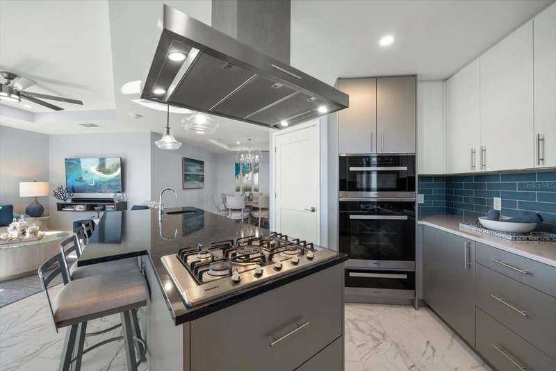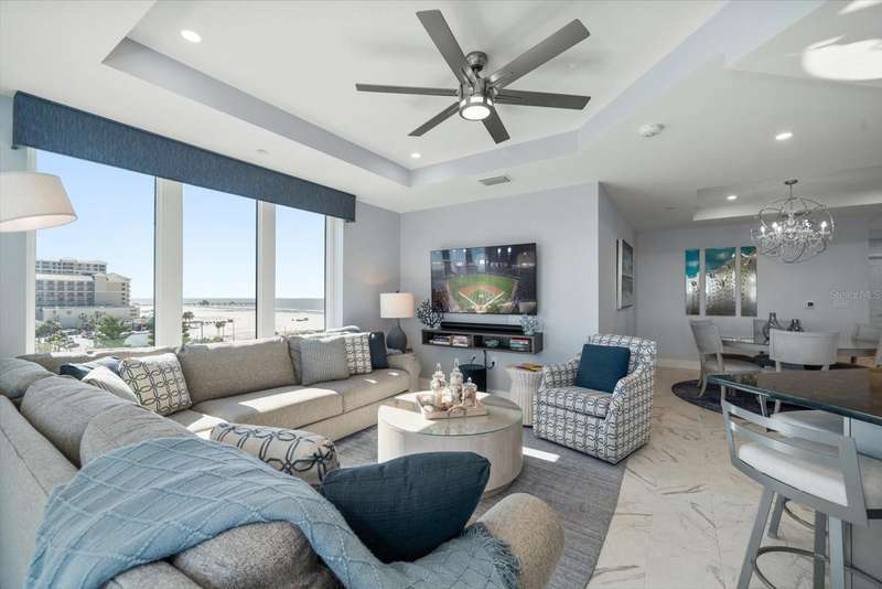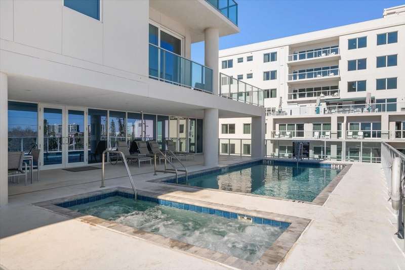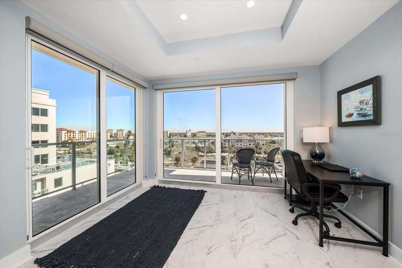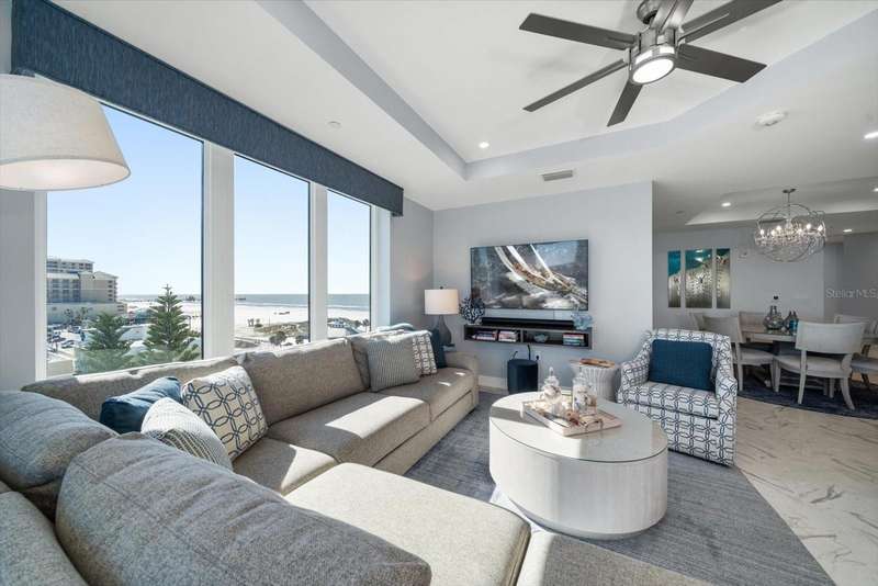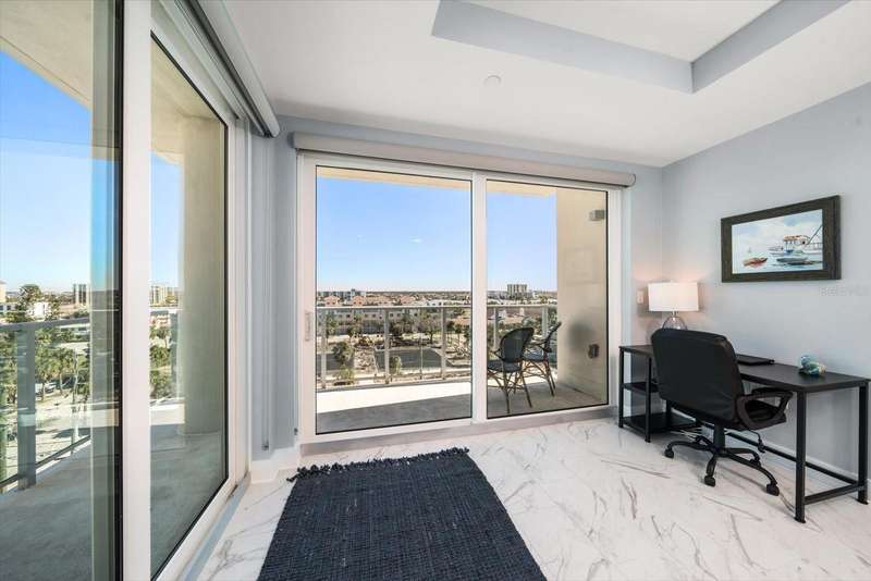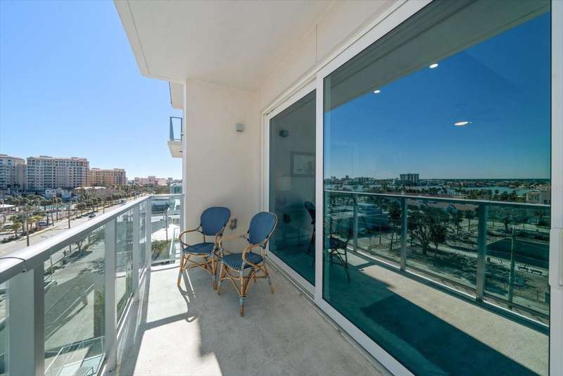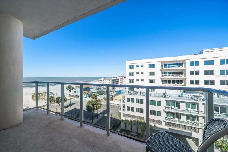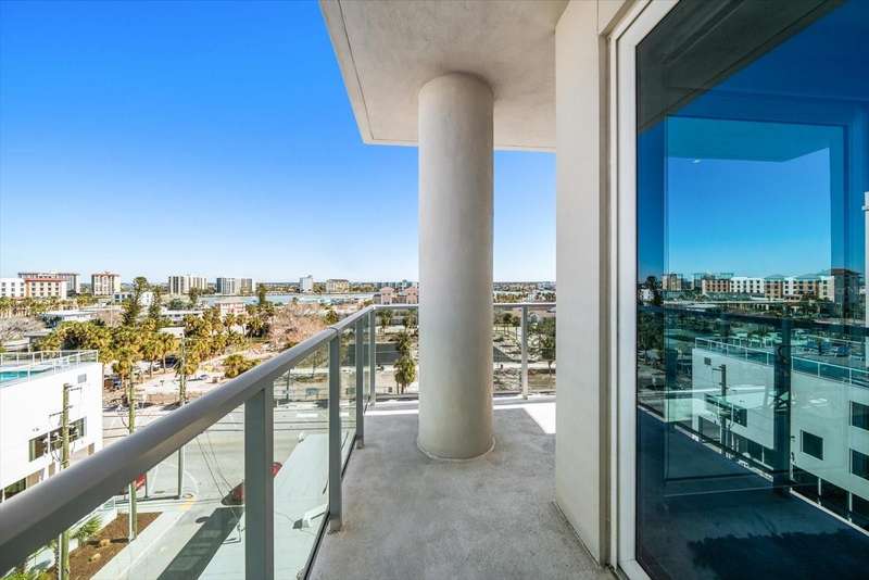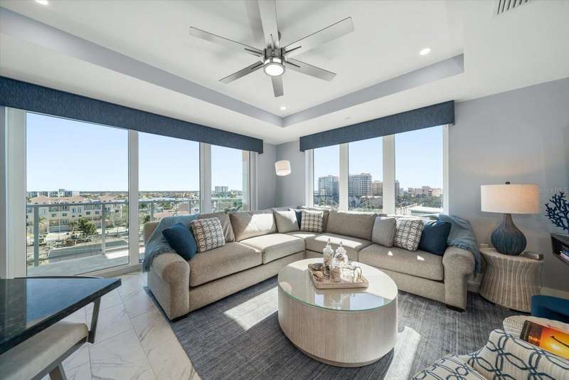 Under contract-accepting backup offers. Welcome to a wonderfully unique blend of serene, luxury beachfront living and area vibrancy…welcome to Pura Vida Residences. Built in 2020, this coastal sanctuary consisting of 22 private residences is one of the most recently constructed buildings in the area and sits at the tranquil, north end of award winning Clearwater Beach, yet is within easy access to shops, marine and beach activities, plus numerous restaurants, including fine dining for those special moments and casual beachfront establishments for enjoying the flip-flop life. Among the most desirable and welcoming floor plans in the building with 10’ ceilings and open concept kitchen, living and dining space, unit 704 is an exquisite and spacious NE corner residence offering comfort, style and refined living. Three separate glass paneled balconies (including one wrap-around), plus floor to ceiling impact windows and sliders, provide an enticing array of beach, Gulf of Mexico, Intracoastal waterway and kinetic city views at every turn. Secure elevator access opens directly to a private foyer, and double doors welcome you to a very special residence offering the ultimate coastal retreat. Please request the full feature sheet to truly appreciate all offerings and upgrades which include designer finishes, quartz countertop kitchen island, Miele appliances, 5 burner gas stove, consistent tile flooring throughout, motorized window shades in the living room…and so much more! Furniture and furnishings are available should you wish to truly experience a seamless transition and immediately begin living your island life. Original owner from 2021, gently used as a 2nd home, never rented and no pets have ever occupied the condo. Private, climate controlled, 8x8 (approx) storage unit. Secure, gated entry to the building, 2 assigned under building parking spaces (pre-wired for an electric vehicle charging station) on the upper parking level, conveniently located close to the lobby / elevator access. Personal beach locker for easy access to fun in the sun at your doorstep. Building amenities include heated pool with flow resistance, spa, club room, fully loaded fitness center, indoor bike storage, key fob and digital security for doors and elevators, back-up generator and 24-7 video security. Pro-active and professionally managed Association. Pet friendly building (1 pet under 30lbs). One month minimum rental. This is a fantastic opportunity to make this slice of luxury paradise…yours!