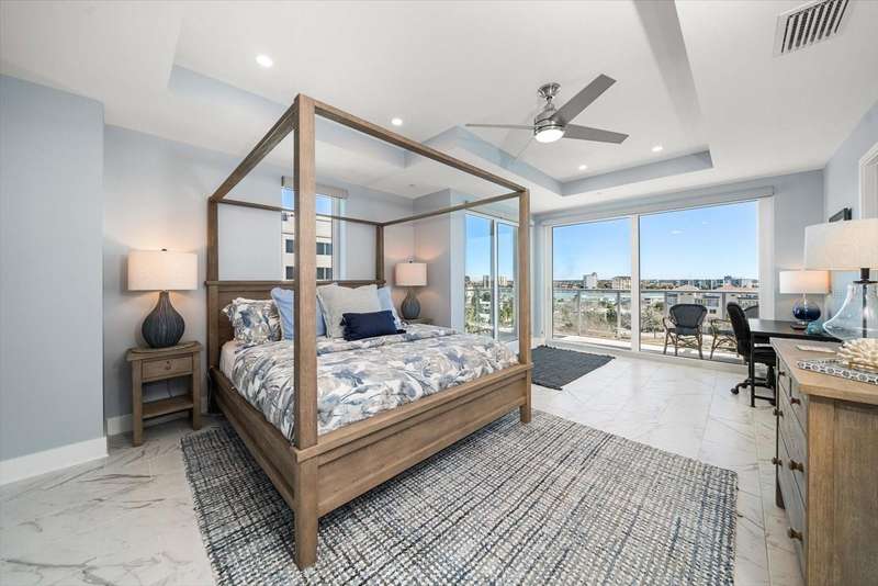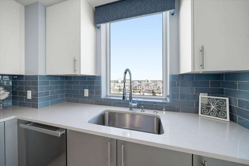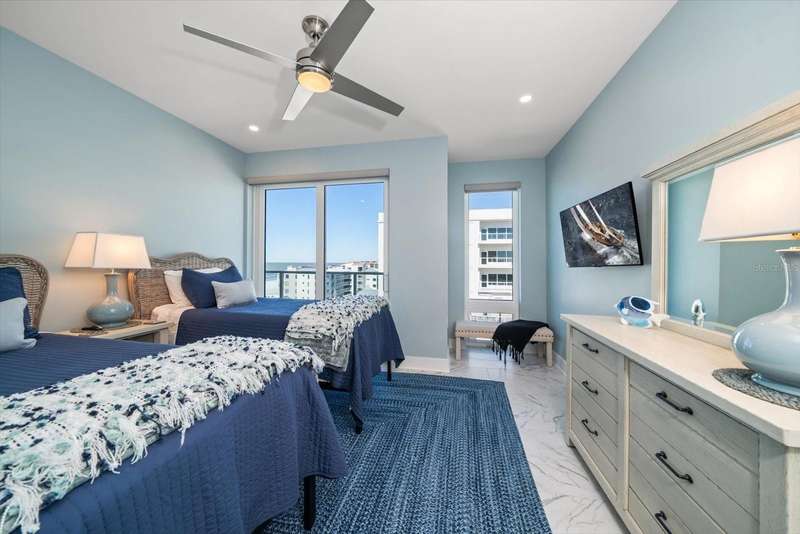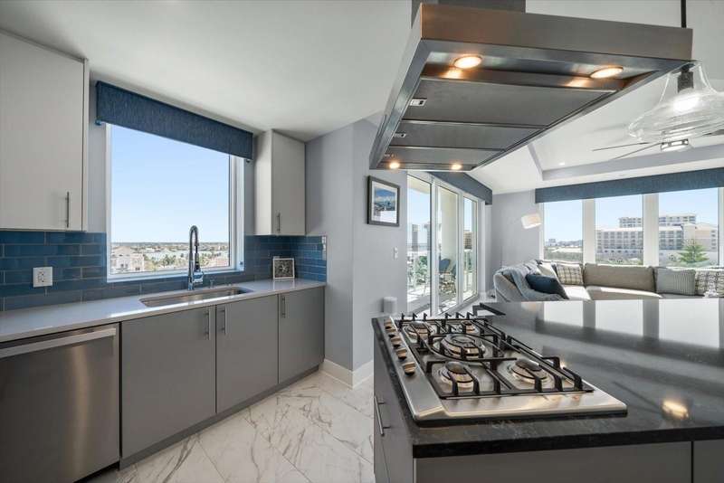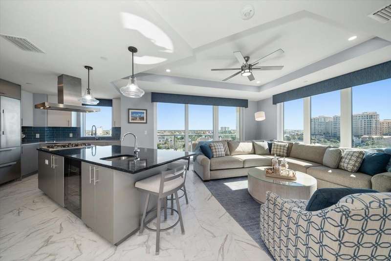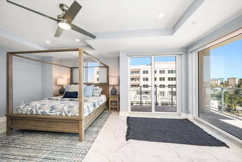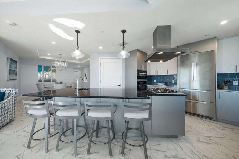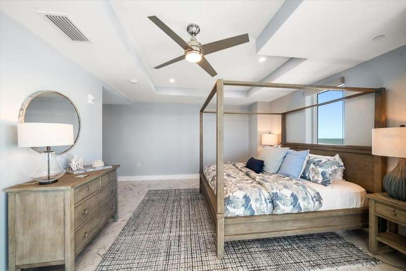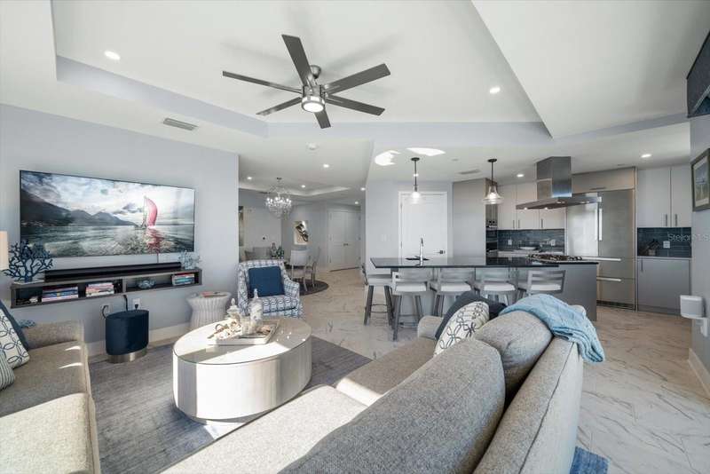 Under contract-accepting backup offers. Welcome to a wonderfully unique blend of serene, luxury beachfront living and area vibrancy…welcome to Pura Vida Residences. Built in 2020, this coastal sanctuary consisting of 22 private residences is one of the most recently constructed buildings in the area and sits at the tranquil, north end of award winning Clearwater Beach, yet is within easy access to shops, marine and beach activities, plus numerous restaurants, including fine dining for those special moments and casual beachfront establishments for enjoying the flip-flop life. Among the most desirable and welcoming floor plans in the building with 10’ ceilings and open concept kitchen, living and dining space, unit 704 is an exquisite and spacious NE corner residence offering comfort, style and refined living. Three separate glass paneled balconies (including one wrap-around), plus floor to ceiling impact windows and sliders, provide an enticing array of beach, Gulf of Mexico, Intracoastal waterway and kinetic city views at every turn. Secure elevator access opens directly to a private foyer, and double doors welcome you to a very special residence offering the ultimate coastal retreat. Please request the full feature sheet to truly appreciate all offerings and upgrades which include designer finishes, quartz countertop kitchen island, Miele appliances, 5 burner gas stove, consistent tile flooring throughout, motorized window shades in the living room…and so much more! Furniture and furnishings are available should you wish to truly experience a seamless transition and immediately begin living your island life. Original owner from 2021, gently used as a 2nd home, never rented and no pets have ever occupied the condo. Private, climate controlled, 8x8 (approx) storage unit. Secure, gated entry to the building, 2 assigned under building parking spaces (pre-wired for an electric vehicle charging station) on the upper parking level, conveniently located close to the lobby / elevator access. Personal beach locker for easy access to fun in the sun at your doorstep. Building amenities include heated pool with flow resistance, spa, club room, fully loaded fitness center, indoor bike storage, key fob and digital security for doors and elevators, back-up generator and 24-7 video security. Pro-active and professionally managed Association. Pet friendly building (1 pet under 30lbs). One month minimum rental. This is a fantastic opportunity to make this slice of luxury paradise…yours!
