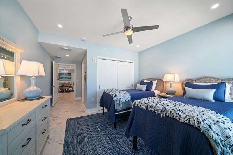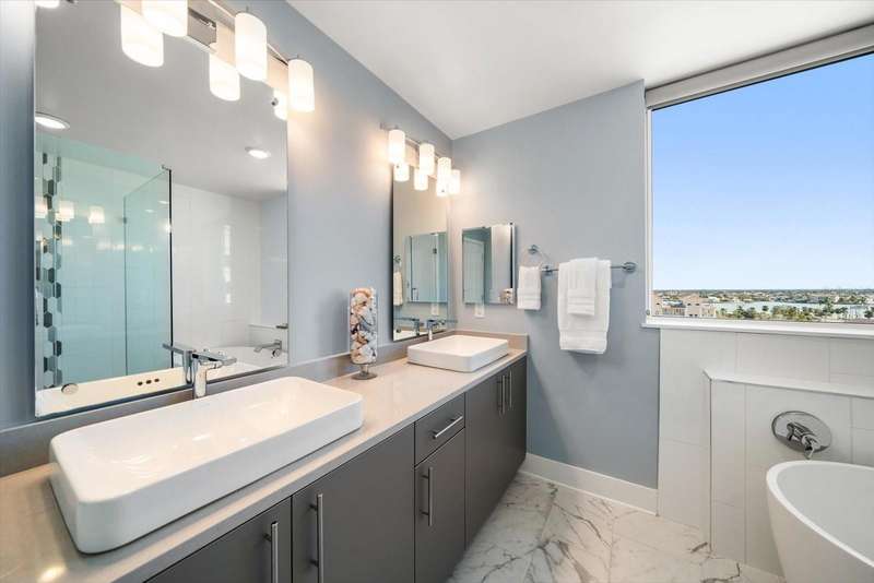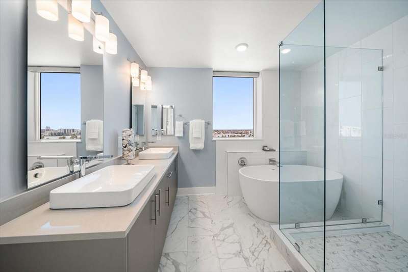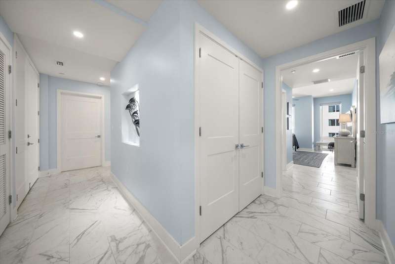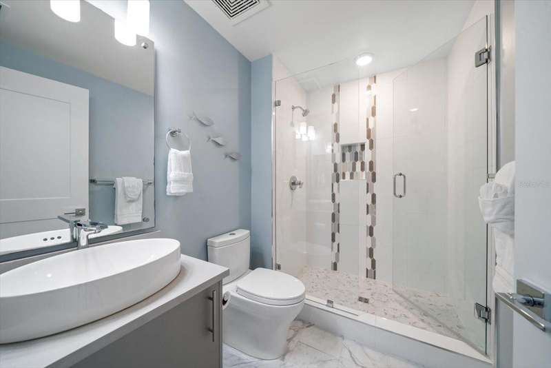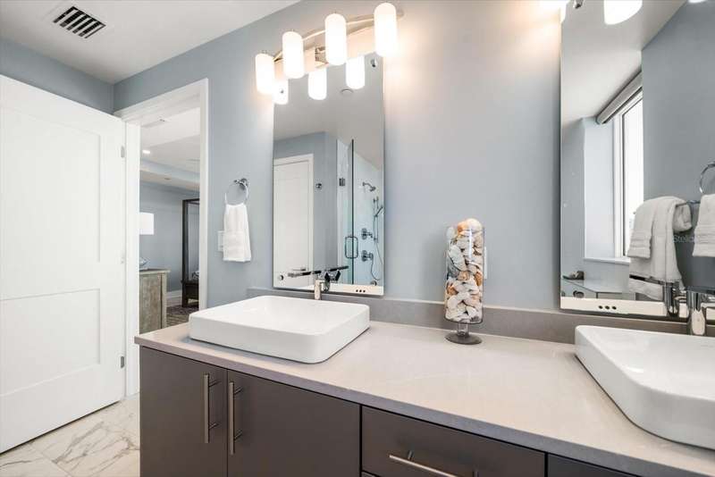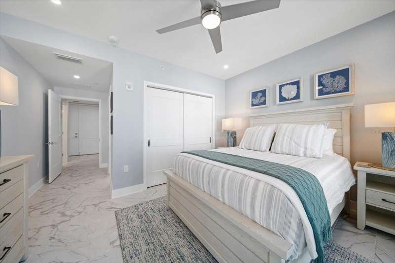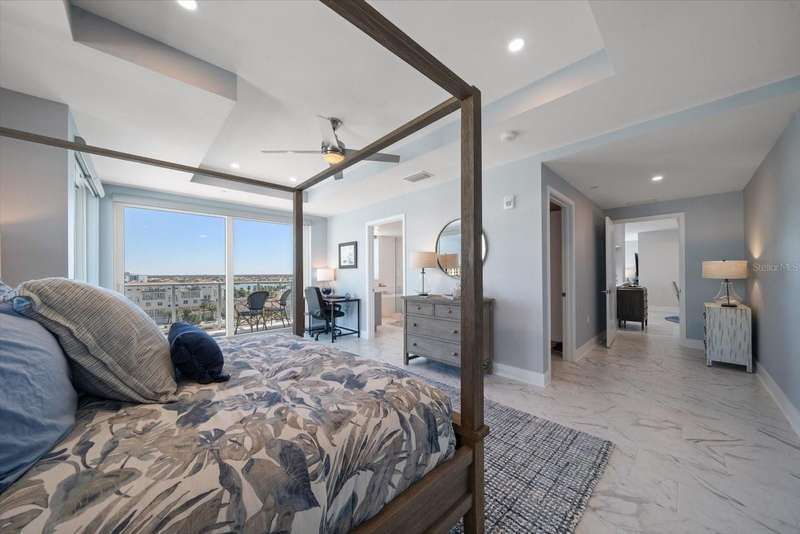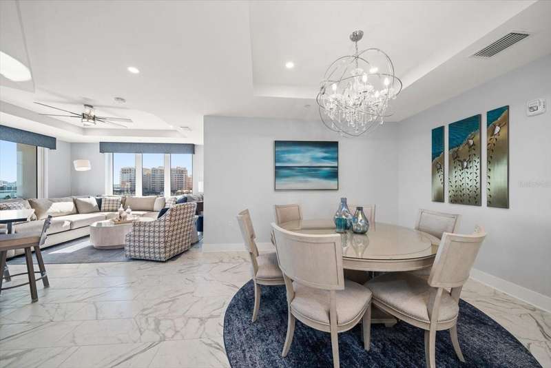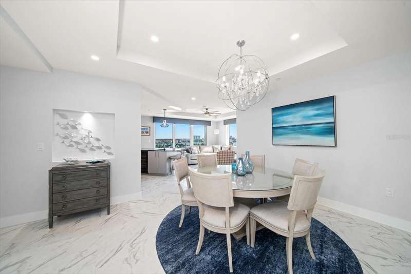 Under contract-accepting backup offers. Welcome to a wonderfully unique blend of serene, luxury beachfront living and area vibrancy…welcome to Pura Vida Residences. Built in 2020, this coastal sanctuary consisting of 22 private residences is one of the most recently constructed buildings in the area and sits at the tranquil, north end of award winning Clearwater Beach, yet is within easy access to shops, marine and beach activities, plus numerous restaurants, including fine dining for those special moments and casual beachfront establishments for enjoying the flip-flop life. Among the most desirable and welcoming floor plans in the building with 10’ ceilings and open concept kitchen, living and dining space, unit 704 is an exquisite and spacious NE corner residence offering comfort, style and refined living. Three separate glass paneled balconies (including one wrap-around), plus floor to ceiling impact windows and sliders, provide an enticing array of beach, Gulf of Mexico, Intracoastal waterway and kinetic city views at every turn. Secure elevator access opens directly to a private foyer, and double doors welcome you to a very special residence offering the ultimate coastal retreat. Please request the full feature sheet to truly appreciate all offerings and upgrades which include designer finishes, quartz countertop kitchen island, Miele appliances, 5 burner gas stove, consistent tile flooring throughout, motorized window shades in the living room…and so much more! Furniture and furnishings are available should you wish to truly experience a seamless transition and immediately begin living your island life. Original owner from 2021, gently used as a 2nd home, never rented and no pets have ever occupied the condo. Private, climate controlled, 8x8 (approx) storage unit. Secure, gated entry to the building, 2 assigned under building parking spaces (pre-wired for an electric vehicle charging station) on the upper parking level, conveniently located close to the lobby / elevator access. Personal beach locker for easy access to fun in the sun at your doorstep. Building amenities include heated pool with flow resistance, spa, club room, fully loaded fitness center, indoor bike storage, key fob and digital security for doors and elevators, back-up generator and 24-7 video security. Pro-active and professionally managed Association. Pet friendly building (1 pet under 30lbs). One month minimum rental. This is a fantastic opportunity to make this slice of luxury paradise…yours!