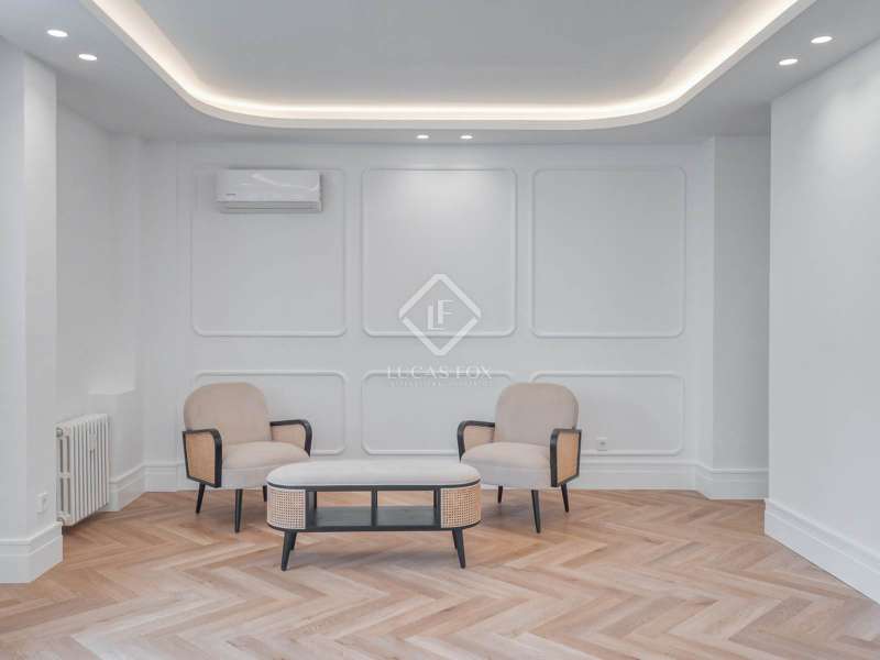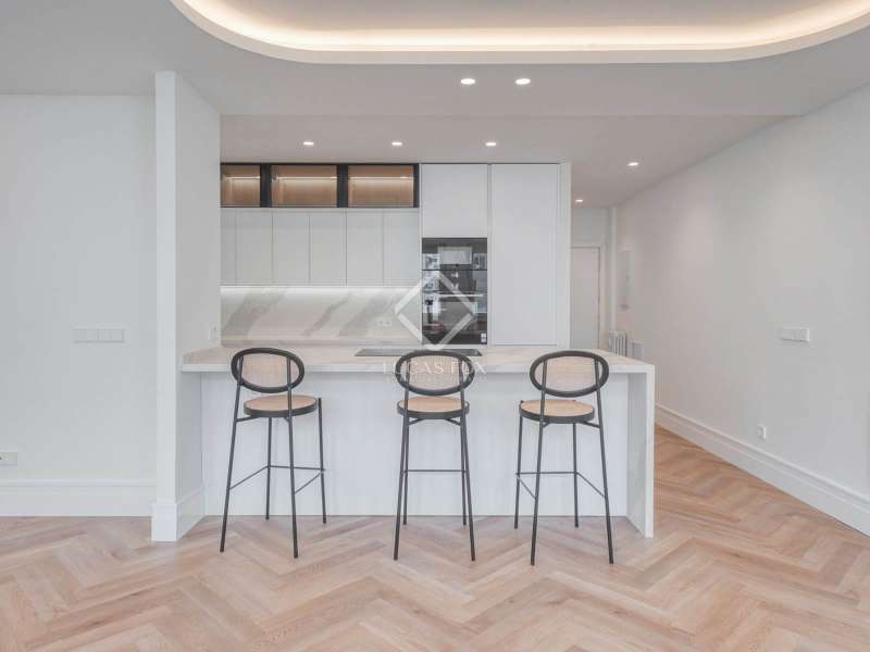Lucas Fox presents this impressive, fully renovated three-bedroom, four-bathroom apartment located in the exclusive Goya area of Madrid. The property boasts a modern layout , high-quality finishes, and elegant details that give it a unique character. The property offers spacious and bright spaces, where every corner has been carefully designed to maximize comfort and functionality. Upon entering the property, we find a guest bathroom on the right. Continuing down the corridor, we find a modern open kitchen that blends seamlessly into the open living-dining room, bright open-plan and dining area. Passing through the living room, we reach the night area, where there are three bedrooms, each with its own private bathroom. The main bedroom also has a unique dressing room, providing additional storage space. The location is ideal for those seeking a sophisticated setting with easy access to Madrid's best shopping, dining, and entertainment areas .