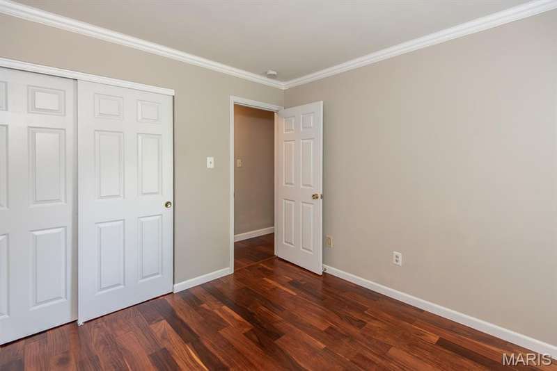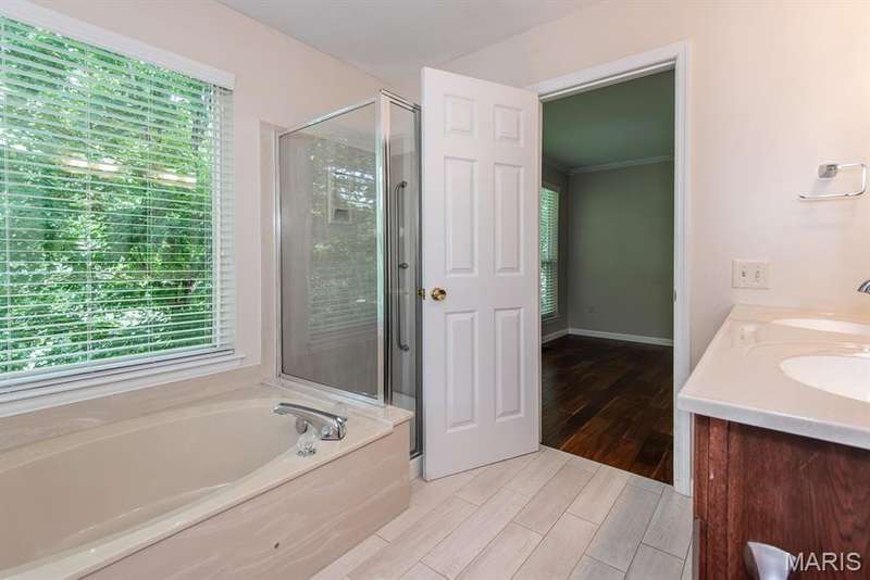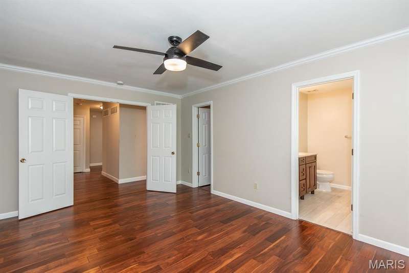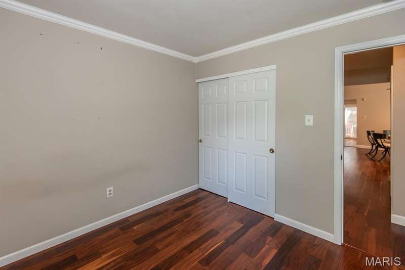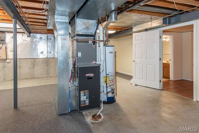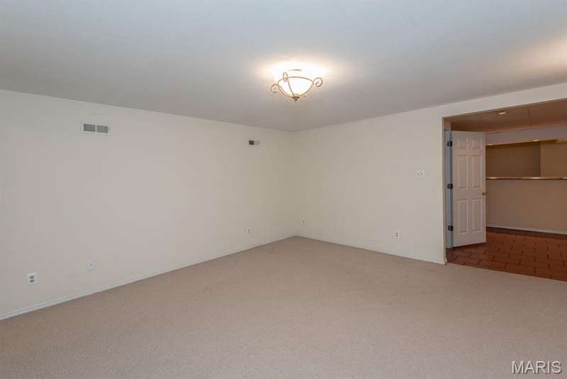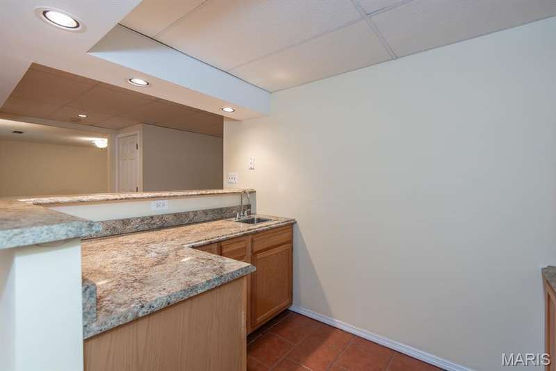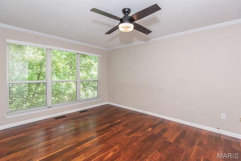 Welcome to this beautiful 3 bed (could be 4), 3 bath ranch on an oversized lot with incredible curb appeal and backing to peaceful wooded common ground! Enjoy the vaulted great room with fireplace, open to the stylishly updated kitchen (2017) featuring granite counters, subway tile backsplash, ceramic tile floors, and stainless steel appliances. Step right into the spacious 3-season room, perfect for relaxing or entertaining. Gorgeous engineered wood floors (2018) run through the main living spaces and bedrooms. The front office can easily convert to a 4th bedroom. In the hall you will find a powder room (2017) for the secondary bedrooms, while the primary suite offers a walk-in closet and overlooks the serene, fenced yard with mature trees. The renovated en-suite (2017) features dual sinks, adult-height vanity, garden tub, and separate shower. Walk-out lower level offers a rec room with wet bar, a large flex space (ideal as a 4th bedroom or family room with a walk in closet), and a full bath. Lots of storage in the unfinished portion of the basement. Additional highlights include a 3-car garage, main floor laundry, central vacuum, 6-panel doors, and a sprinkler system. New AC unit installed August (2025) Rockwood Schools, parks, and shopping nearby, this home has it all!