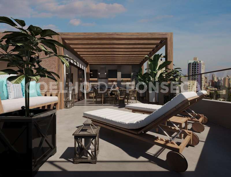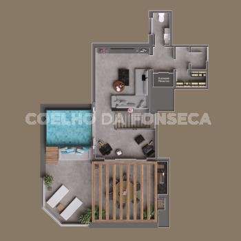 Cobertura para reforma, com estudo de interiores de José Antonio de Castro Bernardes. O projeto prevê a instalação de elevador privativo, adega e piscina. Planta com 03 suítes, sendo a master com closets e banheiros Sr. e Sra. Imagens com sugestões de reforma, decoração e ambientação.