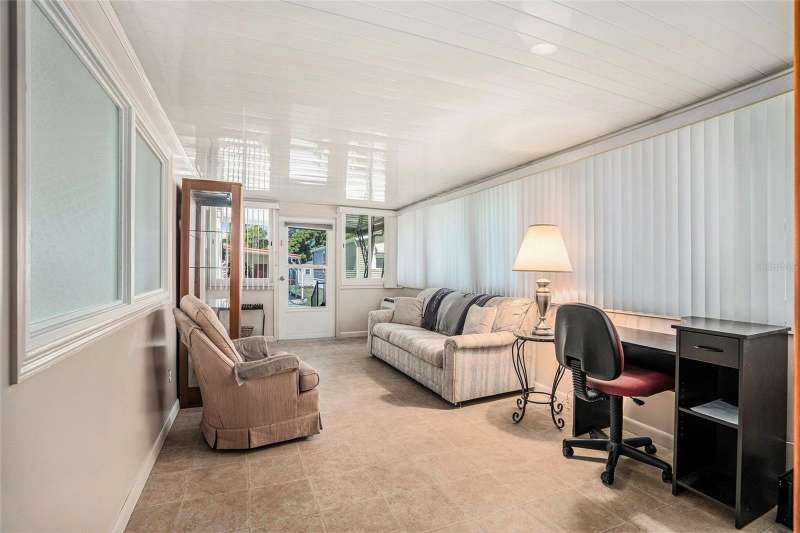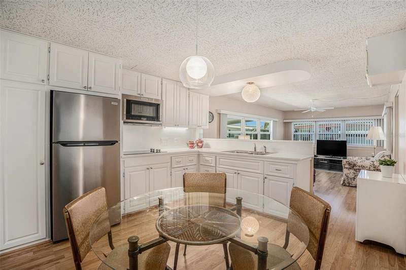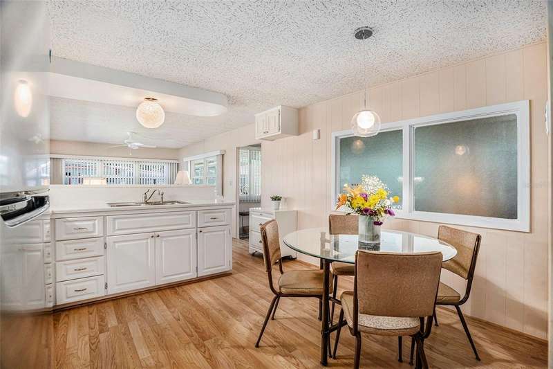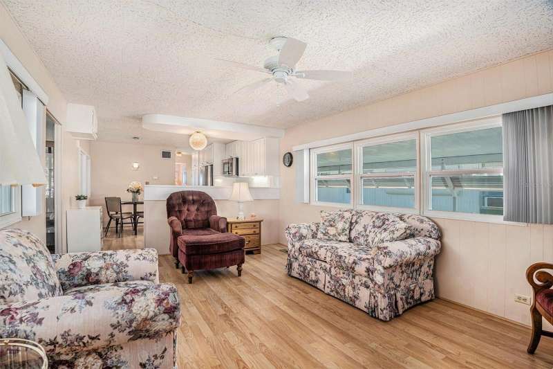 Fractional Ownership. Live in Golden Acres – Winner of the “Best of Dunedin” Award for the Sixth Consecutive Year! This beautifully updated 2 - bedroom, 2 -bathroom home has been meticulously renovated and is truly move-in ready. NO storm damage or flooding from either hurricane. Non flood zone! Step inside to a newly remodeled kitchen featuring quartz countertops, sleek cabinetry, and new appliances. Recent upgrades include a new roof (2024), all new windows, and 2 newer A/C units, offering peace of mind and comfort for years to come. The open layout flows seamlessly into bright living spaces, while a spacious carport accommodates two vehicles. Just steps from the Clubhouse, this home combines modern updates with unbeatable convenience. Golden Acres is a highly desirable, resident-owned 55+ community spanning nearly 24 acres in the heart of Dunedin. Perfectly located off Main Street, less than a mile from Downtown Dunedin, and just minutes to the Gulf beaches, shopping, and dining. This award-winning community features a heated pool, shuffleboard courts, an active clubhouse with year-round activities, and beautifully maintained grounds. The cooperative ownership structure means each member owns an equal 1/224 share of the park. The purchase price includes the share ($23,800), and the low monthly fee of just $210 covers water, sewer, trash, lawn maintenance, and use of all amenities. All furnishings, washer/dryer and a swing in the back yard are all included! Experience comfort, community, and coastal living at its finest in Golden Acres!