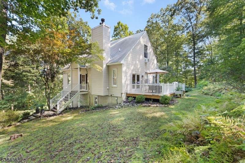 This stunning custom home is well over 2,000 sq ft(per tax records) and is located in desirable Washington Twp Morris Co and feeds to sought after Long Valley and West Morris schools. This home sits on just shy of 5 acres of serene, private property perfect for many uses.The versatile floor plan features high ceilings on every level, large bedrooms, oversized great room for living and dining space with gorgeous WB insert stone fireplace, and additional living space with updated ground floor family room. The kitchen has been updated with beautiful cherry cabinets, new counters and new microwave.There is so much storage space throughout this home incld a large laundry/ workroom that is plumbed for another bath.There are views from every window and decks off of the bedrooms and the LVR/Kit to enjoy this wonderful property. The primary BR is a private sanctuary sitting on the top floor with its own bath w/ separate tub and shower, sitting area and private deck. The 3rd BR is currently being used as a DR but easily can be changed back. There are upgrades throughout this home that has been meticulously cared for. Outdoors includes a peaceful patio, newer deck, a koi pond, and a circular drive for all of the company you will get that will want to enjoy your space.This unique property offers privacy and comfort and just minutes to town. Worth the time to see this great home. Shed is as is.