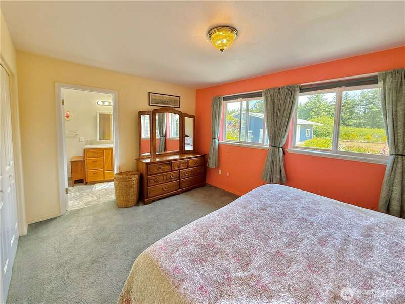 2600 SF rambler on 2.3 acres with 1600 SF shop. The interior of the home boasts a 1100 SF great room & sunken living room w/ hardwood floors & wood stove. Kitchen w/ ample cabinetry & bar seating connects to a dining area with sliding glass door leading to rear deck. Primary bedroom has en suite. One of the other bedrooms adjoins a full bath. Rear yard has greenhouse, gazebo, & firepit. Other features include heat pump with AC, rounded walls, wrap-around decking, & marble entry. The detached shop has water & plumbing, minisplit for heat/AC, & 200 amp electric service w/ welder & RV plugs. Private setting with quick access to Hwy 101 & less than 10 mins from downtown Sequim. Need more land? A 2.47-acre parcel is available next door.