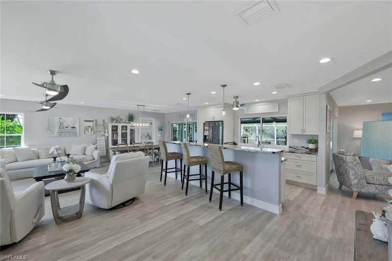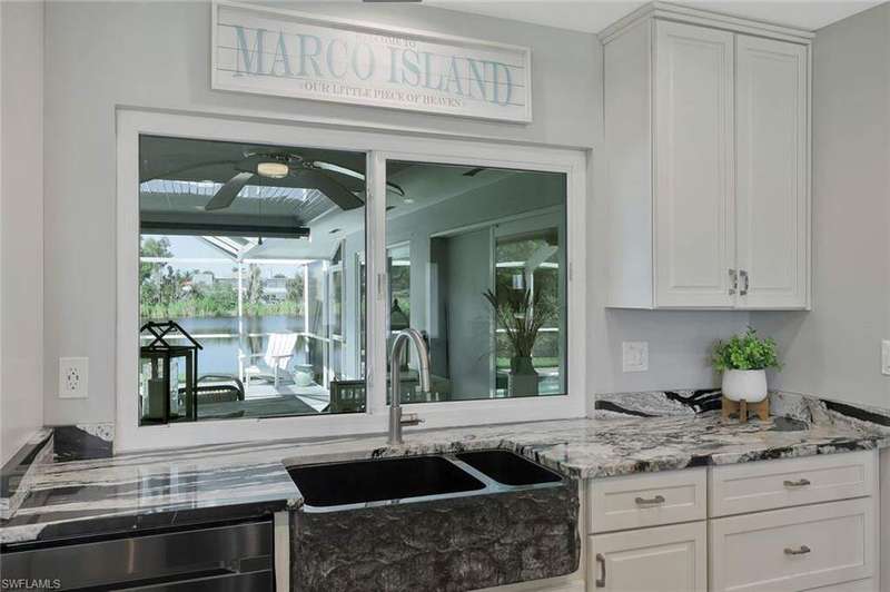 From the moment you step through the door, you'll feel it, this is home! Light, bright, and beautifully updated, this 3-bedroom, 2-bath coastal retreat offers the perfect blend of comfort and modern Marco Island living. Virtually every part of the home has been redone or upgraded - from the kitchen and master bath to the roof, floors, impact glass windows and sliders, pool deck, and new pool heater. The home also features all-new plumbing beneath the house, including both water and sewer lines, for total peace of mind. Enjoy two spacious living areas with new luxury vinyl plank flooring, an open kitchen with granite countertops and a stone farmhouse sink, and breathtaking lake views from nearly every room. Step into your backyard oasis to watch the sunset, listen to the birds, and take in the beauty of Florida wildlife. The .33-acre lot offers room to garden, play, or park your boat or RV. Ideally located near Veterans Park and Marco Island's famous farmers market, this move-in-ready home offers proven rental income and a lifestyle you'll love! Listing Agent is the owner