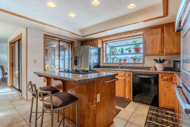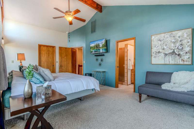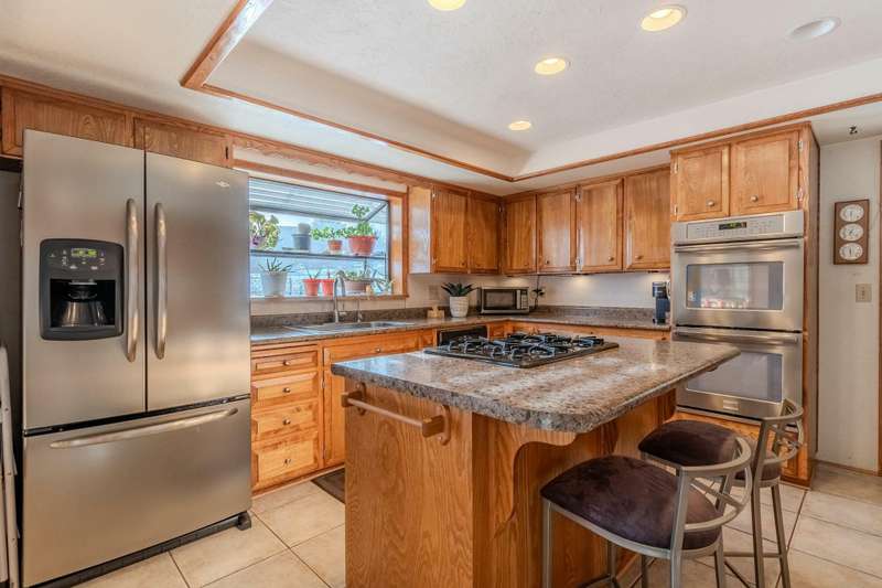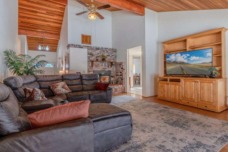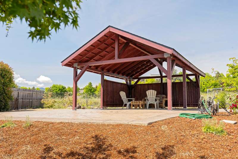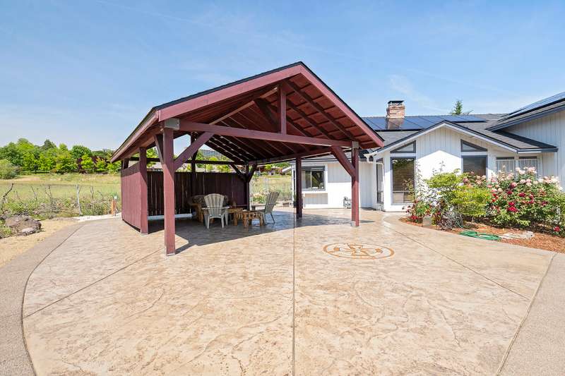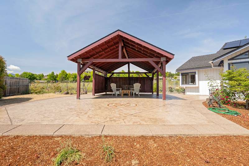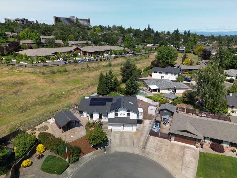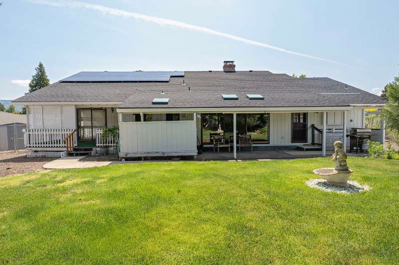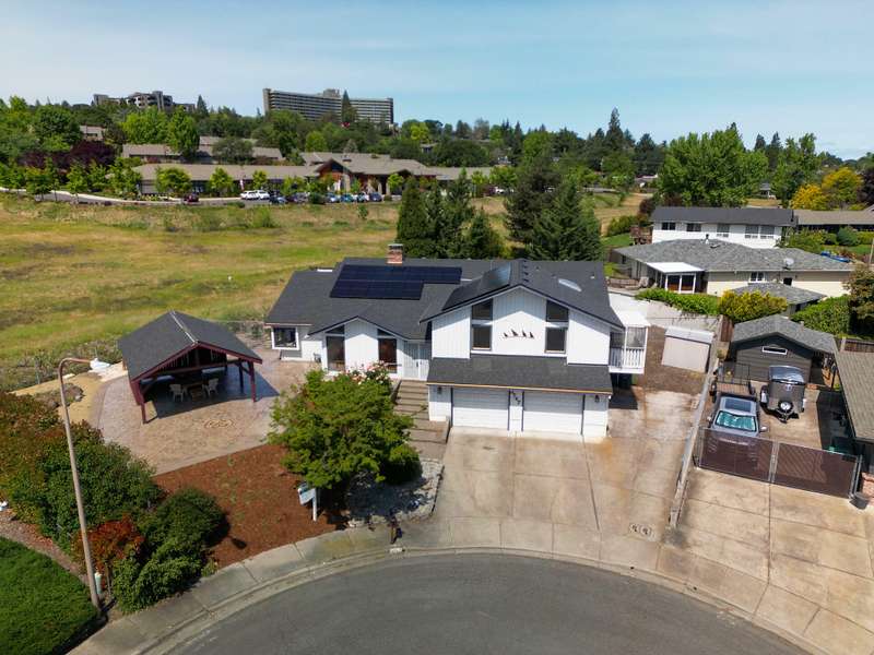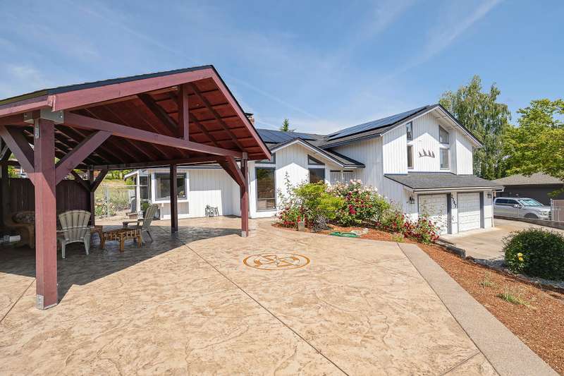 Nestled in an established East Medford neighborhood, this 4 bedroom, 3 ½ bath w/2457 sq. feet, offering solar panels (which will be paid thru closing) will keep your electric bill approx. between $14.00-$20.00/month! With two primary bedrooms w/ensuite baths (one on the main level), this could easily be a multi-generational set up. Other features include living room w/ a wood burning fireplace w/granite surround, separate family room w/vaulted t&g ceiling w/pellet stove, slider off the kitchen nook to the atrium, fourth bedroom is very private and located on the upper level, laundry room w/half bath that leads out to the hot tub. Large stained & stamped patio-great for entertaining w/gazebo, water, electric and stubbed out for a gas fire pit, newer roof and RV parking. Situated on a cul-de-sac near St. Mary's, Asante, medical services and golf...Welcome Home!