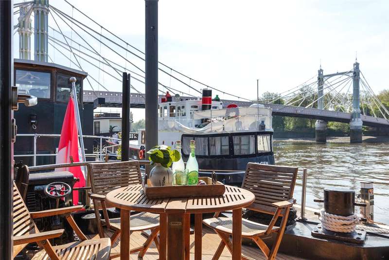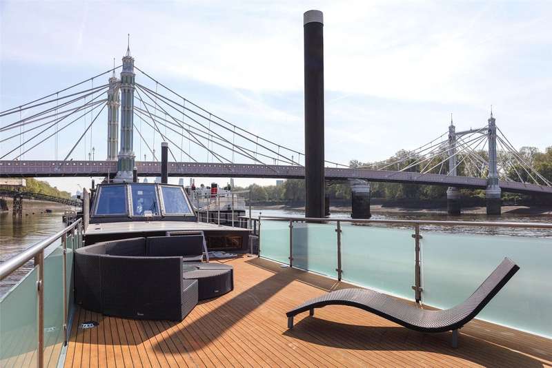 A Unique 4 bedroom, 4 bathroom 34m Riverboat moored at and offered with a 10 year licence for £2,500,000 or a 1 year licence for £1,500,000, based at Cadogan Pier, on the famous Chelsea Embankment by the stunning Albert Bridge.