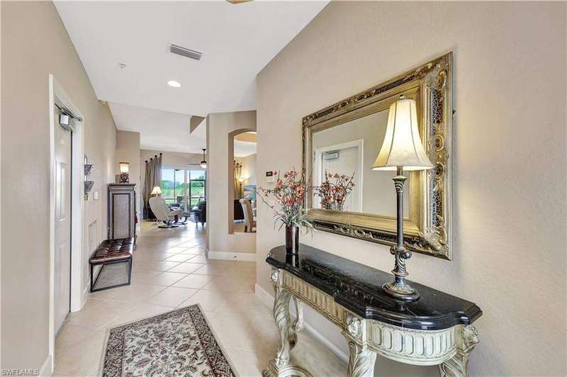 Discover all the comforts of a well-appointed home in this 3-bedroom, 3-bath Coach Home complete with high-end furnishings and thoughtful finishes throughout. Step inside to find upgrades including elegant plantation shutters, tray ceilings, a spacious open floor plan, and a kitchen designed for entertainment and family gatherings. The Primary Suite is a true escape featuring a step-in shower w/ separate tub, private water closet, dual sinks, and an enormous walk-in closet. The inviting screened lanai offers stunning views of the golf course and pond and is ideal for morning coffee or quiet afternoons. The Quarry is an amenity-rich, gated lakefront community with over 500 acres of navigable lakes to enjoy boating and fishing activities. A newly renovated Beach Club features 2 restaurant venues including poolside food and drink service, and al fresco dining overlooking Stone Lake. The Wellness Center offers tennis, pickleball, bocce, exercise studios and meeting rooms along with a full-time activities director to keep you engaged. Private golf membership is available making The Quarry a perfect fit for everyone. Embrace the lifestyle you've always wanted in this vibrant community.