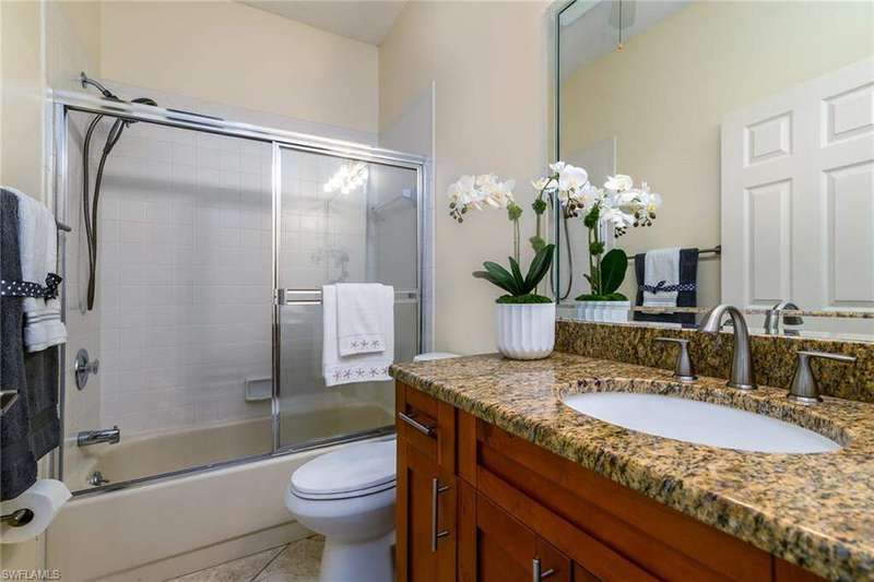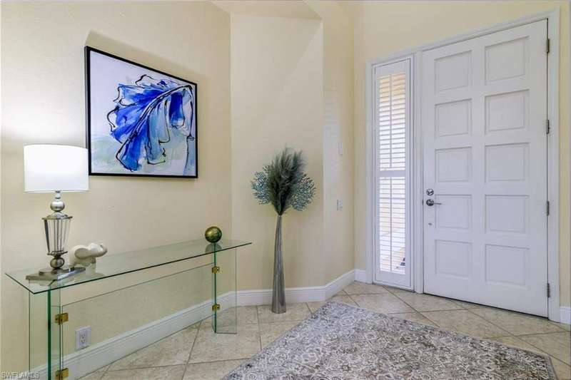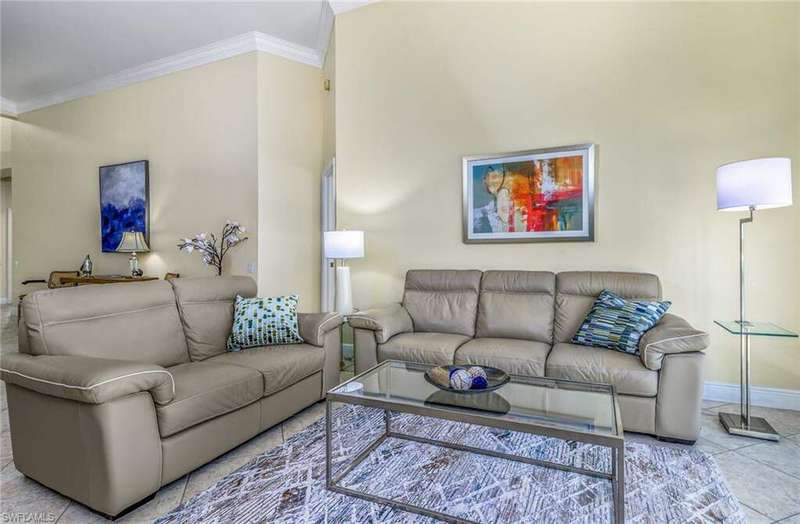 Beautiful Golf Course Setting in a Boutique Community Located within Villa Verona in The Vineyards-an intimate boutique community of just 34 homes-this bright former model residence offers a rare blend of privacy, comfort, and convenience. Featuring 2 bedrooms plus a versatile flex space ideal for a home office, den, or additional guest area, this home is offered turnkey furnished with contemporary decor for effortless move-in living. Enjoy serene landscape and golf course views, stunning sunsets, and a private heated pool from the screened lanai. Inside, soaring 12-foot cathedral ceilings and a wide-open floor plan create spacious, light-filled living areas that live larger than the square footage suggests. Abundant storage throughout adds practical everyday convenience. Whole-home storm shutters add peace of mind. Thoughtful updates include a fully equipped kitchen, modernized bathrooms, and Florida tile flooring. Original owners-no storm damage or flooding ever. Situated just minutes from Crossroads Market with dining, services, Publix, Walgreens, salons, and more, plus Physicians Regional Hospital right next door. A short drive brings you to public golf, Naples' white-sand beaches, Vineyards Community Park, top-rated schools, shopping, dining, and everyday conveniences. Immediate golf memberships are available at The Vineyards, which includes access to a 36-hole PGA Championship golf club, tennis, pickleball, bocce, a fitness center, and spa with a lap pool, social events, and more. Lifestyle memberships are also available. Perfect for full-time or seasonal living-an exceptional opportunity in one of Naples' most sought-after locations.