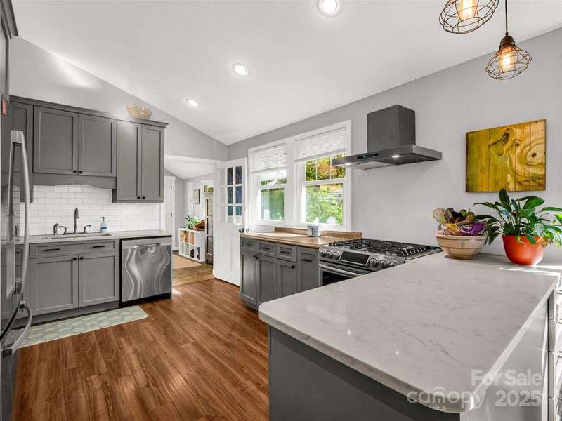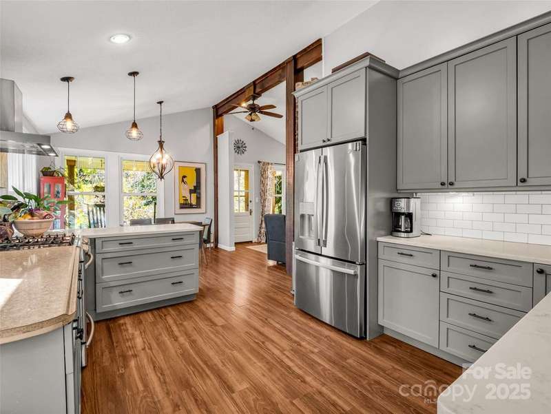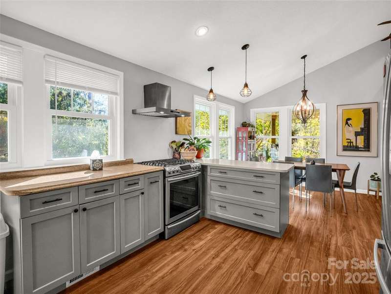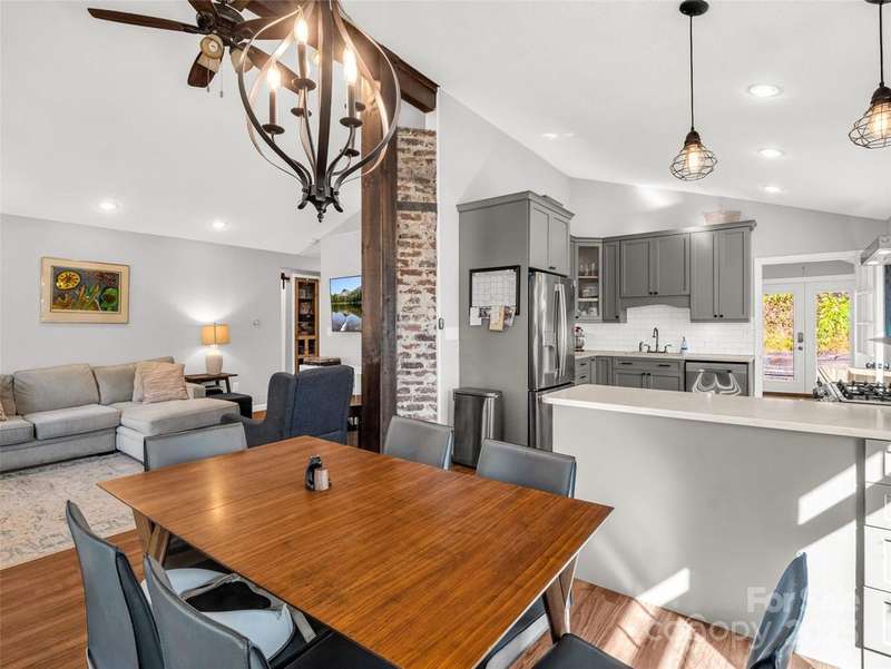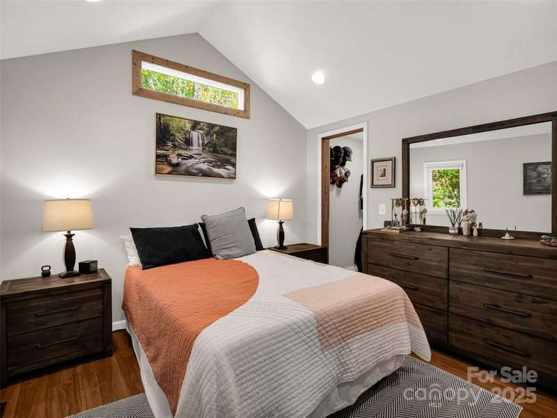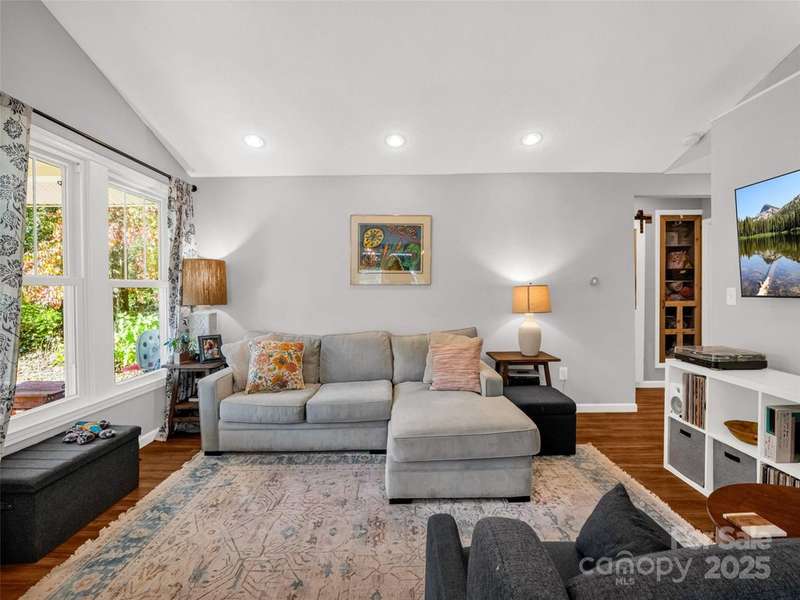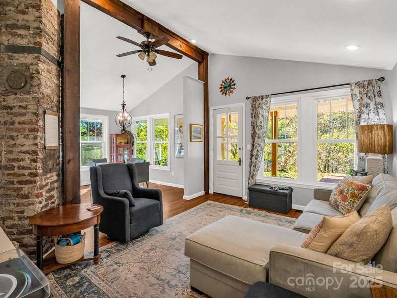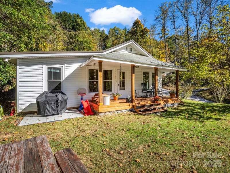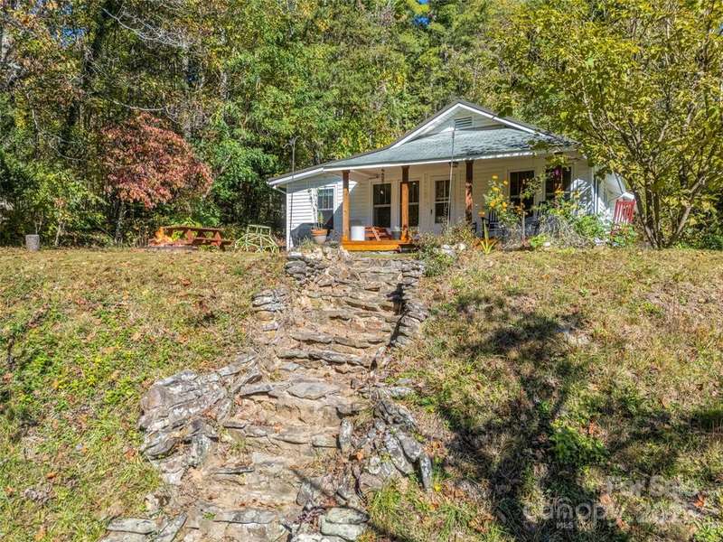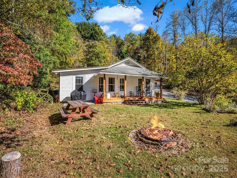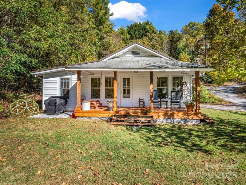 Charming Arts and Crafts style home convenient to all Asheville has to offer! Located just 3 miiles from Blue Ridge Parkway, less than 2 miles to groceries and dining, and convenient to downtown Asheville. Vaulted ceilings and lots of windows gives a bright and airy feel to enjoy cooking, entertaining or just relaxing! Primary ensuite with jet tub. Two additional bedrooms, updated guest bathroom, large mud/laundry room all on one level. Enjoy the mountain view from your covered front porch or an evening relaxing at the fire pit. Storage shed to house all of your outdoor toys situated on 5.3 acres.