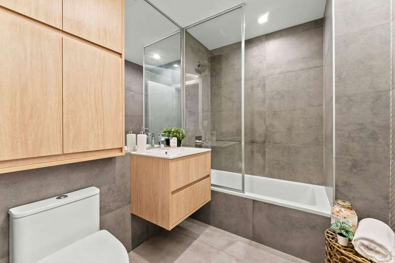 The primary bedroom offers serene garden views, an oversized closet, and an en-suite bath complete with a sleek shower. The second bedroom enjoys convenient access to a full bathroom located just off the shared hallway.
