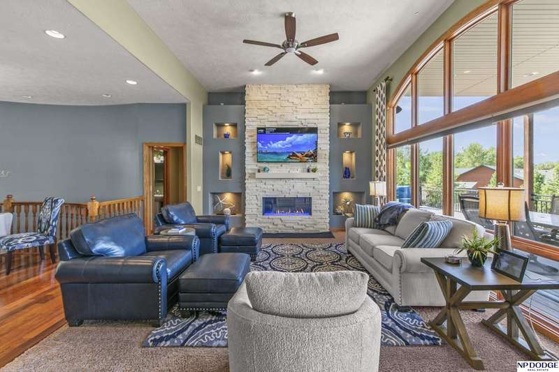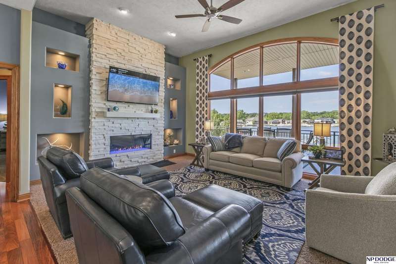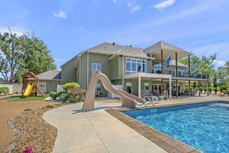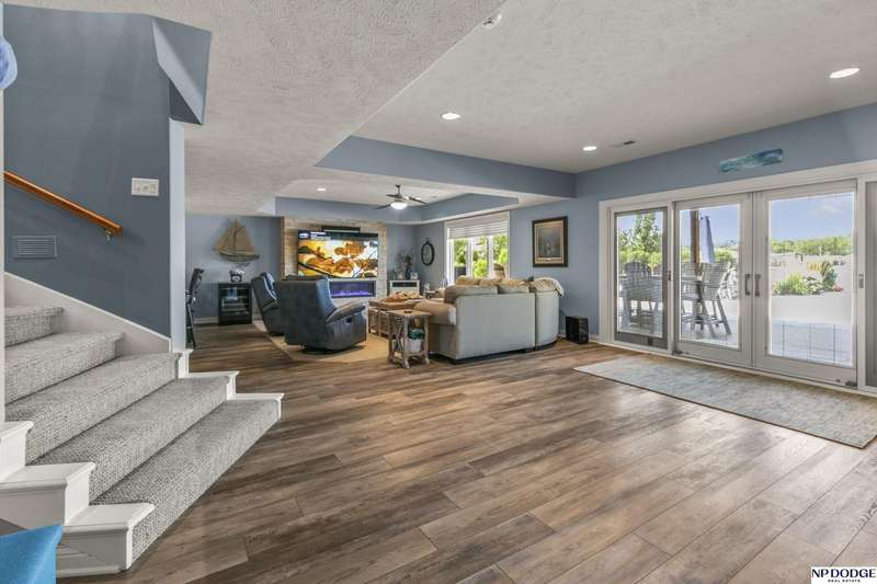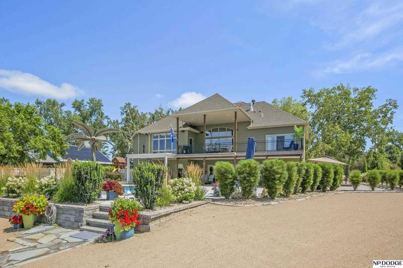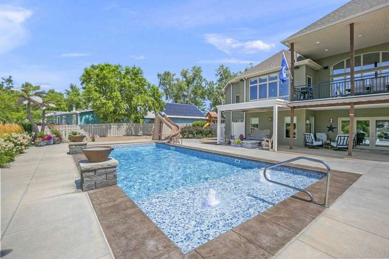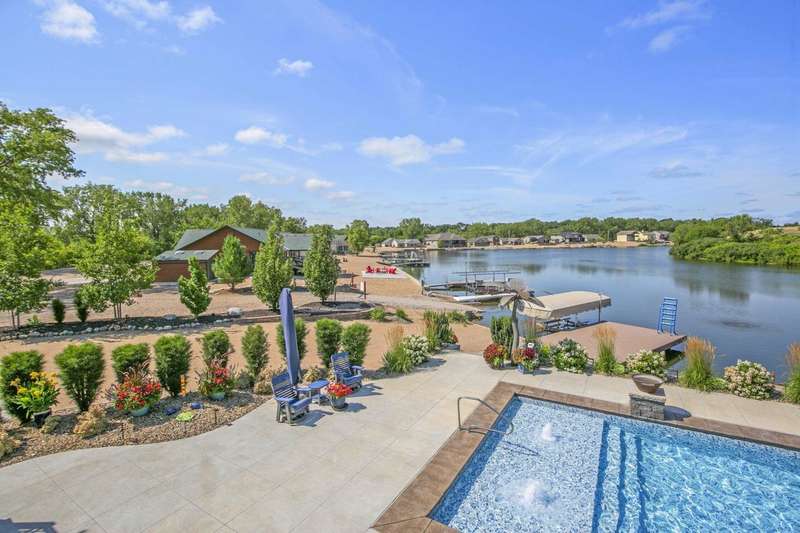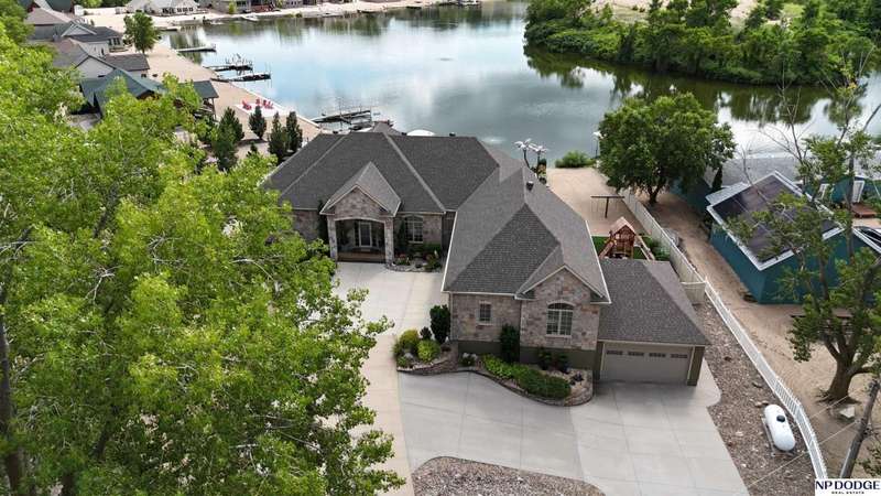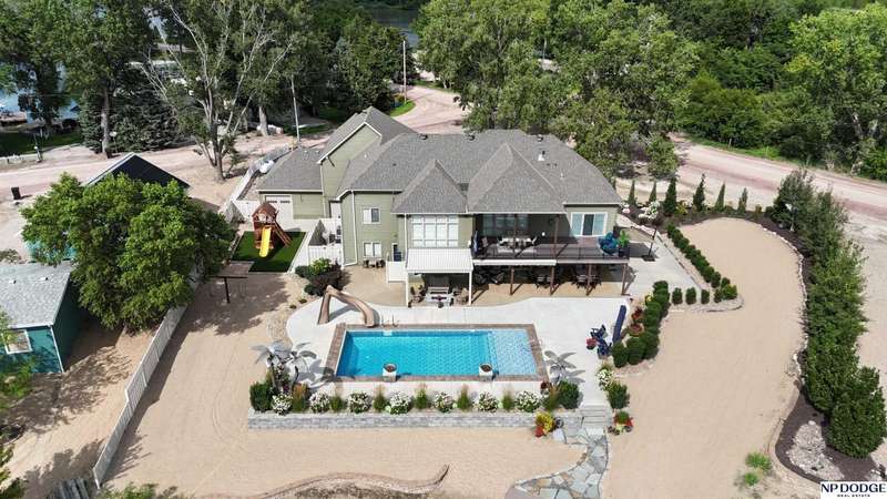 Over 4,700 sq ft of updated luxury on sought-after Woodcliff Lake, across from the Platte River. This home is made for lake life with a 16x32 saltwater pool, automatic pergola, fire pit, large deck, and outdoor shower. Inside offers 5 beds, 4 baths, 2 full kitchens, and 2 spacious great rooms-ideal for entertaining or multigenerational living. Rich hardwood floors span the main level, with new carpet and LVP throughout. The kitchen features cherrywood cabinets, double ovens, newer appliances, and a Kohler generator. With 6 garage stalls, there's room for all your lake toys, vehicles, and hobbies. Whether hosting or relaxing by the pool, this home has it all. AMA.
