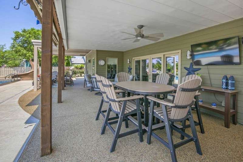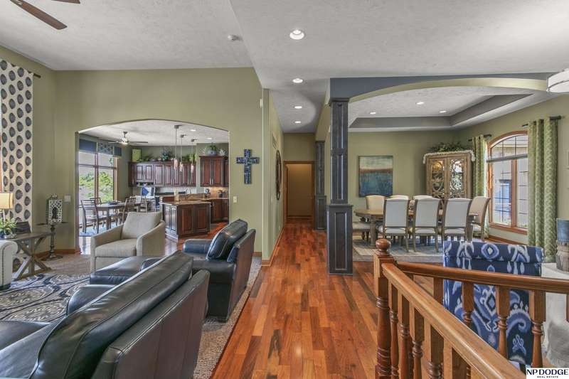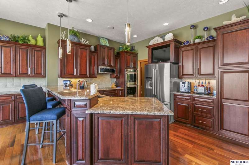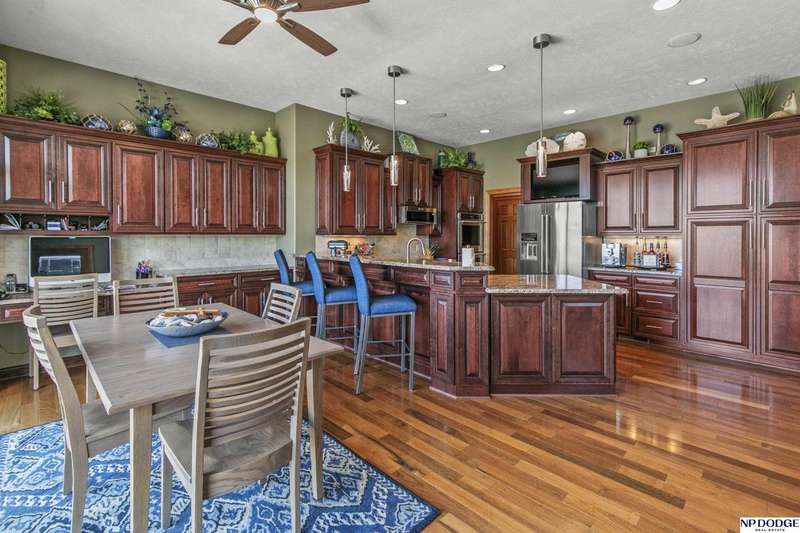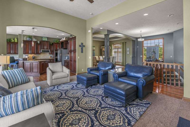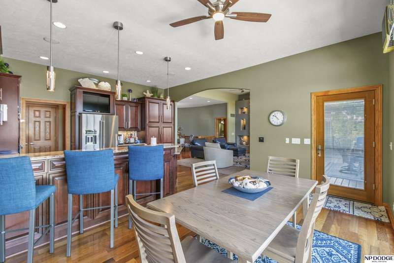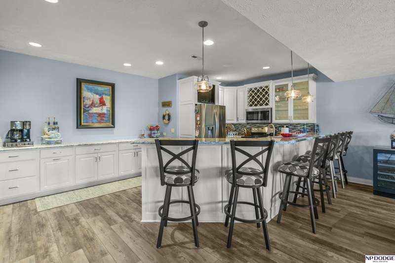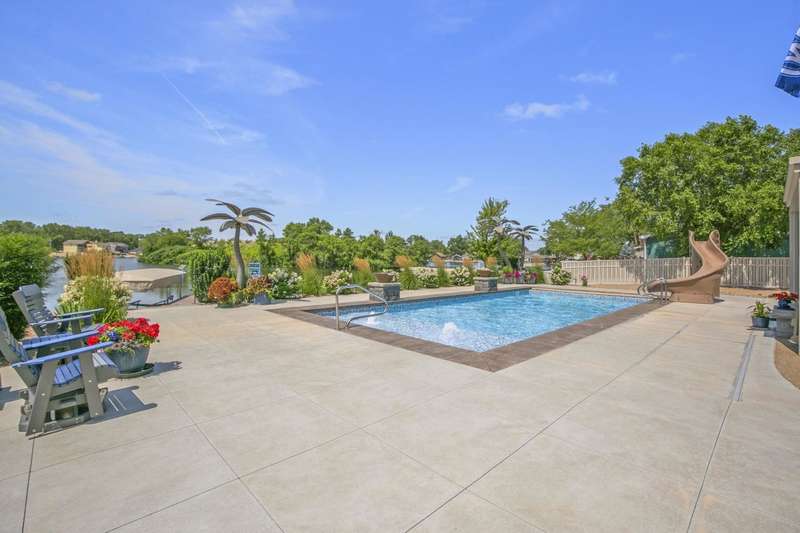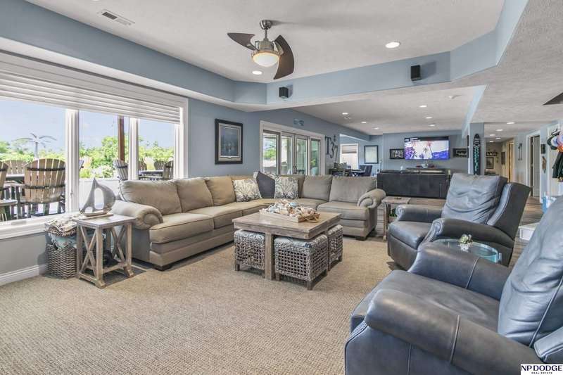 Over 4,700 sq ft of updated luxury on sought-after Woodcliff Lake, across from the Platte River. This home is made for lake life with a 16x32 saltwater pool, automatic pergola, fire pit, large deck, and outdoor shower. Inside offers 5 beds, 4 baths, 2 full kitchens, and 2 spacious great rooms-ideal for entertaining or multigenerational living. Rich hardwood floors span the main level, with new carpet and LVP throughout. The kitchen features cherrywood cabinets, double ovens, newer appliances, and a Kohler generator. With 6 garage stalls, there's room for all your lake toys, vehicles, and hobbies. Whether hosting or relaxing by the pool, this home has it all. AMA.