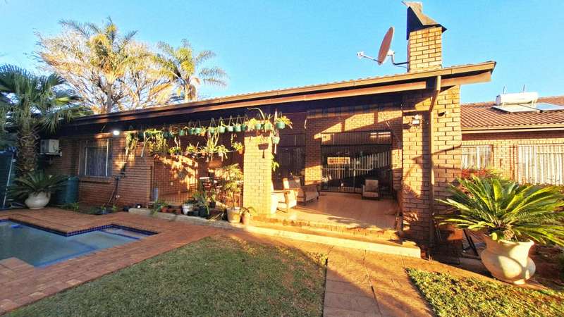 NEED SPACIOUS HOUSE WITH LARGE GARDEN - THIS IS FOR YOU 4 Bedroom single level home with large entertainment area with pool BOOMED AREA Floor area 418m2 on 1377m2 Stand This 3-bedroom contemporary home is an entertainer?ÇÖs dream and offers the ultimate convenience family living. This home is fitted with great finishes, lighting, and design, bringing the luxurious experience from the front to the back door. Open plan kitchen, double volume living area that includes lounge/dining area opening onto outside entertainment and patio area with excellent view on the garden and pool. Other accommodation include: Main bedroom, fitted with laminated flooring, aircon, en-suite bathroom (corner bath/basin/toilet) 3x North facing bedrooms, all fitted with carpets Guest bathroom (Bath, shower, basin with sperate toilet service 3 bedrooms Laundry with ample cupboard space & separate scullery Small study Antique stove Gas hob /Electric double eye level oven Tiled entertainment area with built in seater/basin/braai/bar and separate kitchenette with basin Large Pool Water tanks Large garden play area 2 garages with drive through roller door with lots of parking space Aircon/ceiling fan?ÇÖs Inverter The home is situated close to Hendrik Verwoerd Avenue and Old Johannesburg road, easy access to excellent schools. Close to Mall@Reds, Raslouw Lifestyle centre and Centurion Mall Shopping centre. Easy access to the N1,N14 and R21 highways, proximity to Gautrain station and a quick drive to OR Tambo International Airport, makes travelling for business or pleasure a hassle -free experience. Call now to arrange an appointment to view!