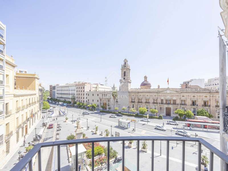 Exclusive 189 m² penthouse with 4 double bedrooms, a spacious dining room with 2 terraces, one of 33 m and the other of 25 m, in the most coveted neighbourhood of Valencia: Sant Francesc Lucas Fox presents this exclusive luxury property located in the prestigious Sant Francesc neighbourhood , one of the most desirable and iconic areas of Valencia's historic centre . This elegant property is located in a stately building and offers a unique combination of spaciousness, contemporary comfort, and a privileged location, ideal for those seeking quality of life in the heart of the city. With a constructed area of 189 m², this penthouse stands out for its excellent layout and orientation, with two strategically located terraces: one measuring 33 square meters in the dining room living room and kitchen area, and the second with direct access to the master bedroom. The property features four spacious double bedrooms, including a master suite with a private bathroom and a large dressing area with direct access to a private terrace, perfect for enjoying an intimate and relaxing space with natural light throughout the day. The day area consists of a large open-plan living-dining room , bathed in natural light and directly connected to an impressive 33 m² east-facing terrace. This terrace, which also leads to the kitchen and one of the bedrooms, is ideal for enjoying pleasant breakfasts in the sun, al fresco meals, or unforgettable evenings in a sophisticated urban setting. The property also includes a separate kitchen with all appliances, open to a space with direct access to the terrace. A second full bathroom and high-quality finishes add a touch of distinction to every room. Thanks to its height (9th floor) and east-west orientation, it enjoys exceptional cross-ventilation and natural light in every room. Thanks to its excellent cross-orientation and large windows, the property enjoys exceptional light throughout the day. Its generous dimensions and layout allow for multiple customization options, making it an ideal option both as a permanent residence and as an investment in one of the city's most sought-after areas . Cherry wood parquet floor , all windows with double glazing, gas radiators in all rooms as well as central air conditioning, complete a unique penthouse property with its spacious rooms and two terraces.