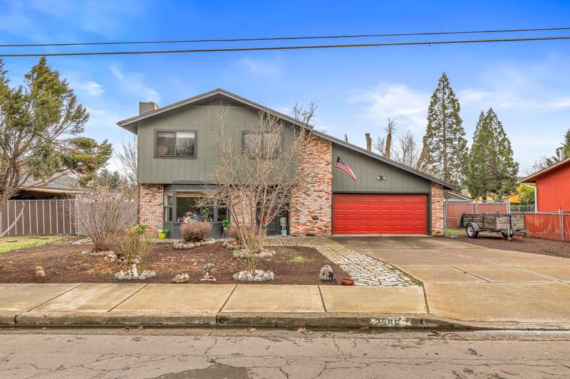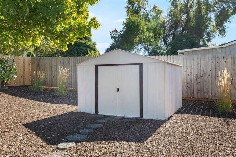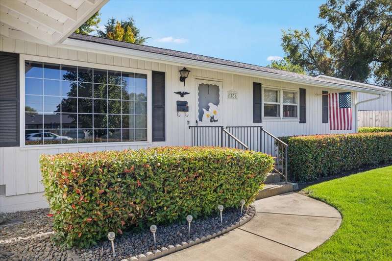Amazing location and absolutely fabulous in every way. This immaculate 3-bedroom, 2-bath home is a true showpiece inside and out. Beautifully landscaped front yard, two-car garage, and huge RV parking with extended concrete pad that can fit even a large bus. Exterior paint is stunning, roof is newer, and the windows are upgraded vinyl double-pane. Inside features real hardwood entry, perfect carpet, and pristine interior paint. The kitchen offers painted cabinets, bay window overlooking a peaceful backyard, and plenty of storage. Separate living and family rooms, tile flooring in bathrooms, and a full tile walk-in shower. Large covered patio ideal for outdoor entertaining, fenced backyard with mature landscaping, and a storage shed. Laundry room with tile floors and extra cabinetry. Garage includes workbench area and overhead storage. Forced heating and air throughout. A truly gorgeous home in move-in condition.