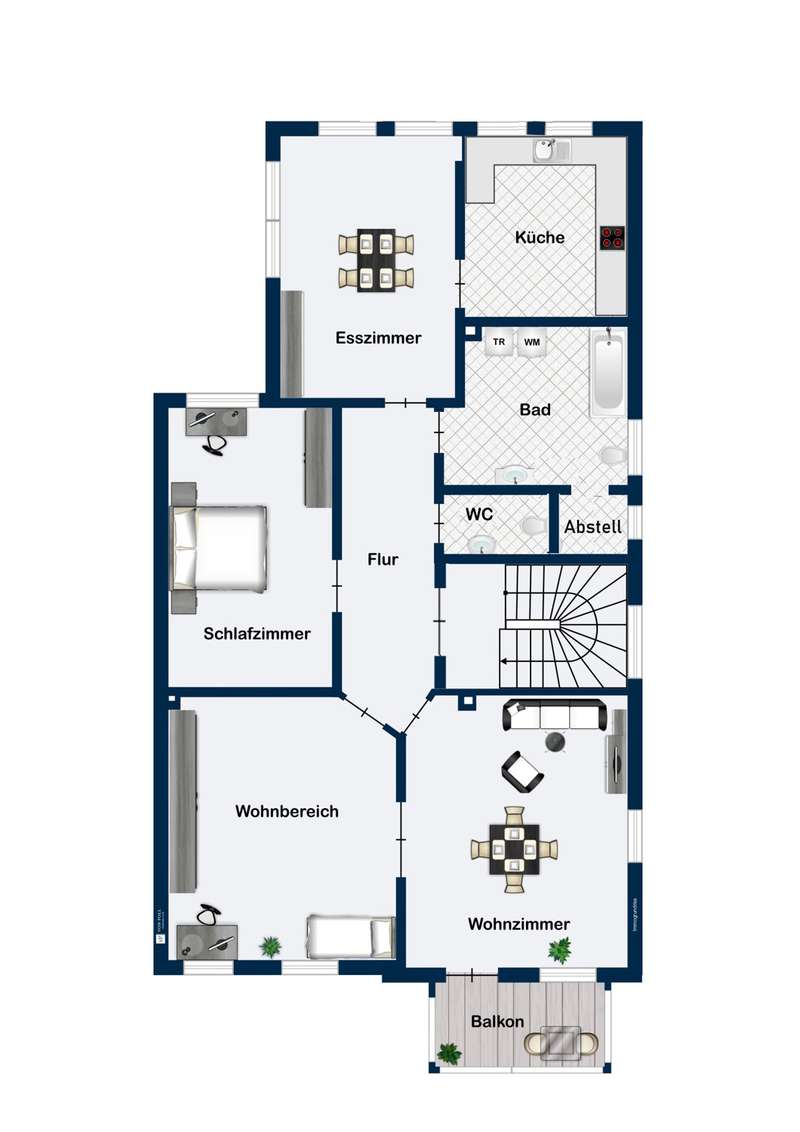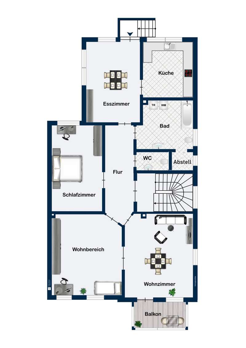 This impressive apartment building, built in 1895, offers a rare opportunity to acquire a historic building with a listed façade. The property is also centrally located in the eastern ring road area. The building has three floors and offers a total living space of approx. 470 m². On each of the first three floors there is an apartment with approx. 130 m² of living space. The space on offer is supplemented by an attic apartment with approx. 80 m² of living space. Some special original features have been preserved, such as stucco ceilings, historic stoves and original doors, giving the house a special charm. A special highlight is the ingrown garden behind the house. It offers space for social gatherings or quiet hours outdoors. Three apartments are currently rented, the apartment on the first floor is vacant. It can be occupied or rented out after renovation. Further information, including rental income, is available on request.
