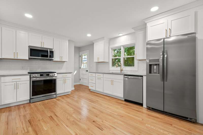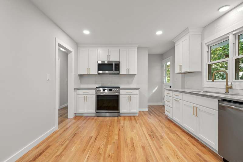 Expertly remodeled, this 3-bedroom, 1-bath ranch home blends modern comfort with timeless style. Inside, you'll find gleaming oak floors, a cozy living room with a fireplace and custom built-ins, and a stunning kitchen with quartzite countertops and a brand-new appliance package. The oversized bathroom features a double vanity and a tile-surround tub/shower, while brand-new windows and an architectural roof add lasting value. A new high-efficiency gas furnace with central air ensures year-round comfort, and city water and sewer provide convenience. The home also offers a large, easy-to-finish unfinished basement, a super-convenient walk-up attic perfect for storage, and even a hidden future office or safe room ready to be finished above the garage on the second floor. Set on a gorgeous .65-acre lot in the desirable Ridge Road school district, with an attached one-car garage and a covered rear porch, this home is truly move-in ready and full of potential. Agent is owner of property