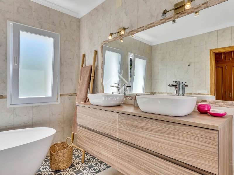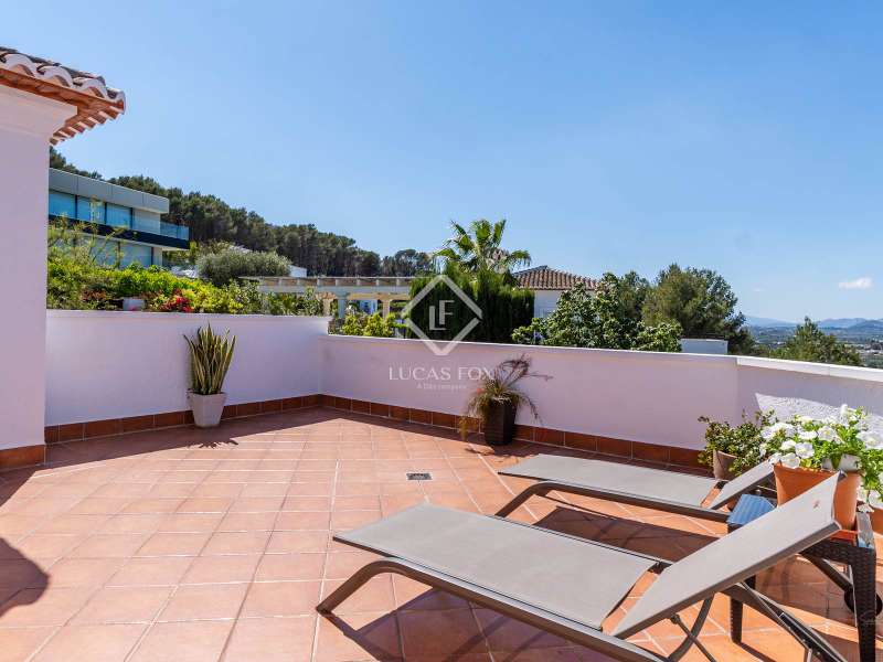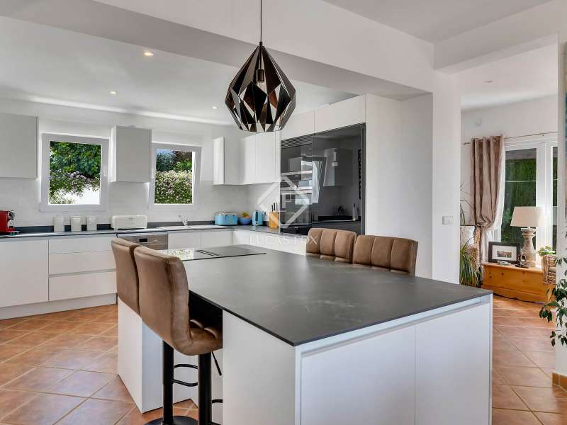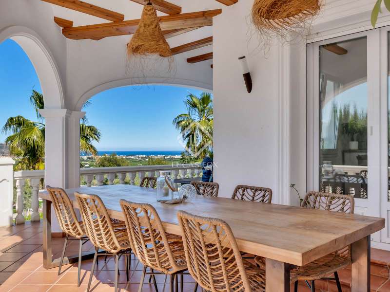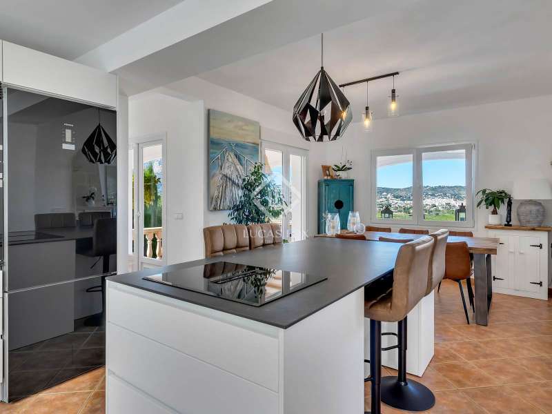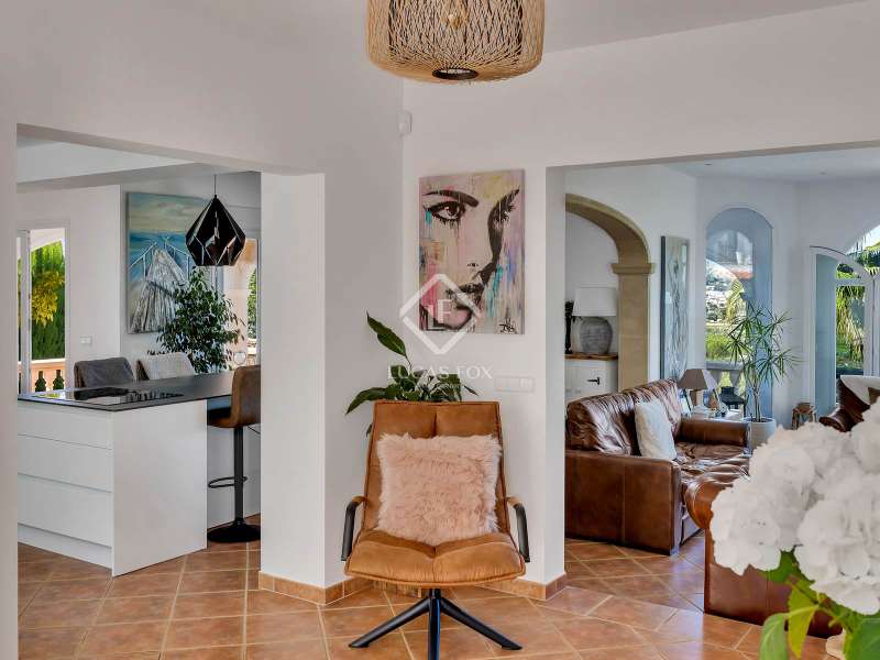 Set in the sought-after Piver neighbourhood of Javea, this beautifully presented 4-bedroom villa blends timeless Mediterranean architecture with refined neoclassical style, offering panoramic views of the Mediterranean Sea, Cuesta de San Antonio, the historic Old Town, and the majestic Montgó Mountain. Exceptionally well maintained, the villa is surrounded by sun-drenched terraces on all sides, inviting natural light into every corner of the home. Design details such as beam and barrel ceilings, a wrap-around naya terrace, and premium Roca and Porcelanosa finishings add both character and quality to the space. The villa features a bright and airy open-plan living area, perfect for modern family life and entertaining. All four spacious bedrooms have independent external access, offering both privacy and flexibility for guests or multigenerational living. A separate office and utility room further enhance the functionality of the home. Built for year-round comfort, the property is equipped with underfloor heating powered by mains gas, mains drainage, and solar energy, ensuring both sustainability and efficiency. Positioned just minutes from the Arenal Beach, international and local schools, shops, and healthcare services, this villa offers the best of coastal living in one of Javea’s most convenient and peaceful residential areas.