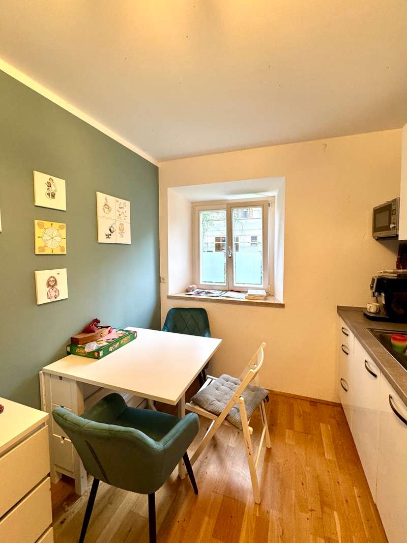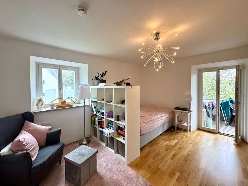 Welcome to a unique 2-room apartment that combines modern living comfort with an idyllic retreat! This exclusive apartment is located on the mezzanine floor of an apartment building that was completely renovated in 2008 and is situated in the sought-after residential area "Grüne Mitte" in Regensburg. The quiet yet central location offers both nature and proximity to the city center - a rare gem! The residential area: Grüne Mitte, Regensburg: Grüne Mitte is one of the most sought-after residential areas in Regensburg. It impresses with its combination of natural surroundings and excellent infrastructure. With numerous parks, green spaces and a quiet residential environment, this location offers a high quality of life for couples, young families and professionals. Despite the green surroundings, the city center can be reached in just a few minutes, making Grüne Mitte one of the most attractive residential areas in the city. The highlight: your own garden with apple tree! An absolute highlight of this apartment is the spacious balcony with a view of your own garden area. Here you not only have an idyllic green space right on your doorstep, but also your own apple tree, which promises a rich harvest every year. The perfect place for relaxing summer evenings or your own private vegetable garden. High-quality furnishings and well thought-out room layout: The apartment impresses with its upscale furnishings and loving details. The high-quality parquet flooring gives the rooms a warm and inviting atmosphere. Upon entering the apartment, you are greeted by a bright hallway that offers space for a small checkroom area. The spacious kitchen offers enough space for a fitted kitchen and a cozy dining area. The large living room impresses with numerous windows that flood the room with light and direct access to the balcony. Here you can make your living dreams come true - from a cosy TV corner to an individual living and dining area. The bedroom is also generously proportioned and offers enough space for a large bed and a closet. The modern bathroom with daylight window is stylishly tiled and has a shower and washbasin - a place to feel good. Energy efficiency and ancillary costs: Thanks to the comprehensive core refurbishment and connection to district heating, the building is characterized by outstanding energy efficiency (energy class B). This not only ensures low heating costs, but also environmentally friendly energy use. Additional amenities: In addition to the apartment, the offer includes a practical cellar compartment that provides additional storage space. There is also a communal laundry room. This apartment is a real gem in one of Regensburg's best locations. With the unique garden area including its own apple tree, the large balcony and the high-quality furnishings, it offers everything your heart desires. Don't miss out on this opportunity and arrange a viewing today! We look forward to your inquiry.