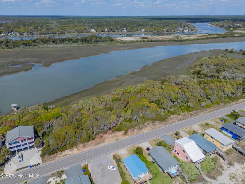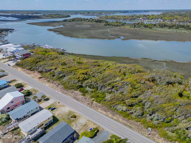 Stunning second row building lot with 60 feet of width on scenic Davis Creek with navigable water and unobstructed views across the street overlooking ocean front Oak Island parking lot. Beautiful maritime forest vegetation and rolling topography.