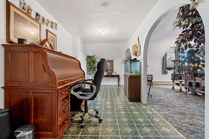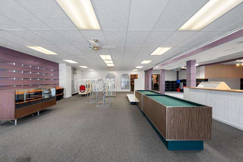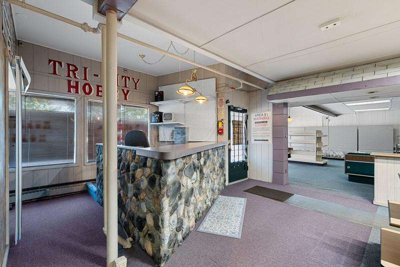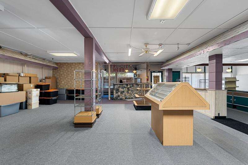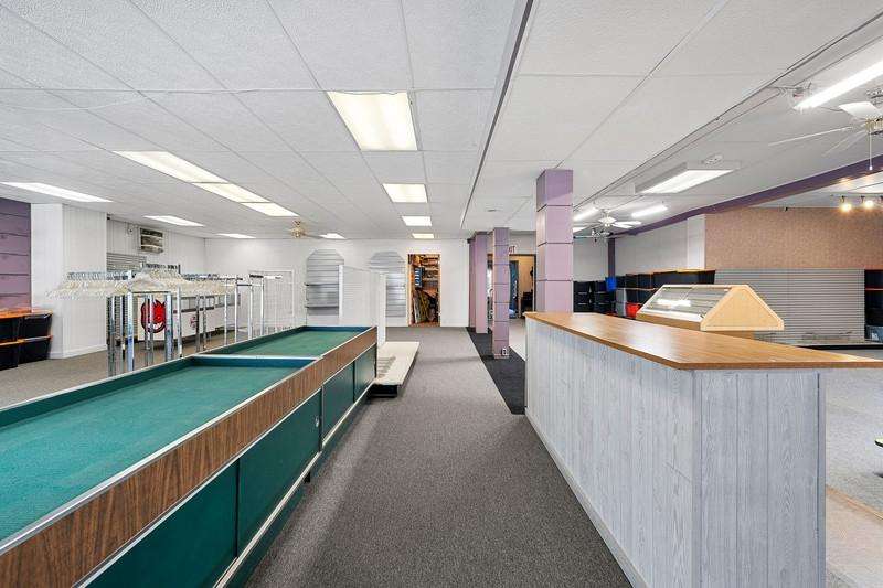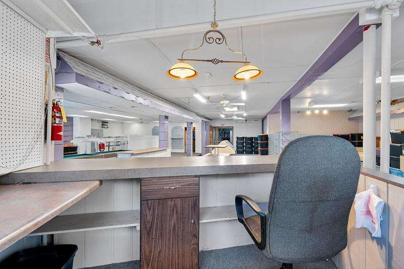 Large 2164 sq. ft retail space with access to full basement for additional storage or work space. The upper level 2128 sq. ft. is used as living space and utilizes a laundry area and bath and a rec room with a bar on the first level. The living area offers 2 large bedrooms and 2 baths. Primary bedroom has a huge walk in closet, very spacious living room and kitchen/dining area. 24 X 38 garage behind the building with alley access. Living space accessible from the back of the building as well as from inside. Siding and roofing were completed in 2015. Newer hot water heating system. Main level can be divided into multiple retail or perhaps offices or apartments?