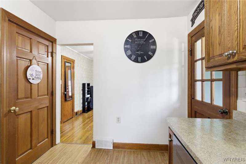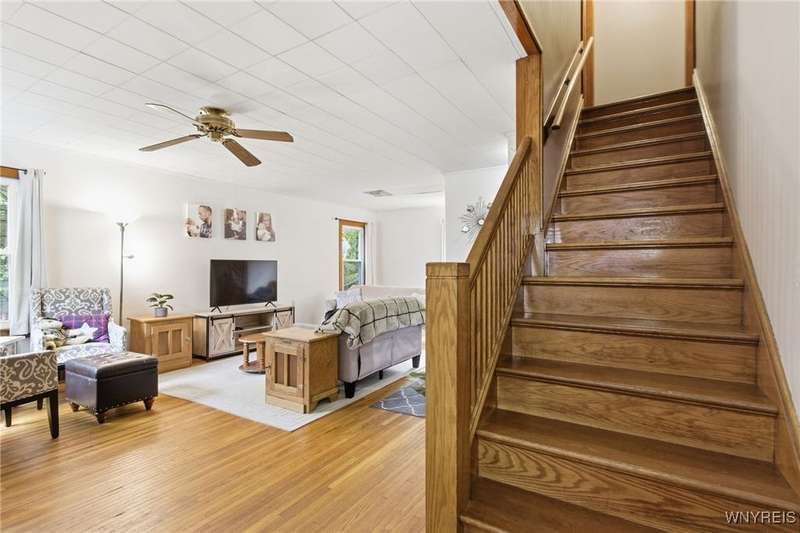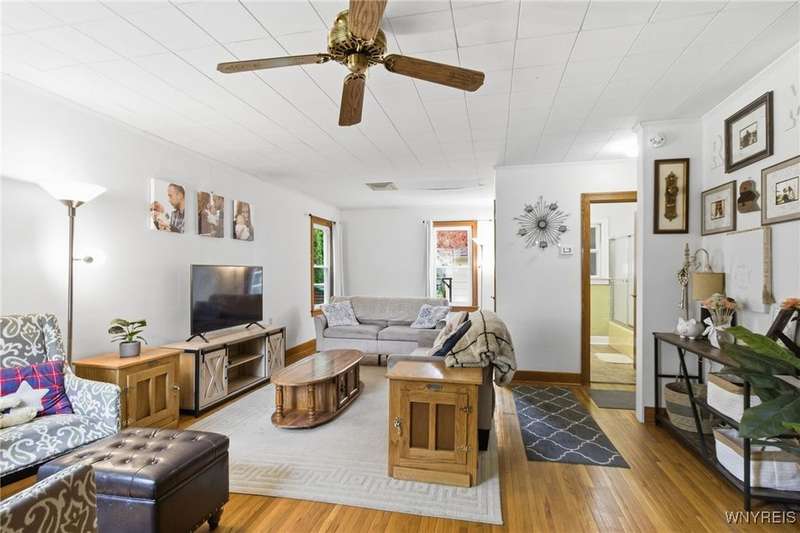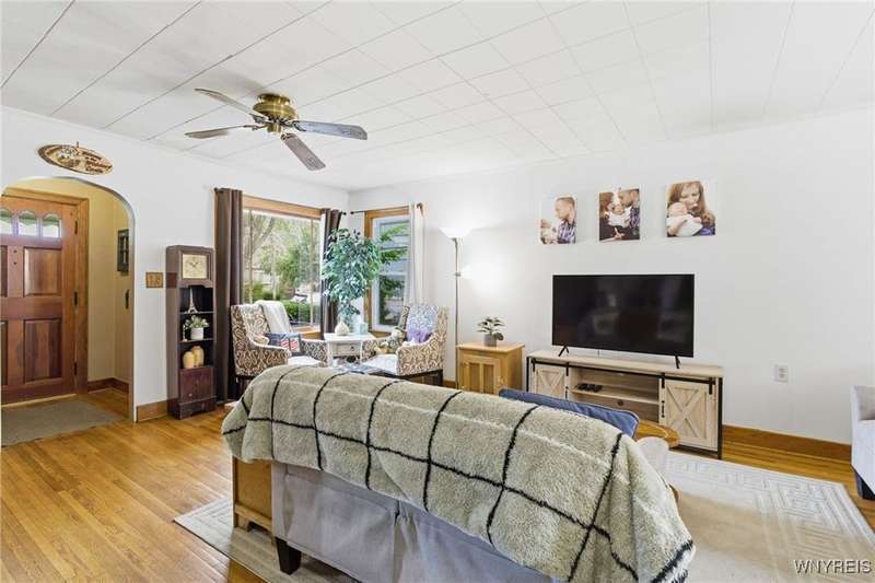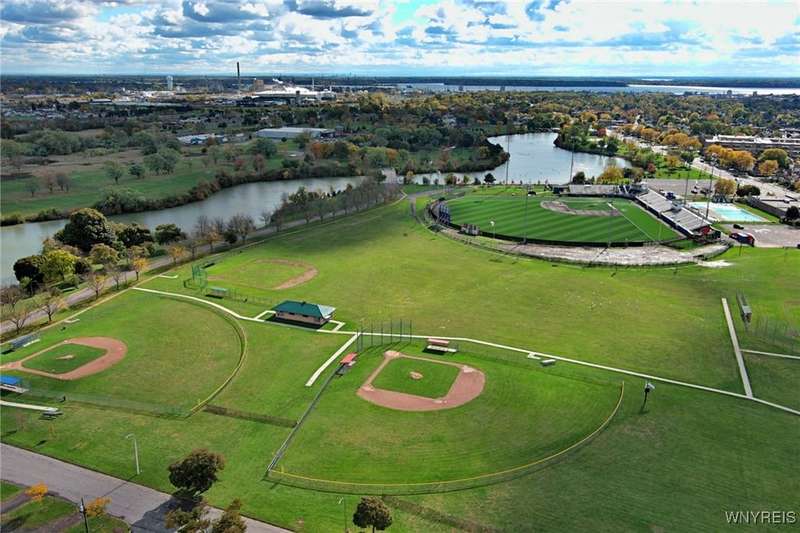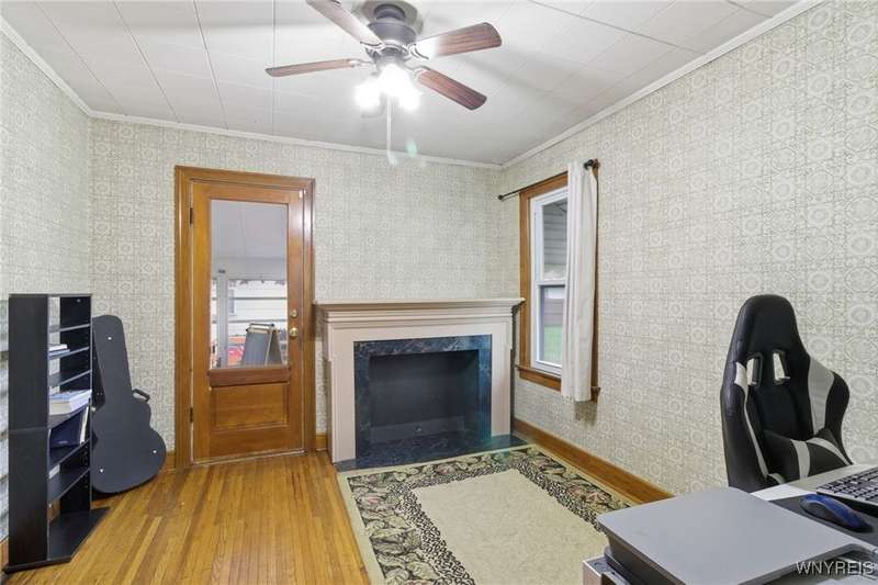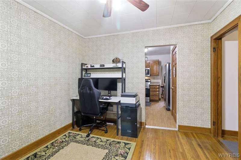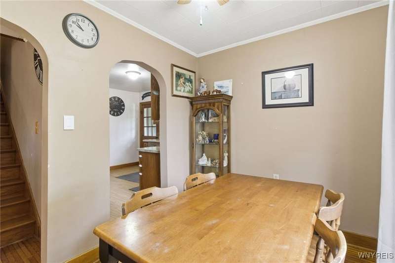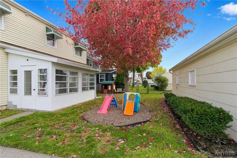 VR pricing. Sellers will consider offers between $189,900 and $239,900. Welcome to this charming 2-story home located in the Hyde Park neighborhood of Niagara Falls. Enjoy being just steps from Hyde Park Golf Course, the Niagara Falls Athletic Center, and nearby parks. Features include front porch with wrought-iron railings lead into a foyer with a coat closet and a bright living room featuring beautiful hardwood floors and natural woodwork throughout. The formal dining room features built-in cabinets, and the kitchen offers ample counter and cabinet space, along with stainless steel appliances. Additional first-floor room can serve as an office, playroom, or 4th bedroom. Upstairs, you'll find three bedrooms, a half bath, and a spacious primary with generous closet space. The partially finished basement includes a full bath, glass block windows, laundry hookups, and a sump pump with backup system. Relax on the enclosed back porch overlooking the yard and a large 3-car garage. Some updates include newer windows, a high-efficiency forced-air furnace, HWT, drain tile, and roof.