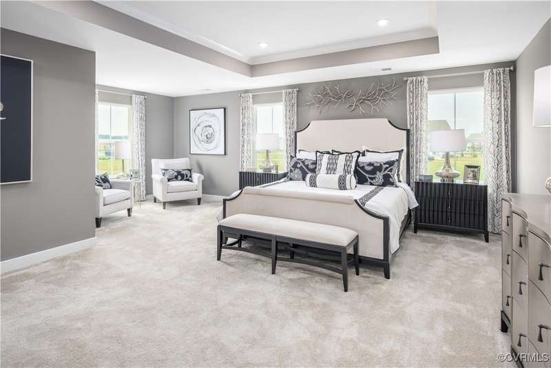 Welcome home to Meridian, Magnolia Green's newest section! This Versailles Basement floorplan sits on a Premium/Homesite back up to protected, private resource-wooded conserved woods with almost 6,000 square feet, 6 bedrooms and 5 full baths. HardiePlank exterior with enhanced landscaping. The main level offers LVP flooring throughout, formal dining, and guest bedroom with full bath. Two-story open family room with a stone fireplace that creates a breathtaking focal point. The luxury kitchen with white cabinets, Quartz countertops, wall oven stainless steel appliances tile backsplash, built-in glass front hutch Butler's pantry, and large island. Upstairs retreat to 4 bedrooms, 3 full baths and oversized loft overlooking the family room. Expansive owner's suite with sitting area, dual walk-in closets plus an en-site bath with a Roman shower. Finished walk-out basement with spacious media room and additional bedroom with full bath. Meridian is located in Chesterfield County in the highly sought after Magnolia Green community. Magnolia Green is an award winning, top-selling community where the golf course has a Jack Nicklaus Design in association with Tom Clark. With its state-of-the-art amenities, it's a beautiful site! Ever lived in a community where you had to decide which of the 5 pools to go to today?! No need to drive to a water park, we've brought the water park to you! Meridian at Magnolia Green is a convenient commute to the business and culture of Richmond and all the shopping and dining that Short Pump and Chesterfield has to offer.